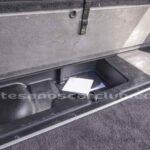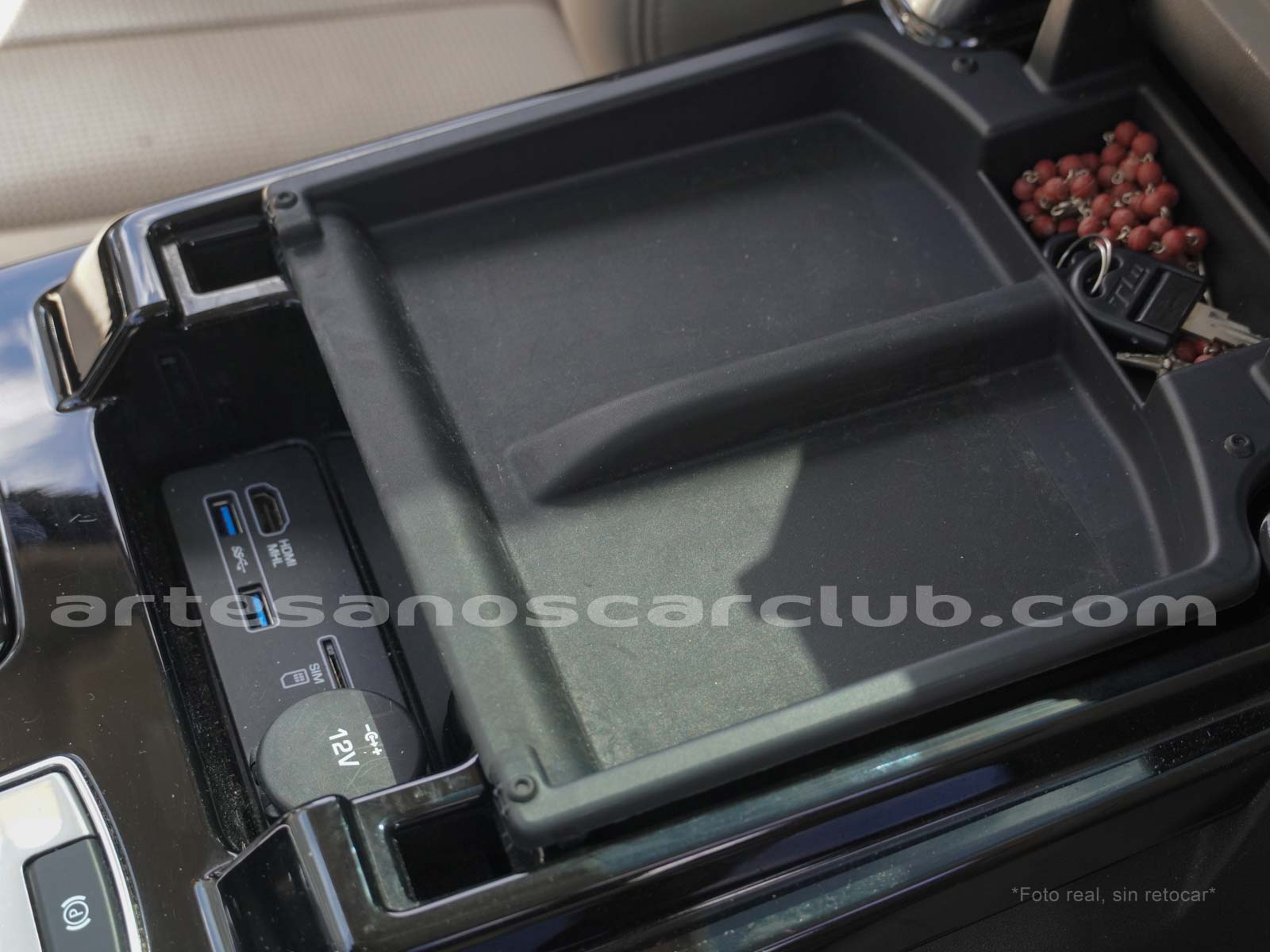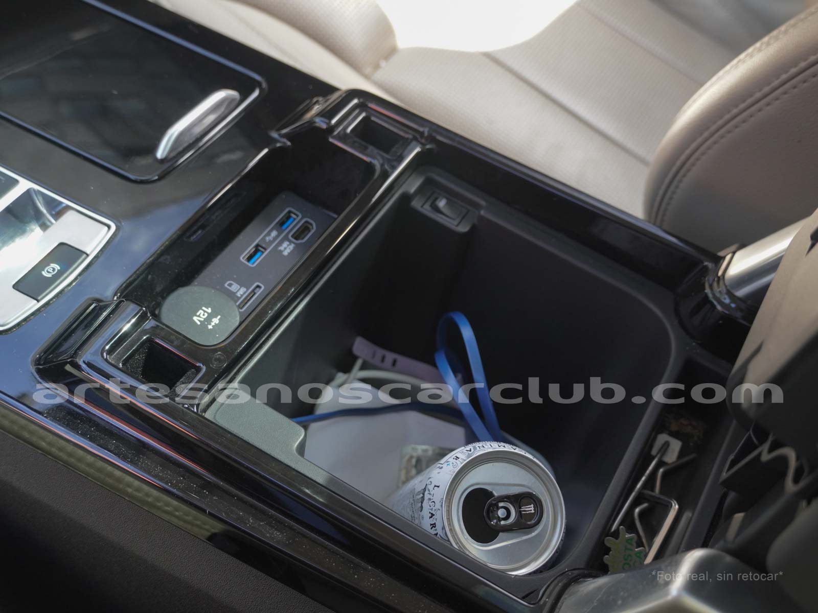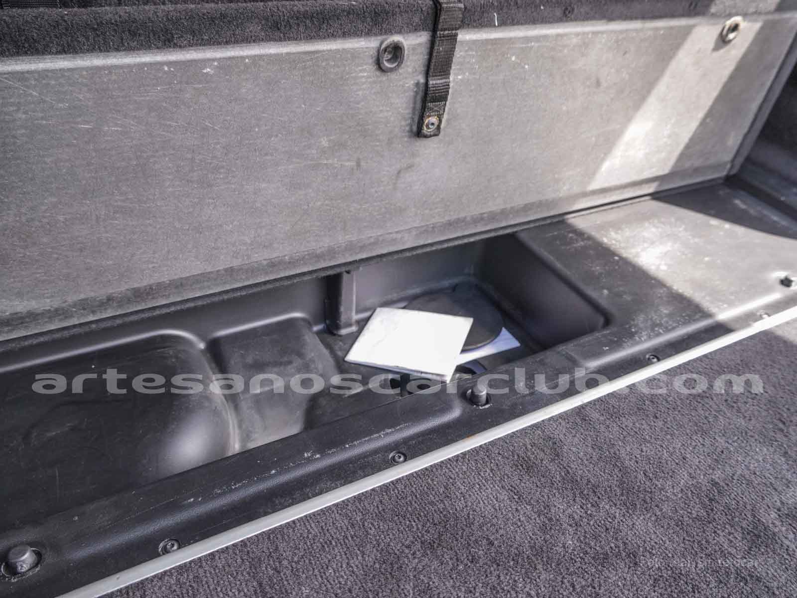 Bodega de diseño oculto con sistema deslizable, bajo posavasos delanteros.