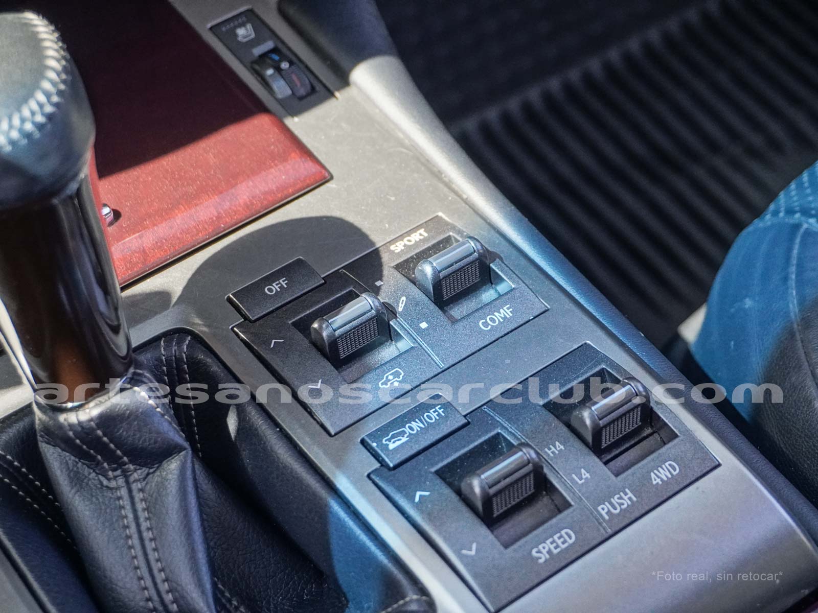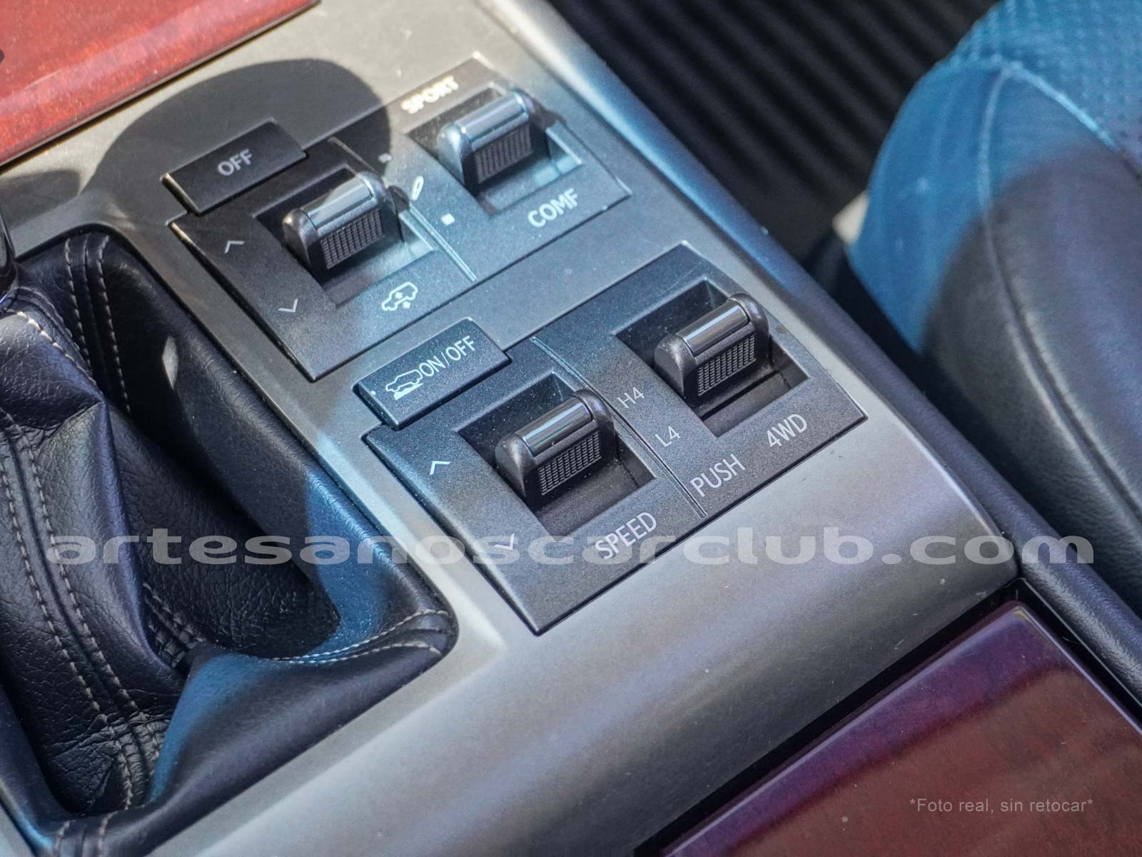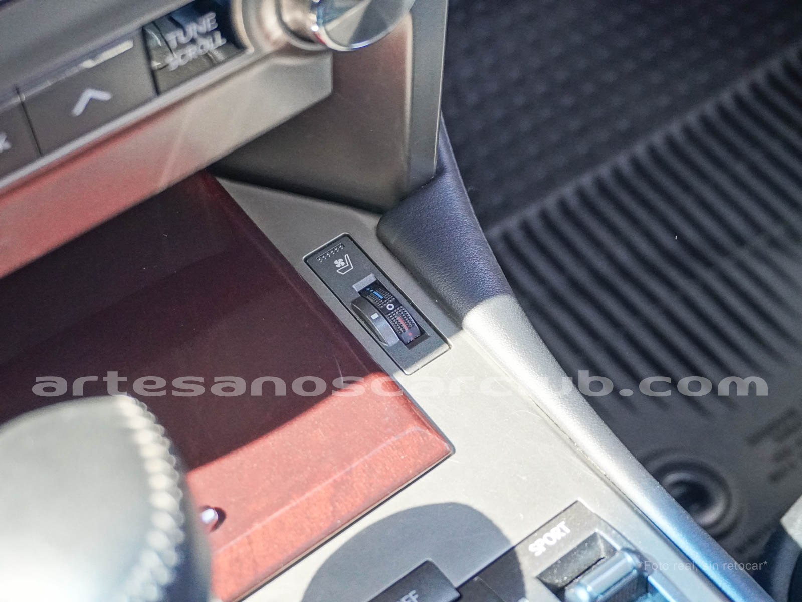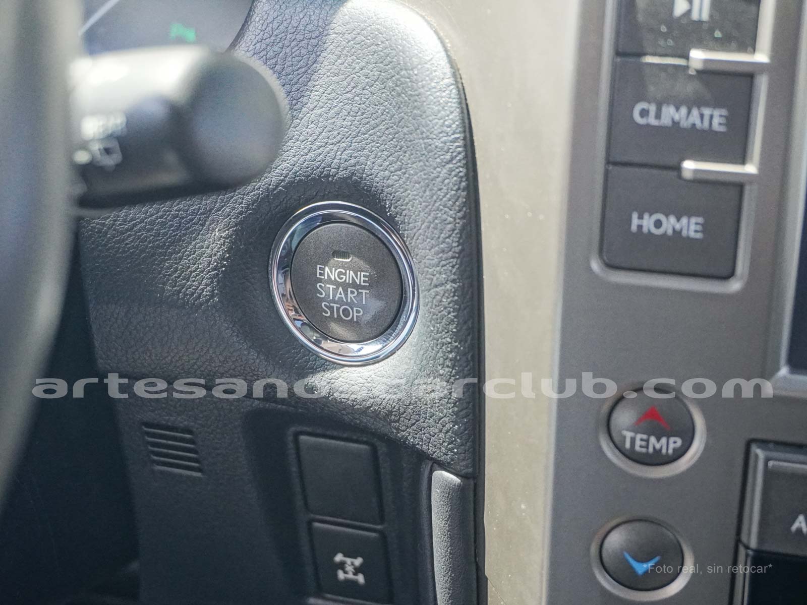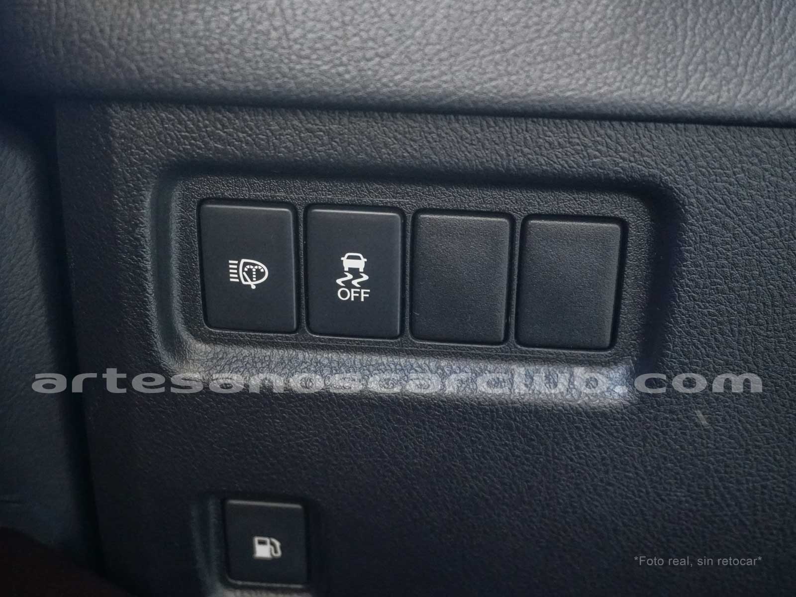Botoneria en consola central en gris metalizado oscuro.