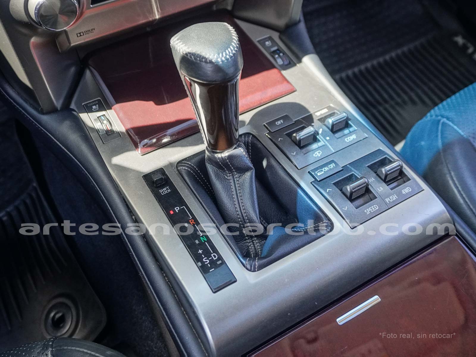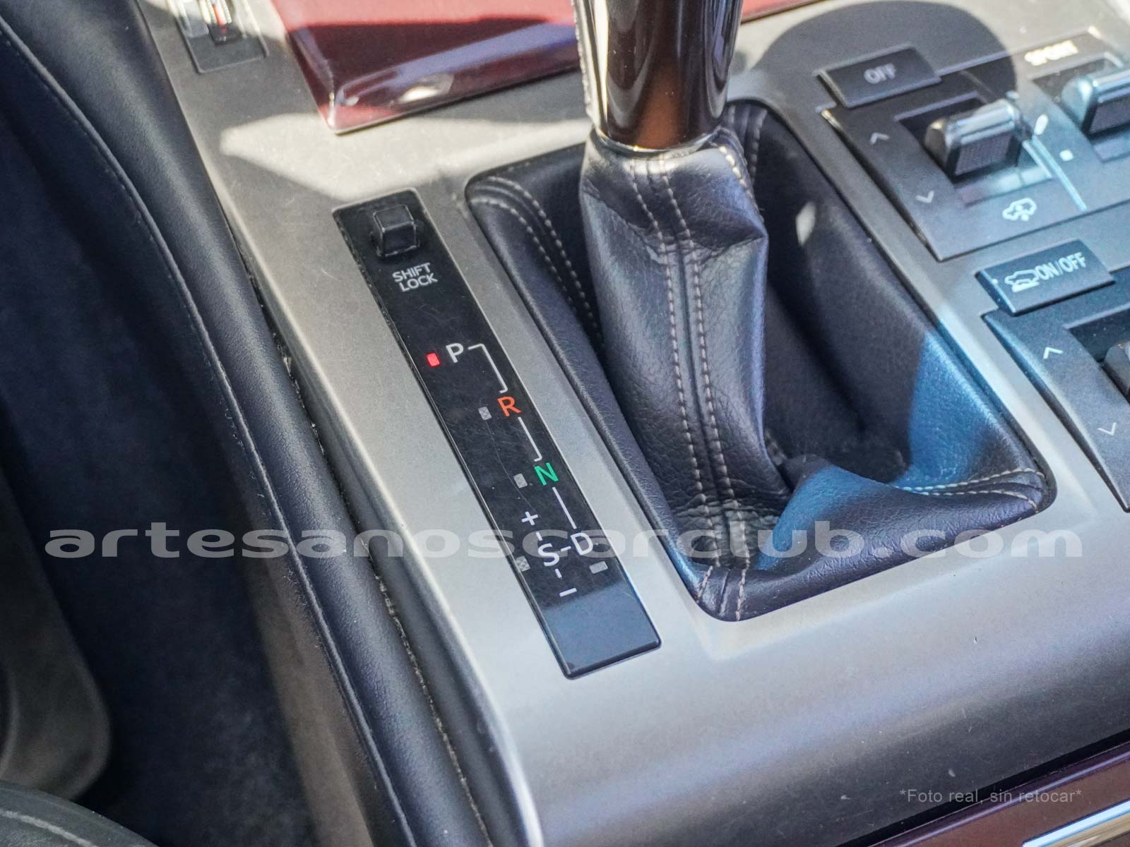 Palanca de cambios en piel negra con acero semi brillante.