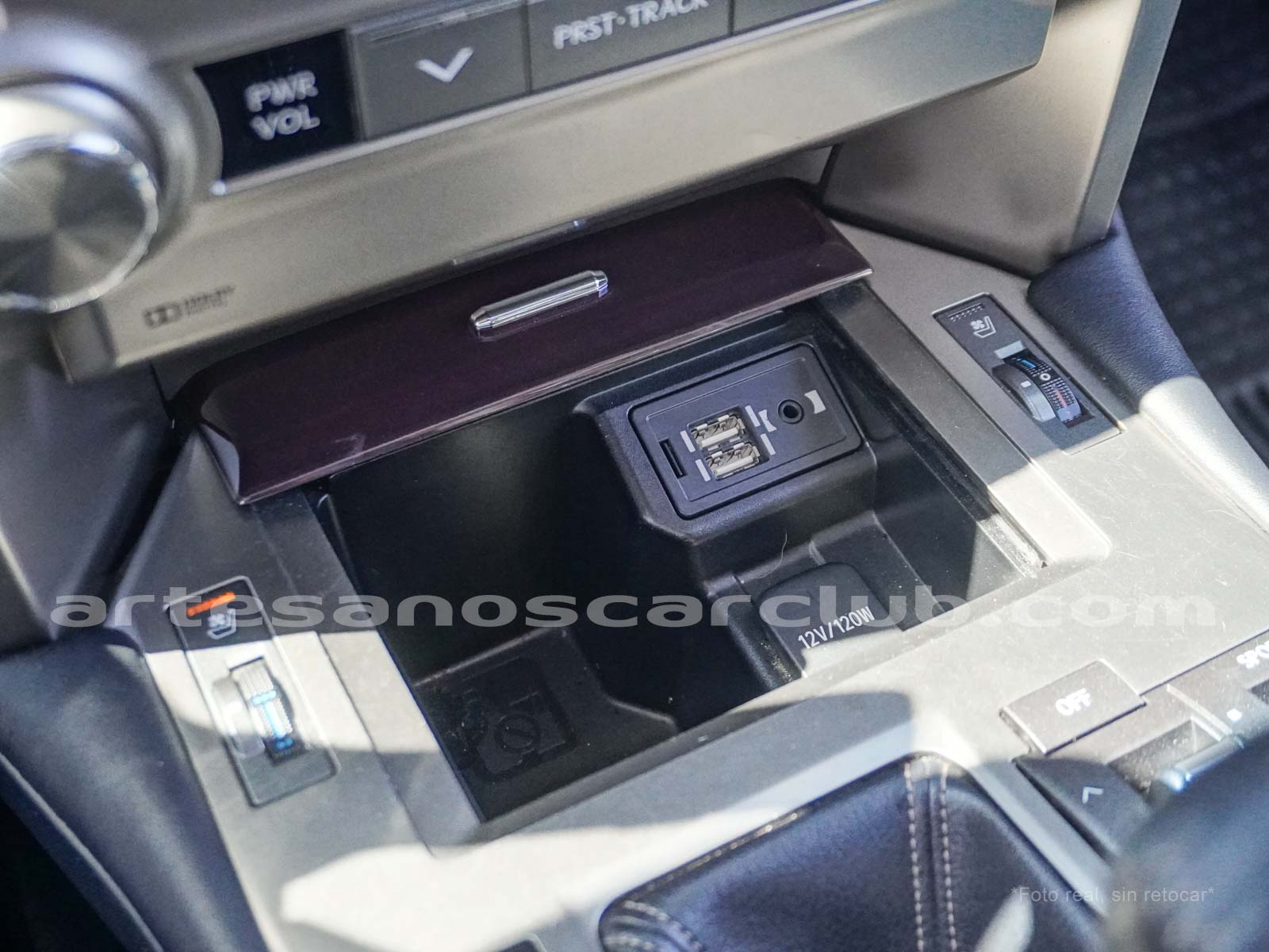 Apoyabrazos delantero con compartimentos.