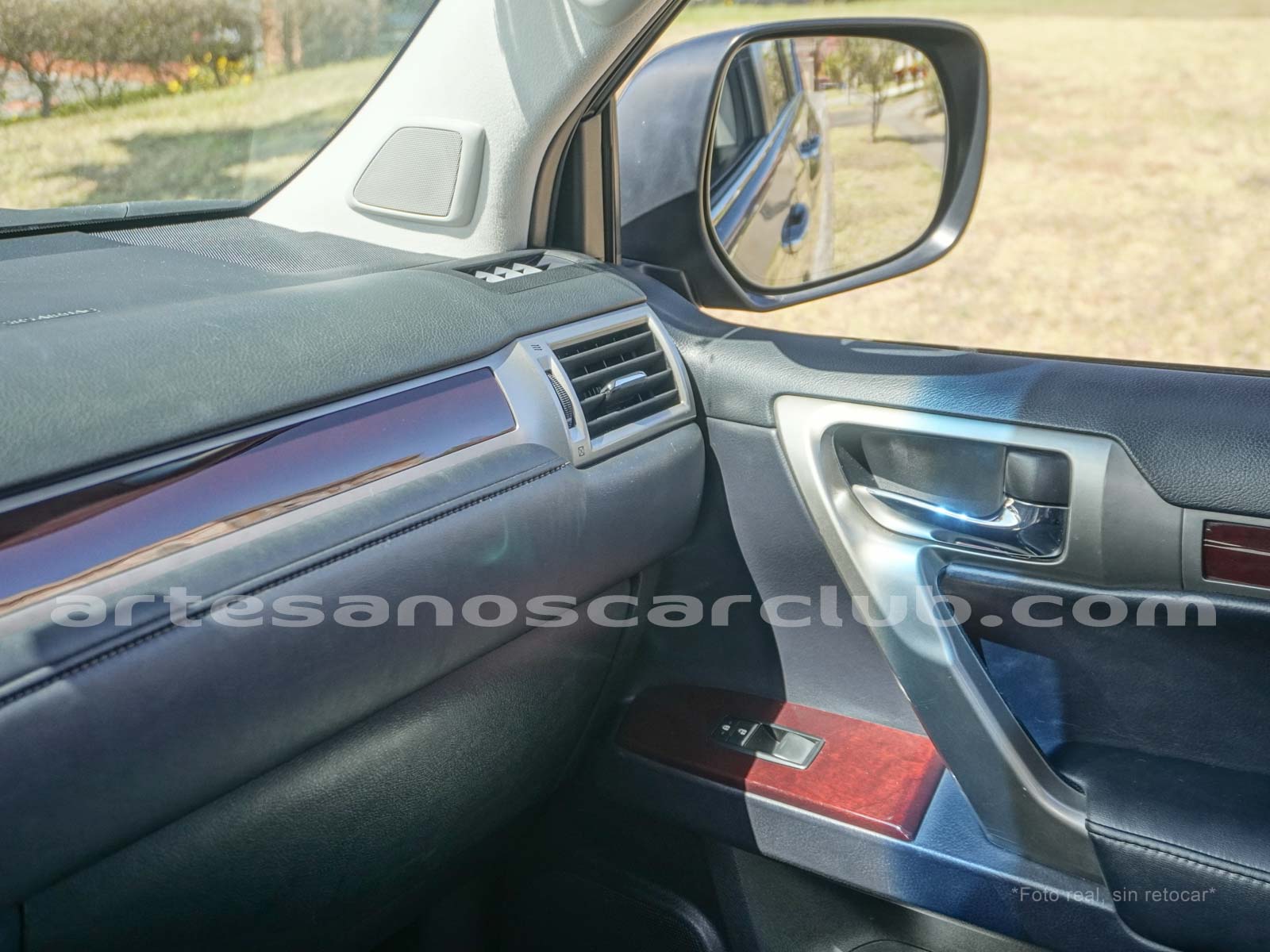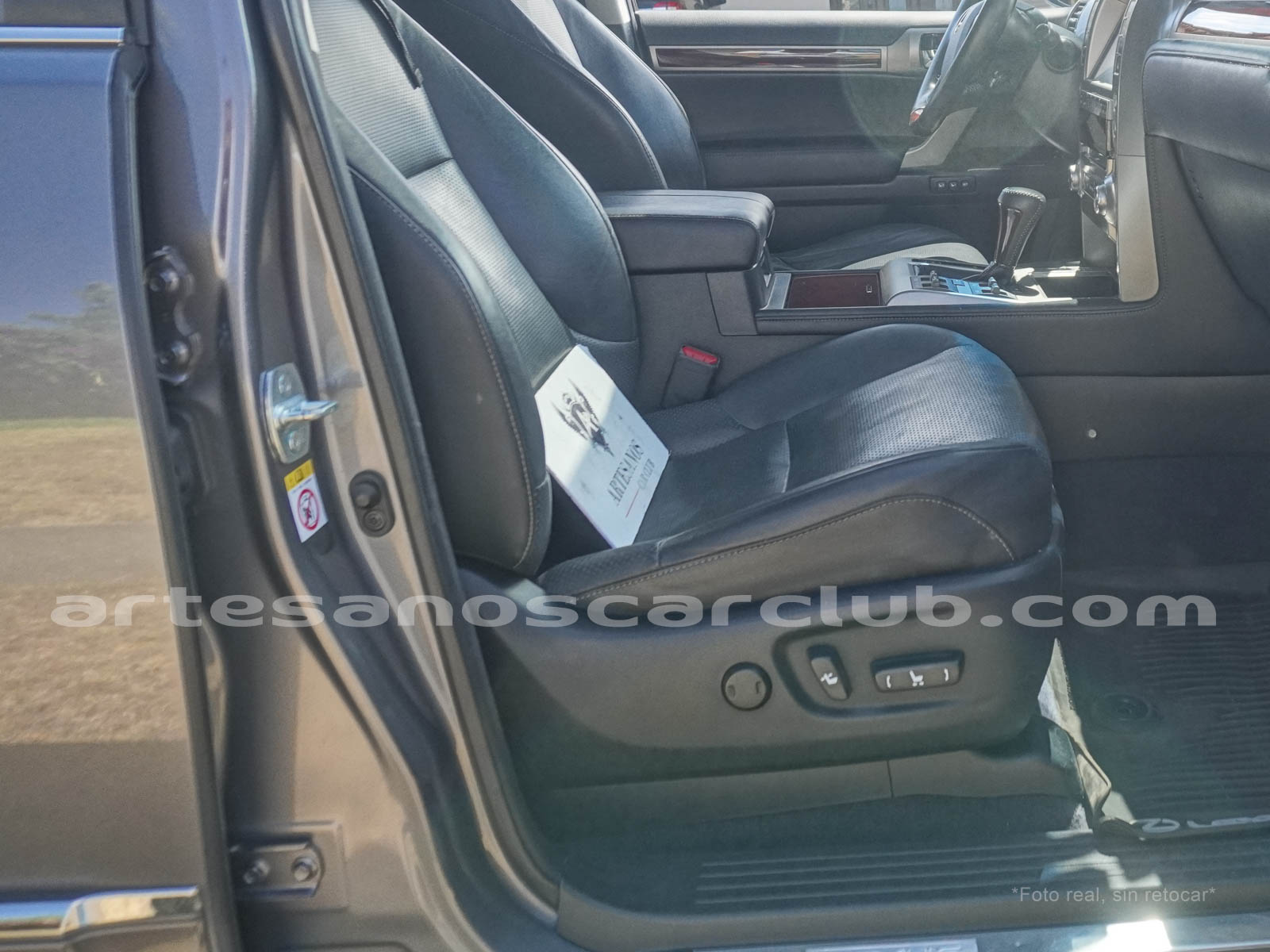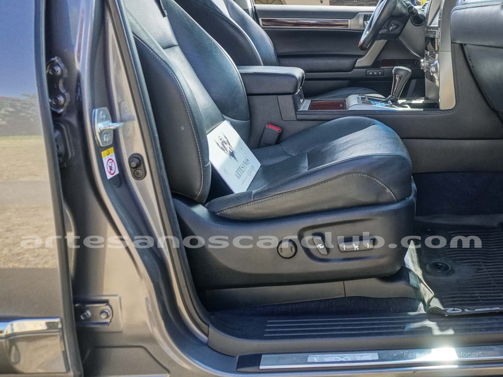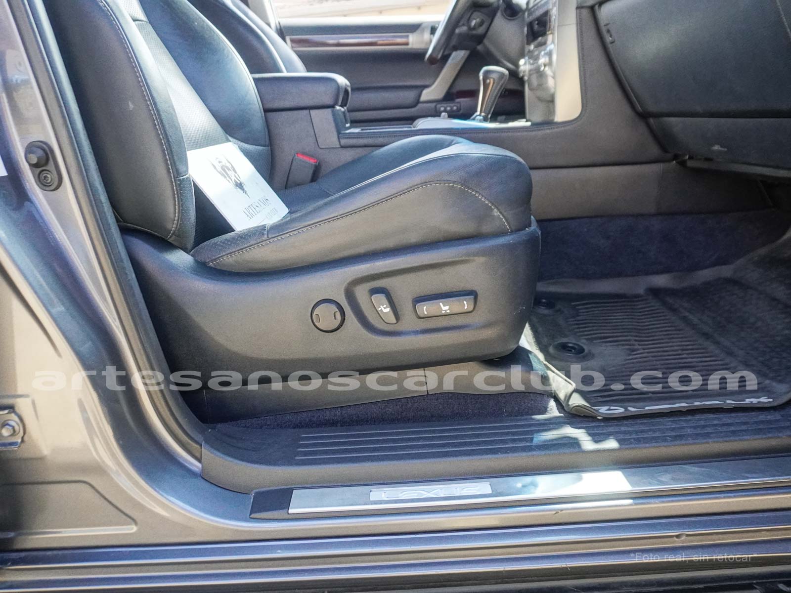 Apoyabrazos delantero en cuero negro con costuras contrastadas.