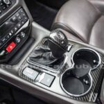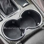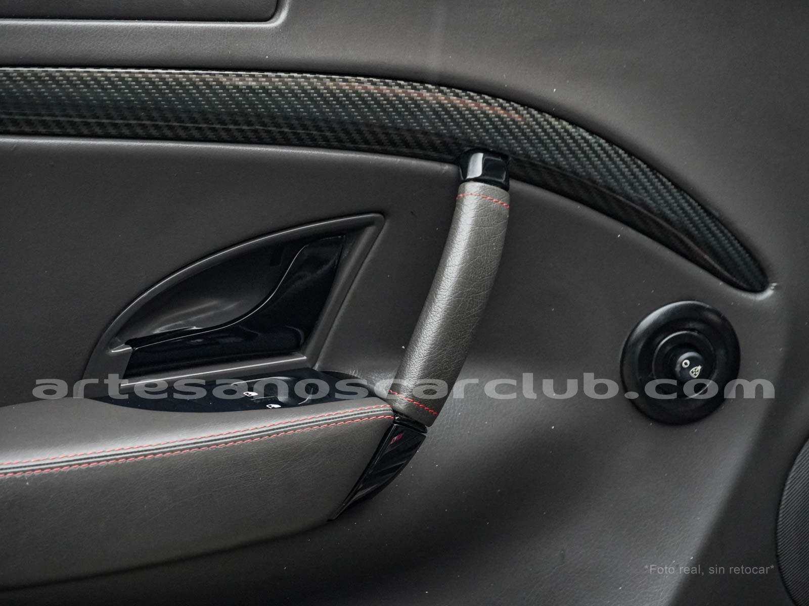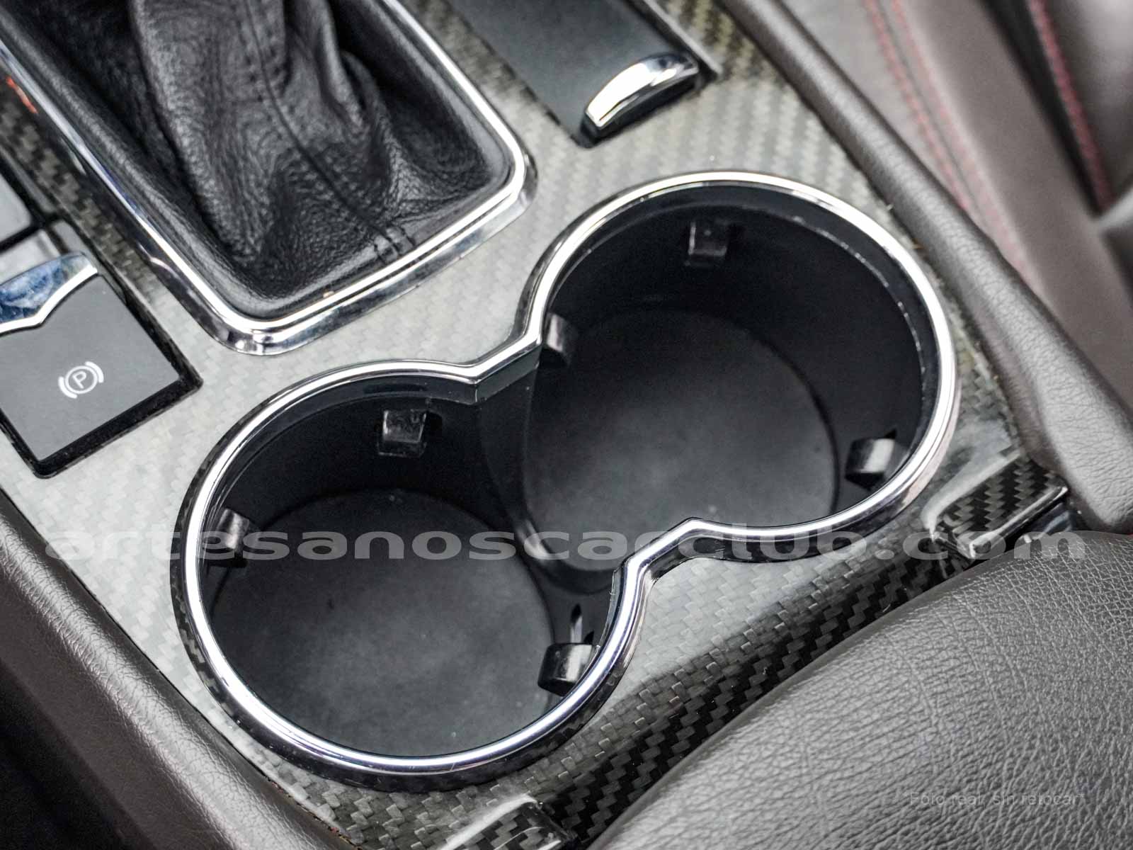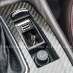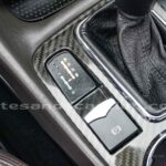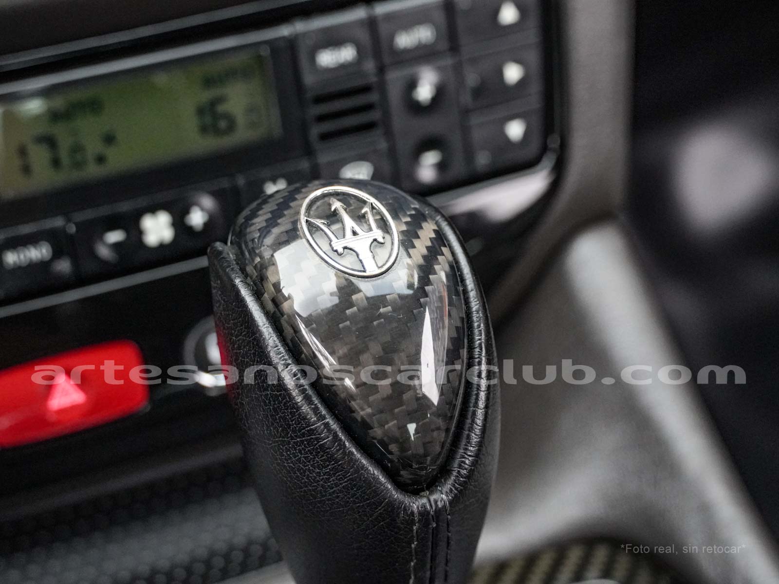 Pomo de palanca de cambios en piel negra con acabado de carbono.