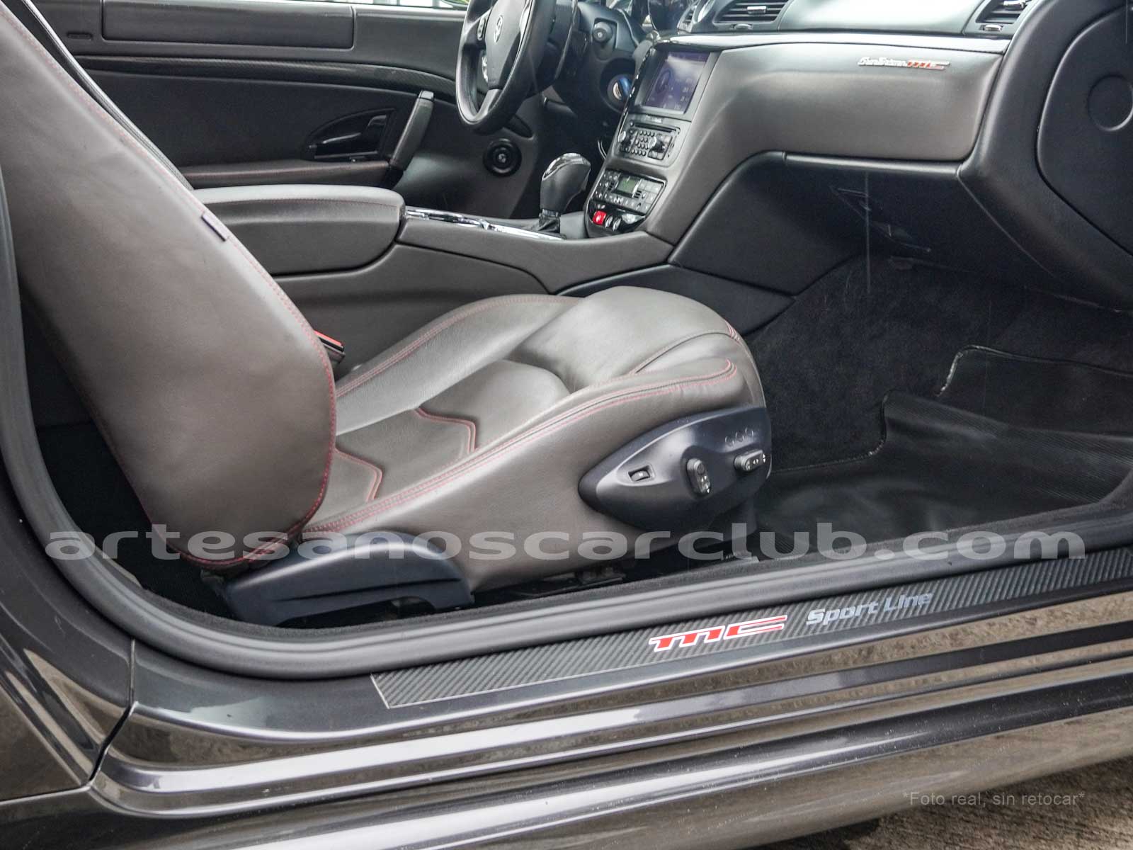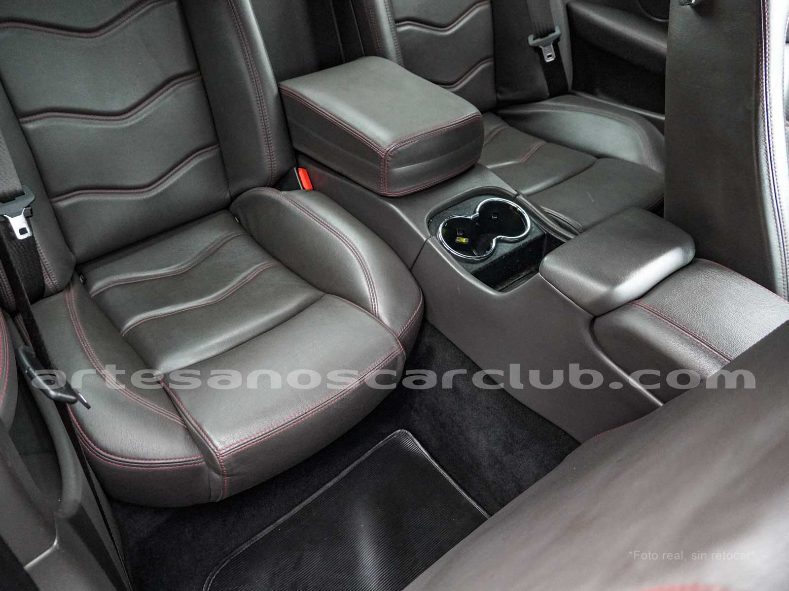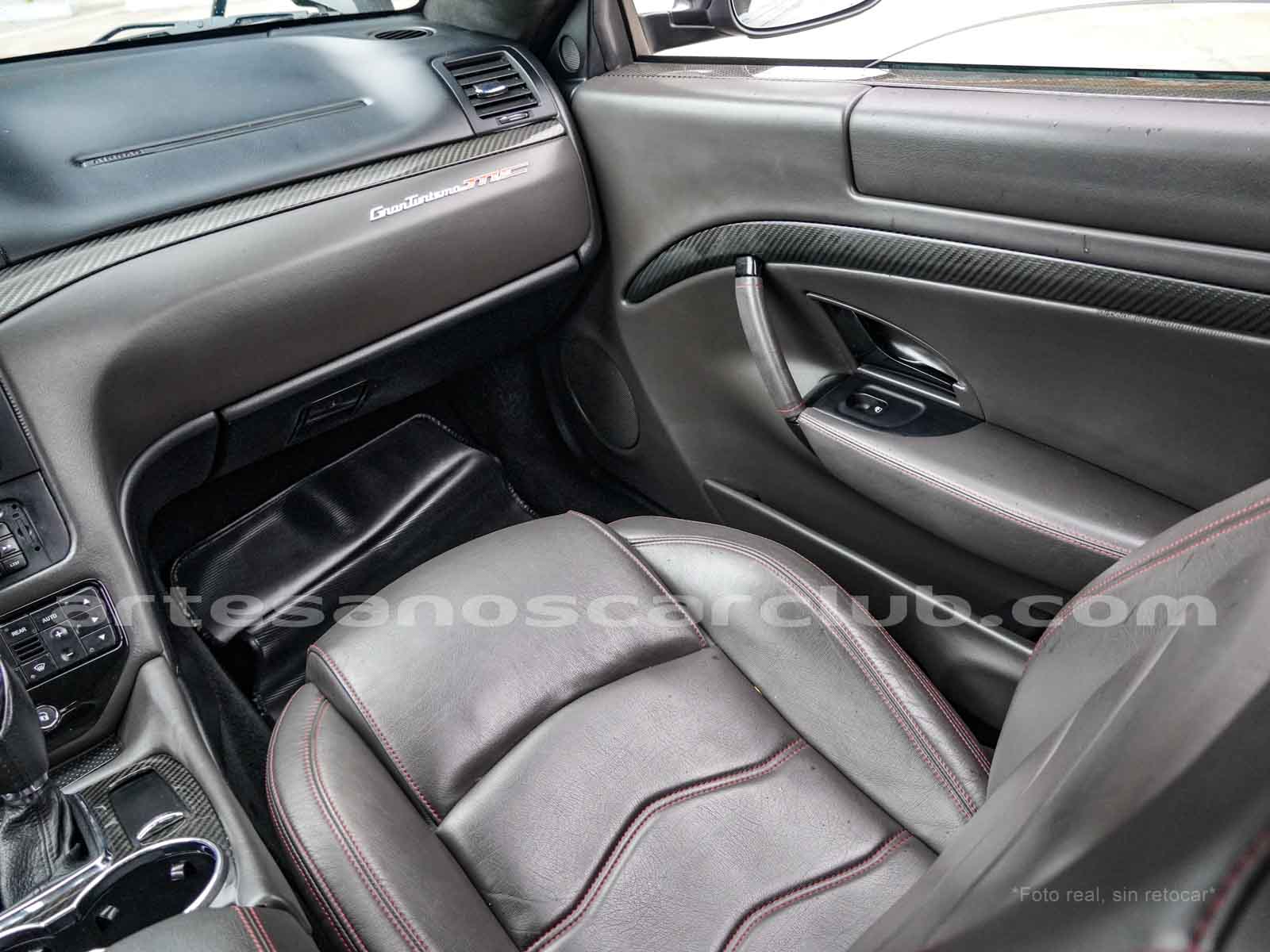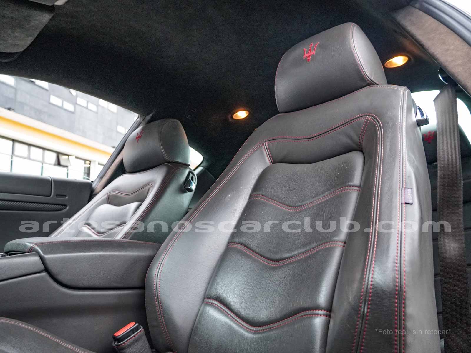 Sillas deportivas de contención lateral mejorada «Poltrona Frau» cabeceras integradas, sillas en color negro «Nero», emblema bordado en color rojo «Corallo».