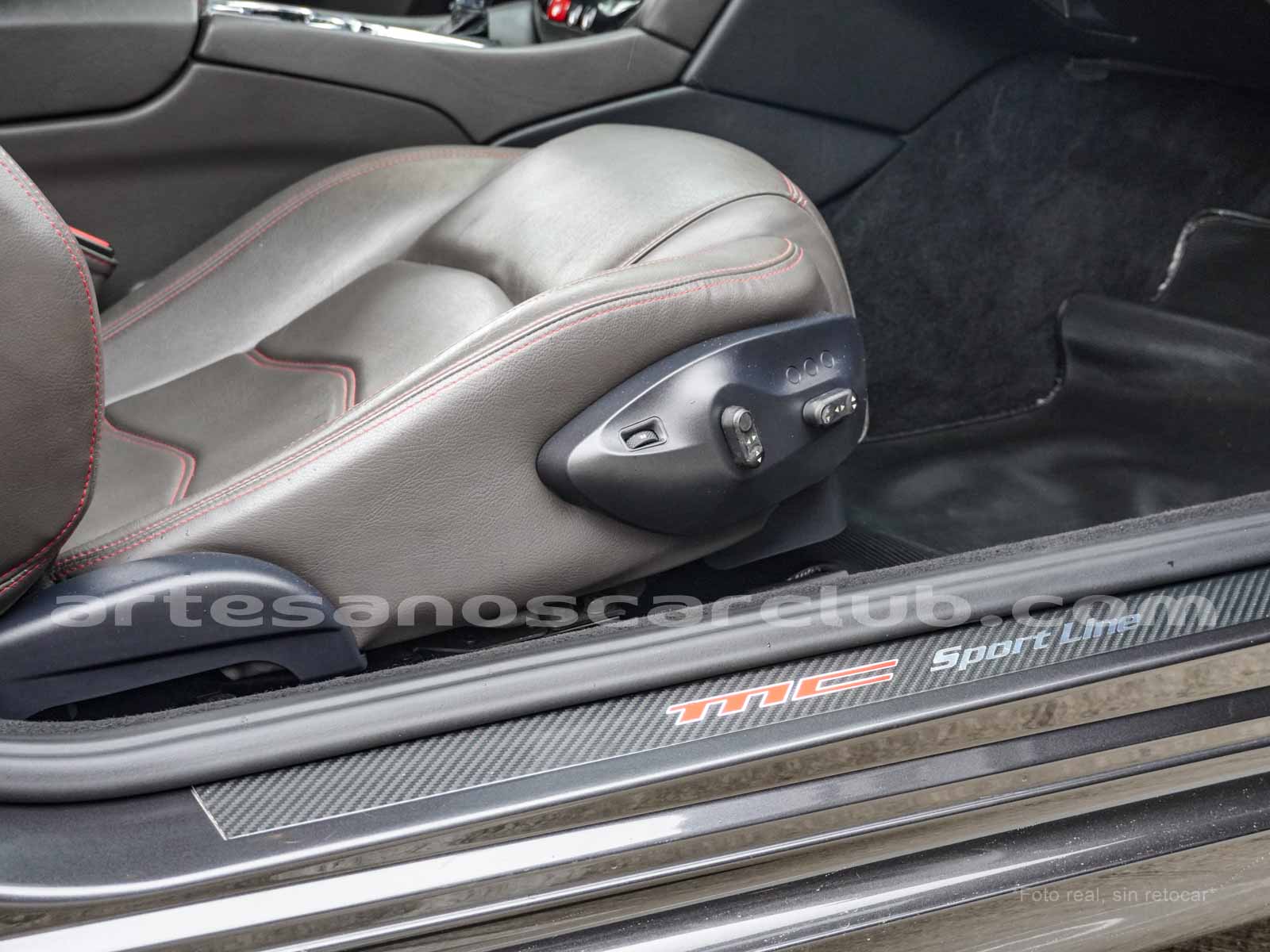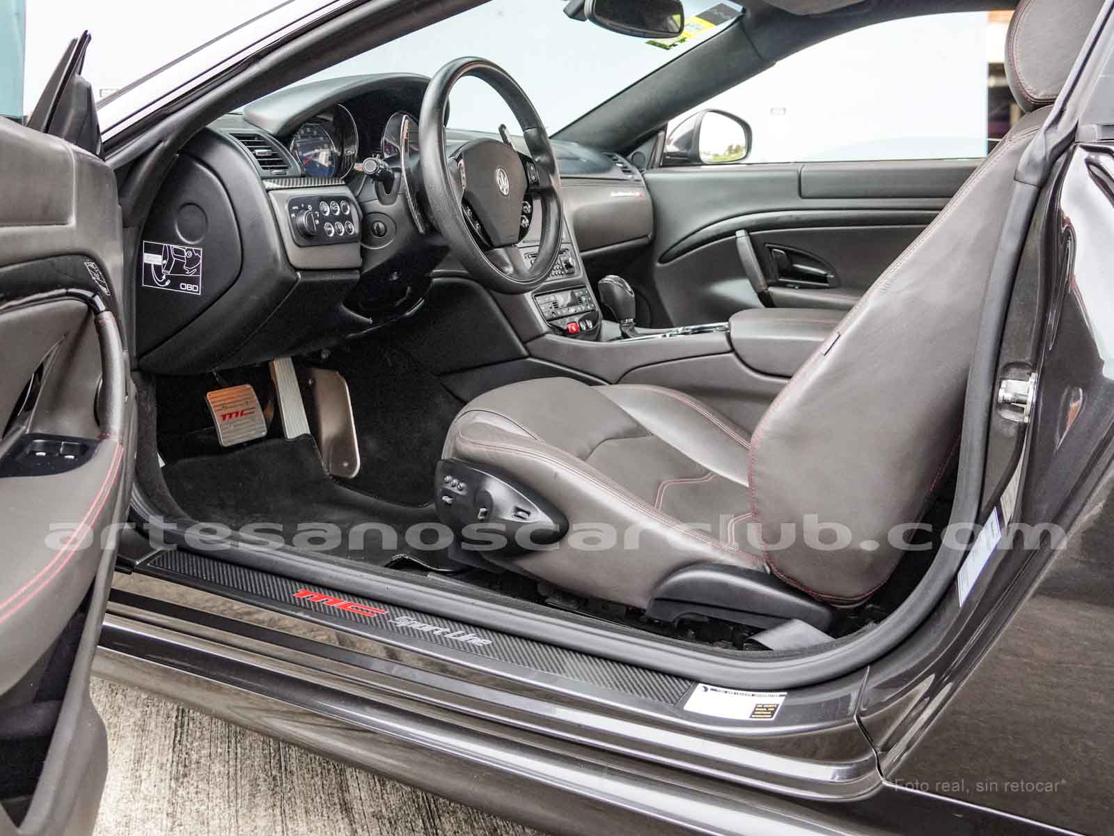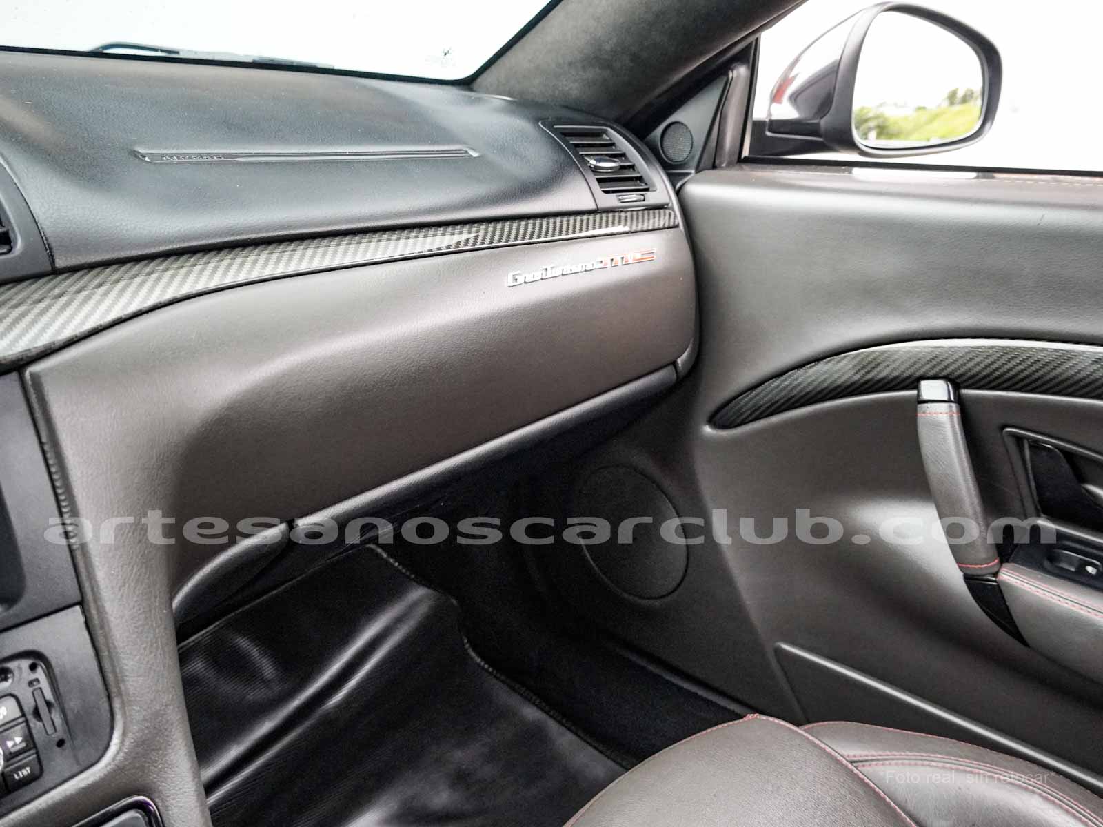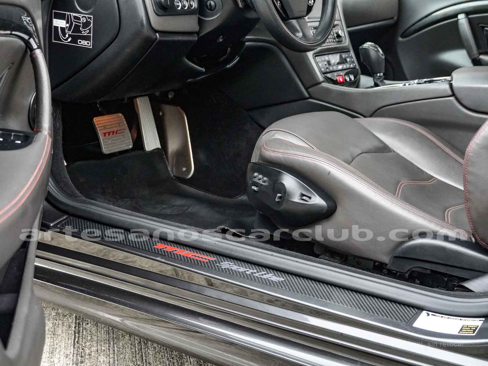 Sillas deportivas de contención lateral mejorada «Poltrona Frau» cabeceras integradas, sillas en color negro «Nero», emblema bordado en color rojo «Corallo».
