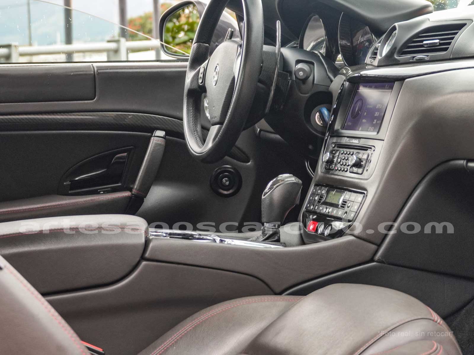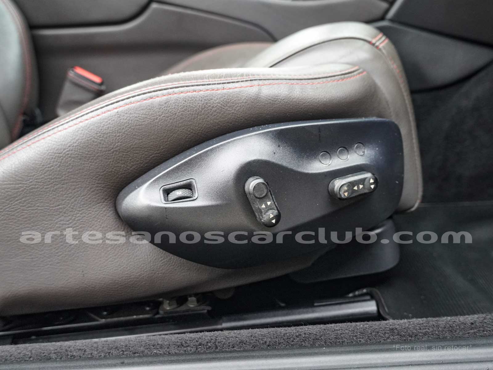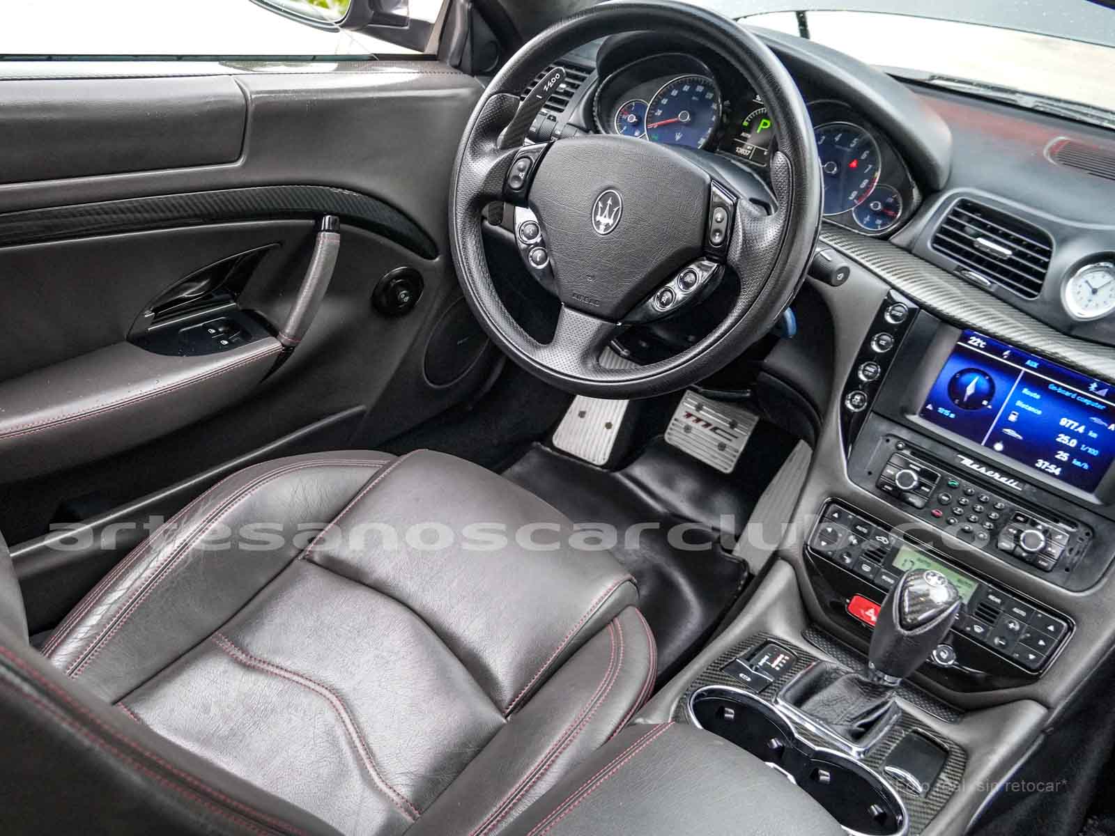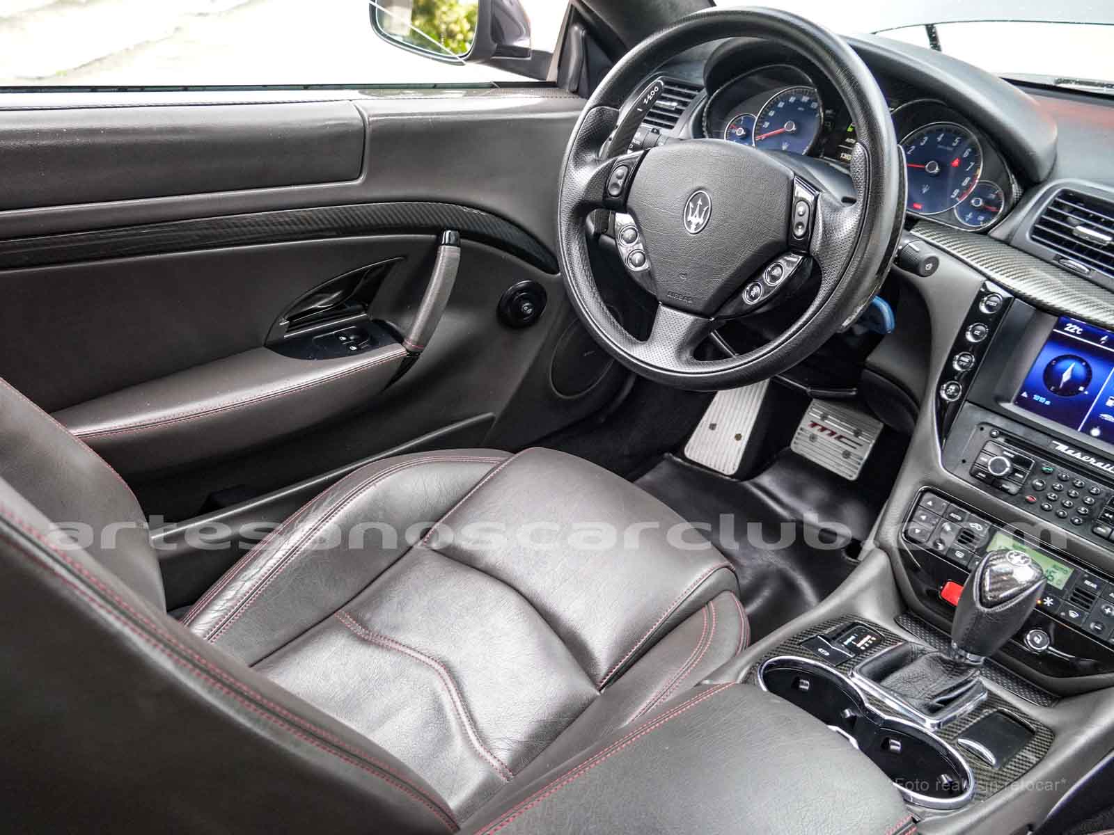 Sillas deportivas de contención lateral mejorada «Poltrona Frau» cabeceras integradas, sillas en color negro «Nero», emblema bordado en color rojo «Corallo».