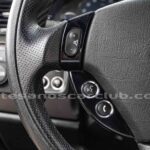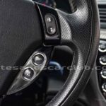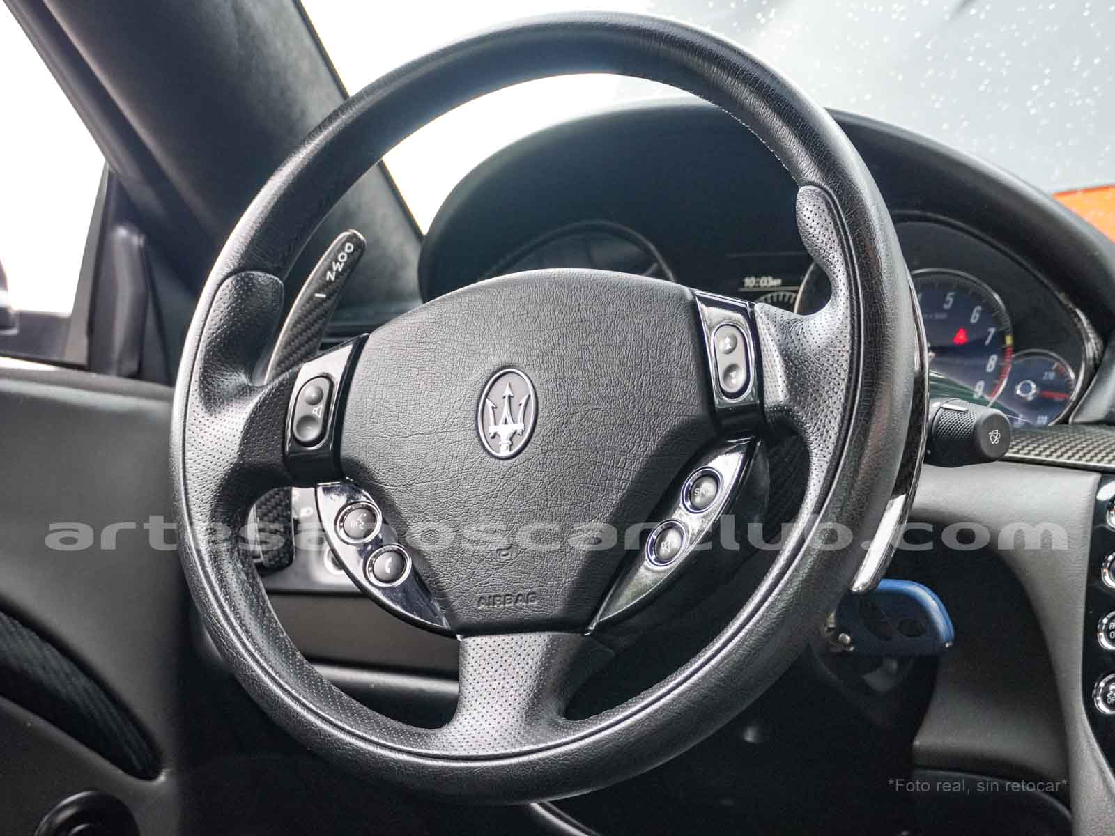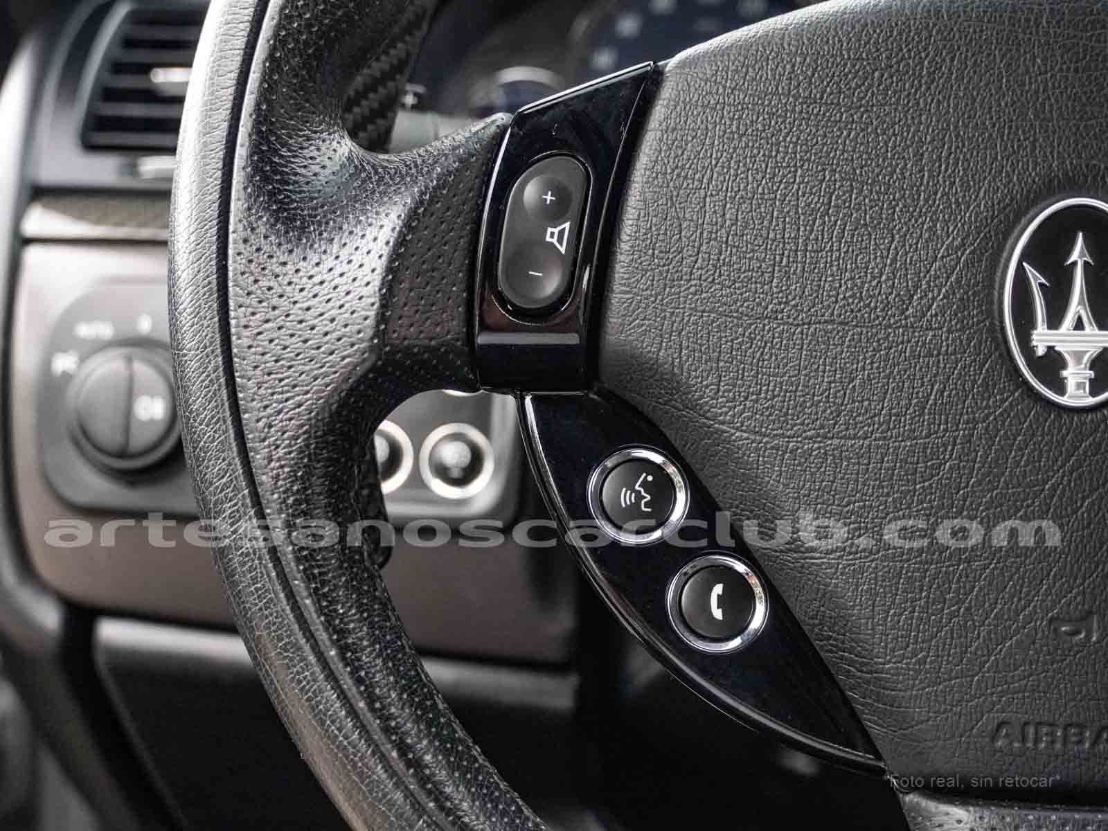 Volante de diseño en piel y carbono brillante.