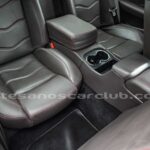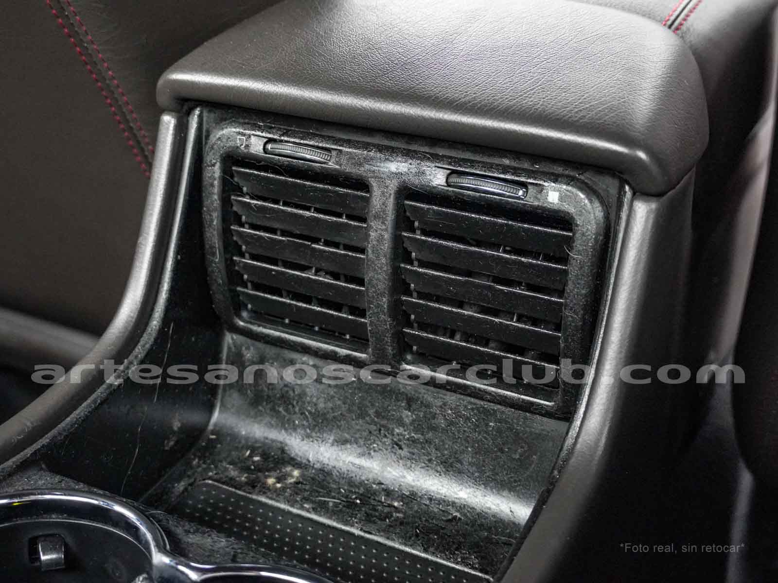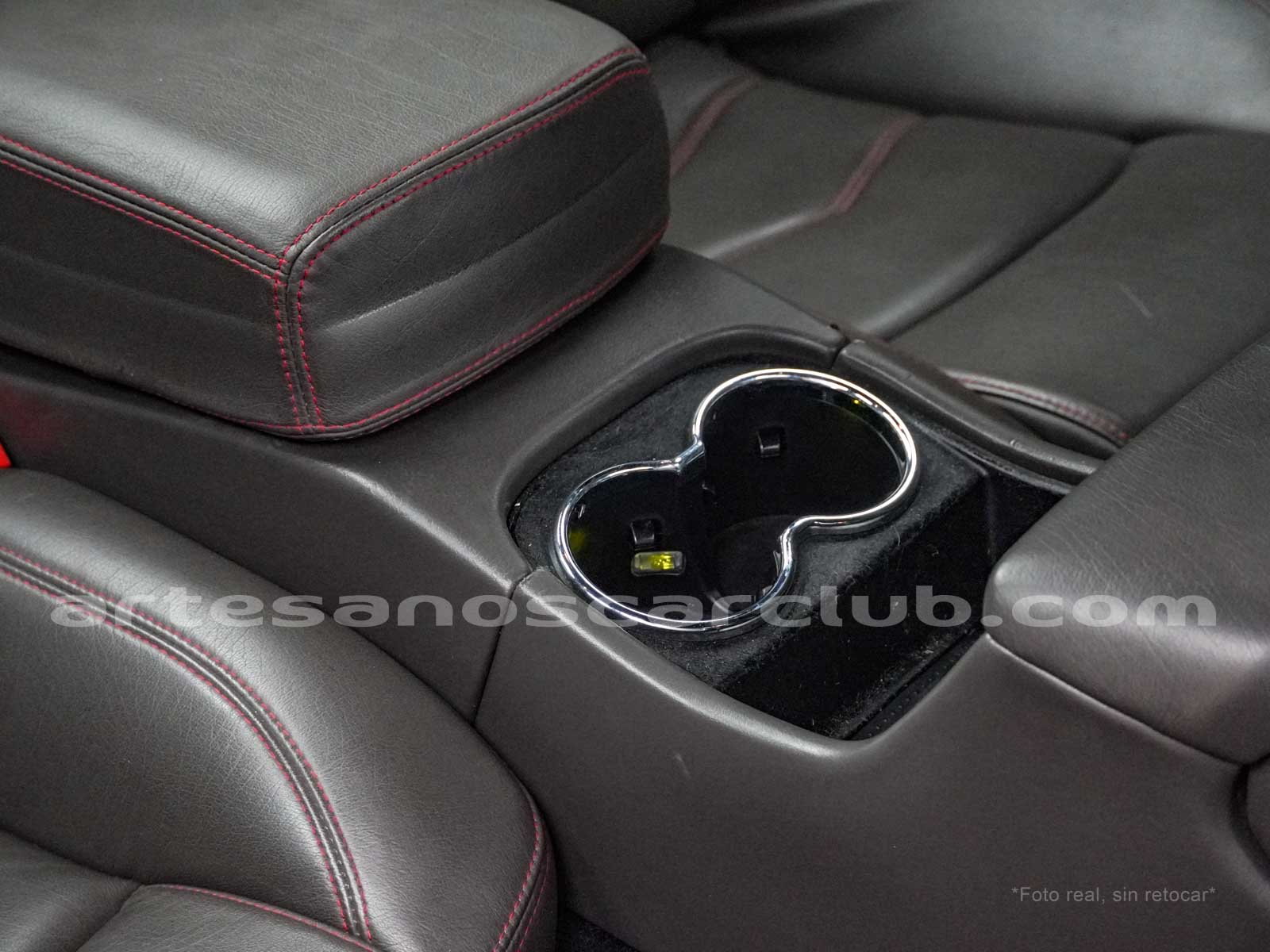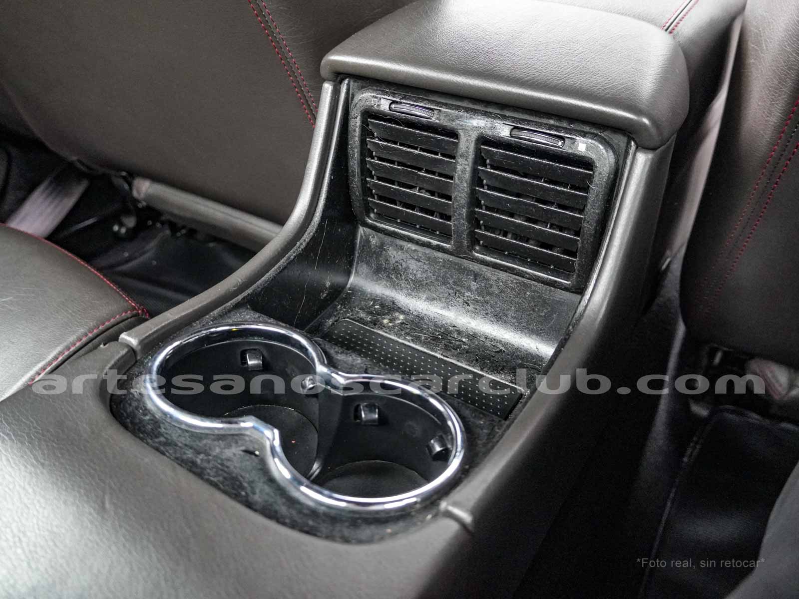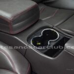 Consola central trasera con posavasos y tapa deslizable.