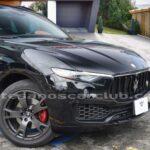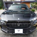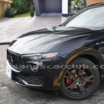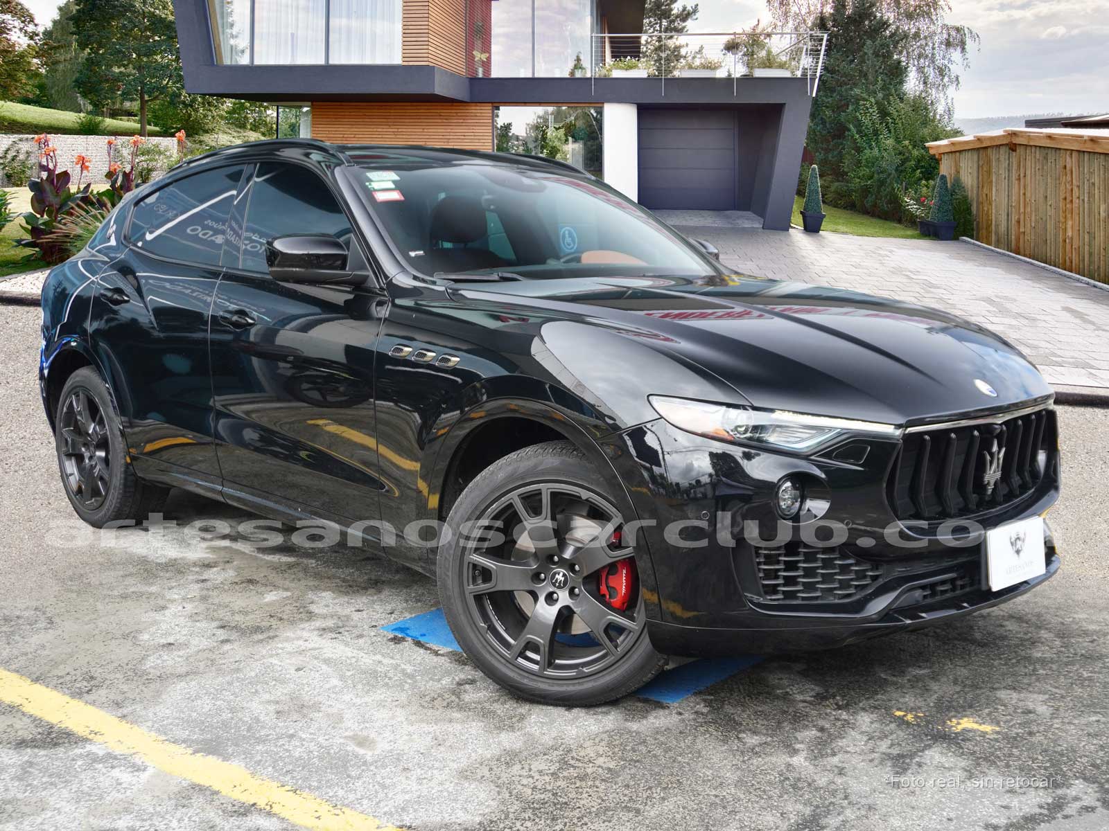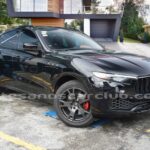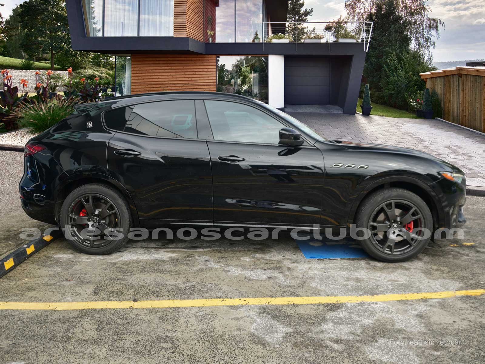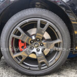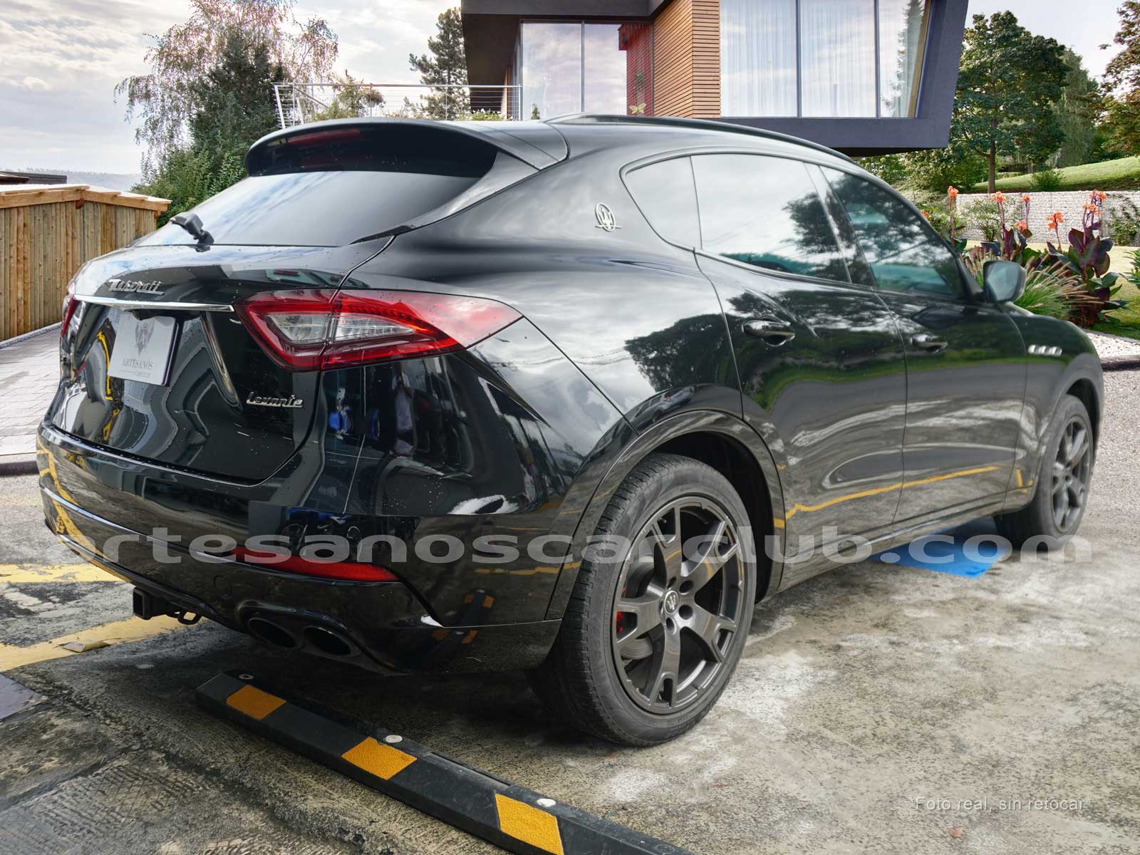 Mordazas de frenos en color rojo con inscripción Maserati en negro.