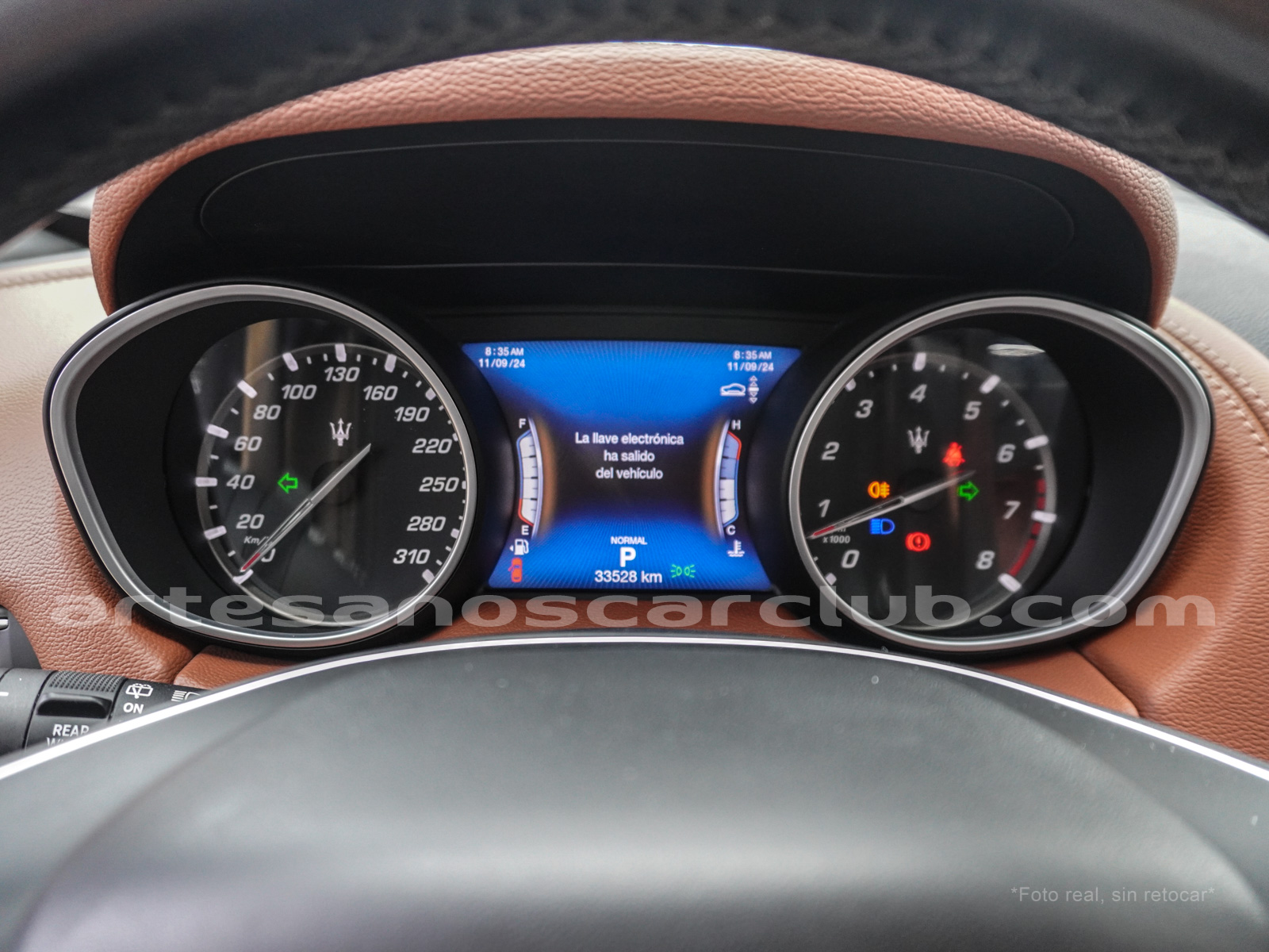 Cuadro de instrumentos con fondo «Maserati Blu» y luz blanca de retroiluminación con pantalla de 7″.