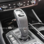 Pomo de palanca de cambio en piel y detalles en aluminio satinado.