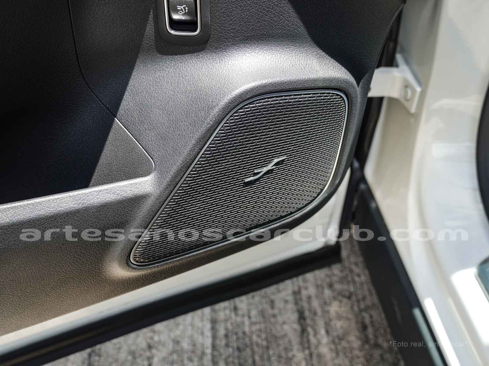 12 parlantes (1 altavoz de medios de alta gama como altavoz central, Un altavoz premium de medios y graves en las puertas delanteras y traseras, Un altavoz de agudos en cada puerta delantera (escuadra del retrovisor) y trasera, 2 altavoces de medios surround en el montante C / en la repisa trasera, 1 subwoofer con un consumo de 60 vatios en la zona trasera).