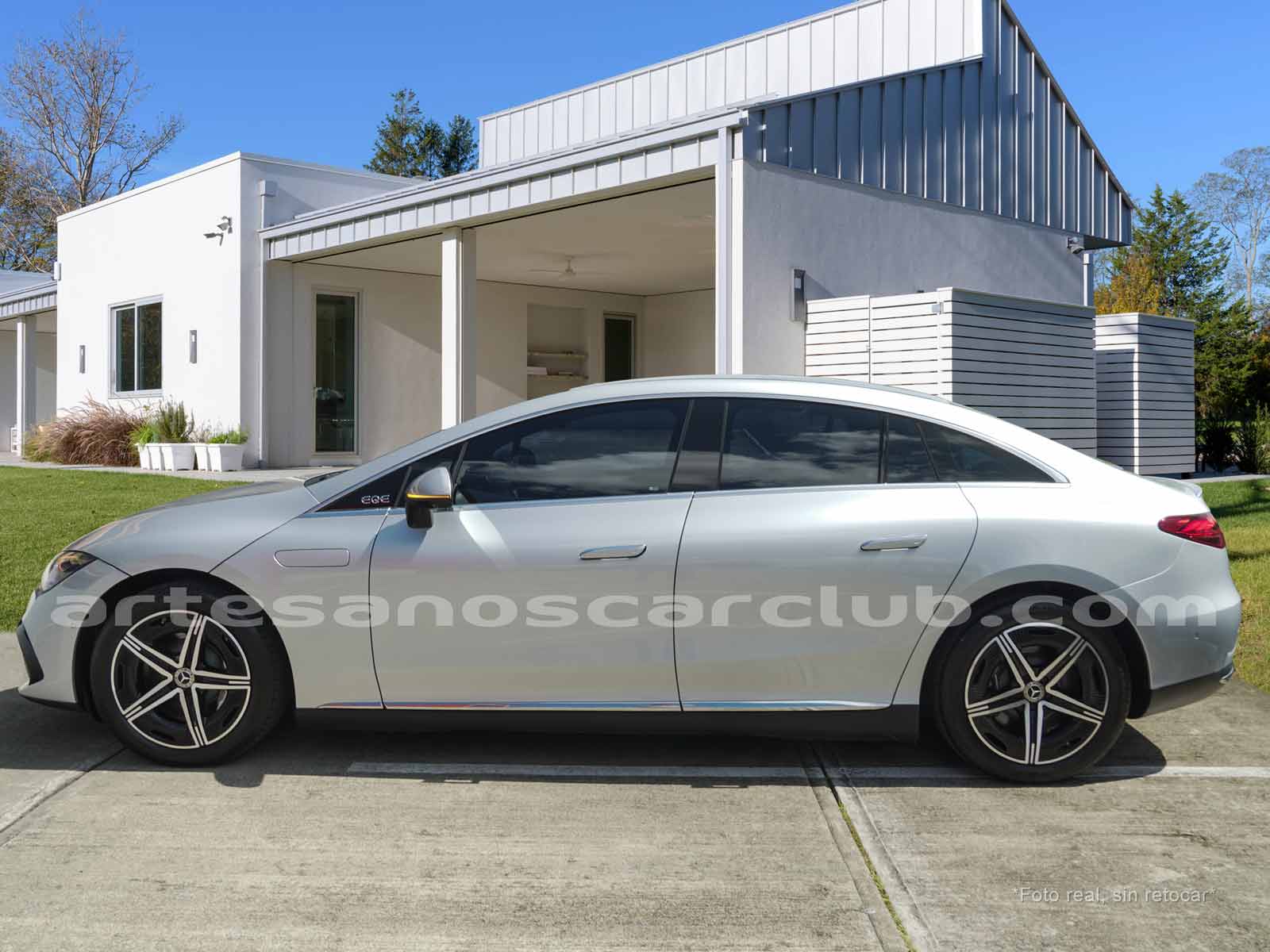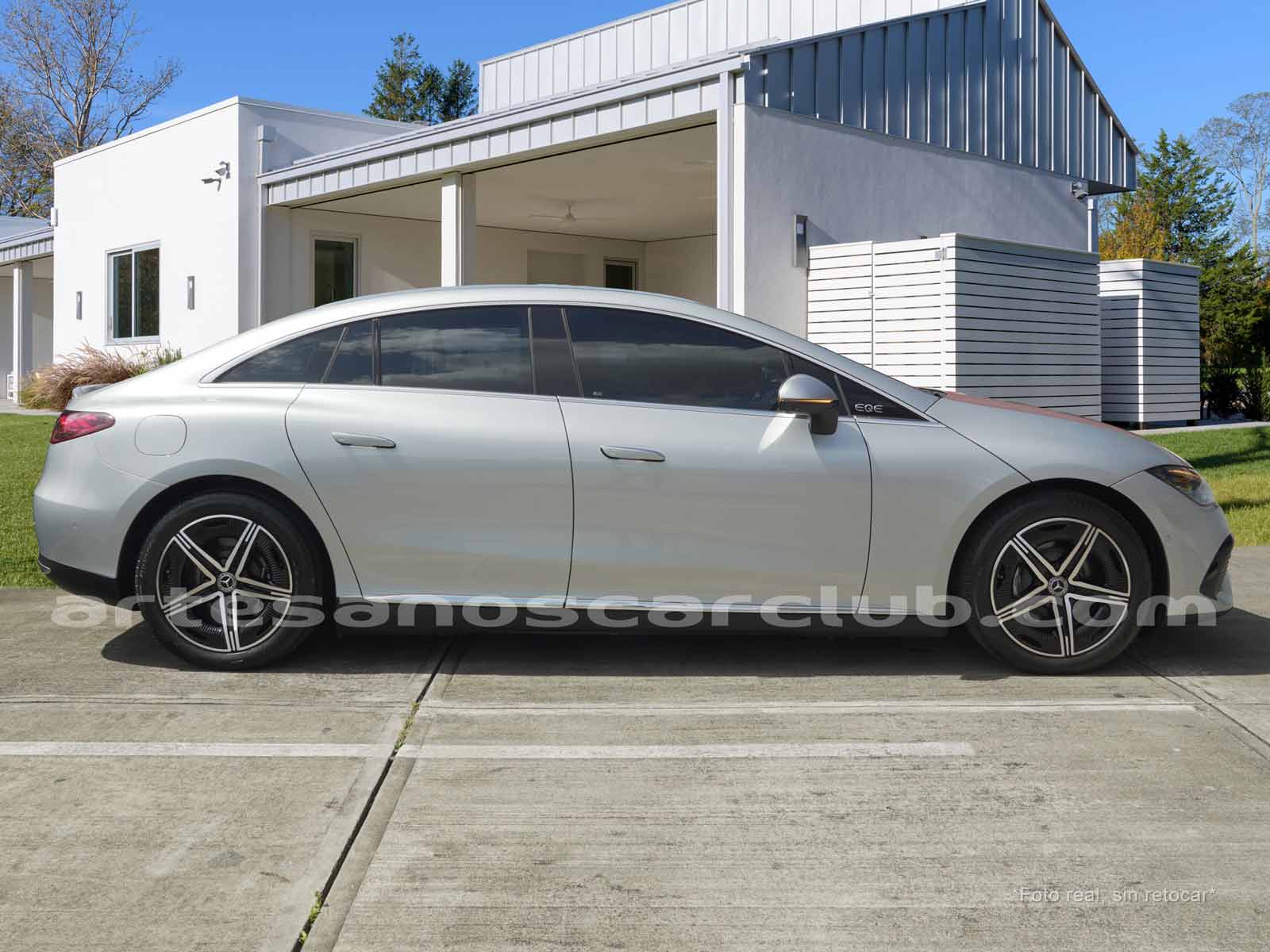 Paquete AMG exterior (Parrilla radiador con Mercedes-Benz Pattern (5U4), Parachoques delantero específico AMG pintado en el color de la carrocería con A-Wing en negro de alto brillo y embellecedor cromado, splitter frontal en cromo brillante, flics y aletas en las tomas de aire delanteras en negro de alto brillo con embellecedor en cromo, Faldones laterales pintados en negro de alto brillo con inserto cromado, faldón trasero específico AMG pintado en el color de la carrocería con inserto en efecto difusor en negro de alto brillo y doble listón embellecedor cromado, Flics en las salidas de aire traseras en negro de superficie estructurada, aros AMG aerodinámicos en color negro y torneados en aluminio brillante).