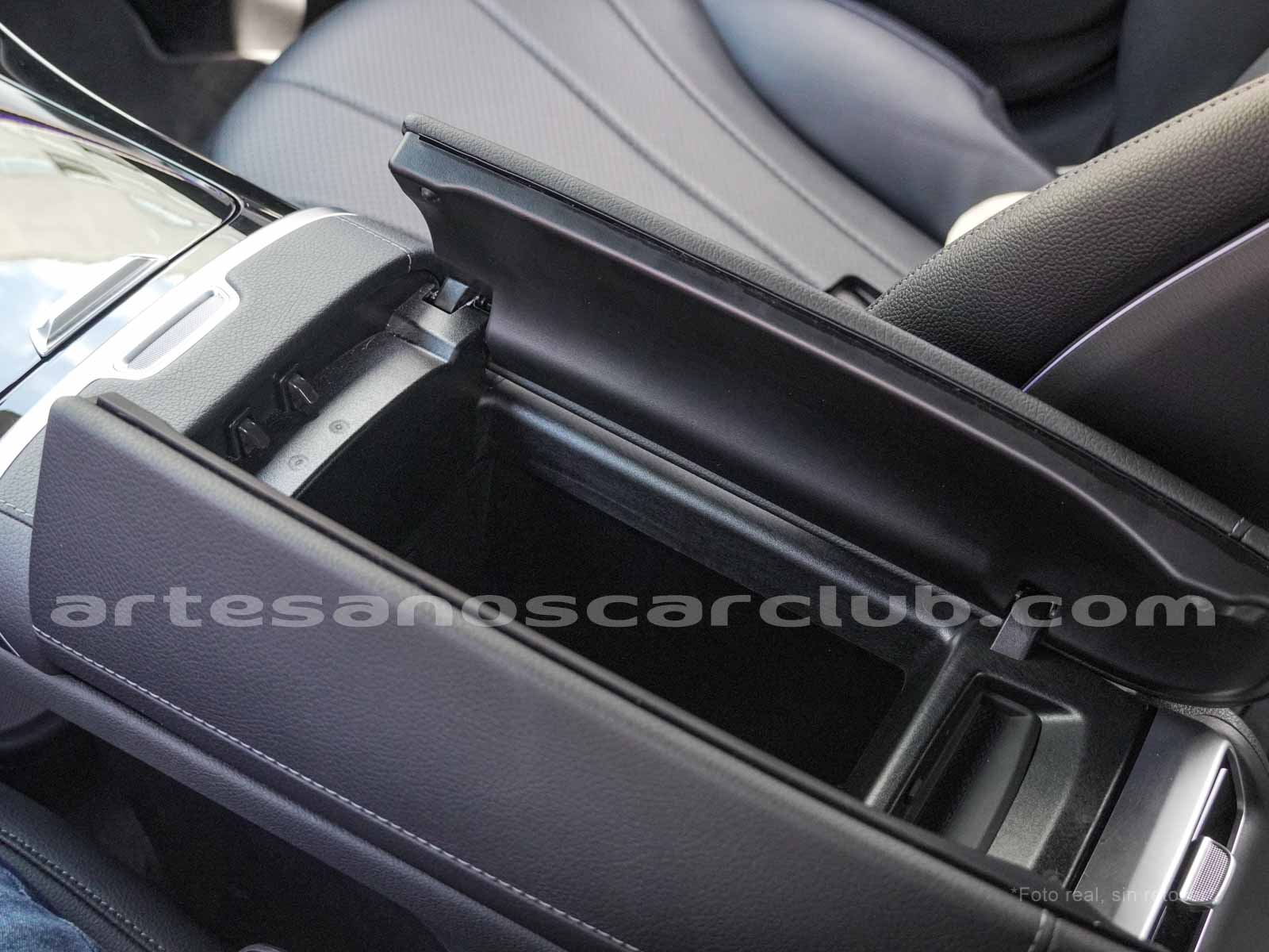 Apoyabrazos delantero con compartimento y posavasos.