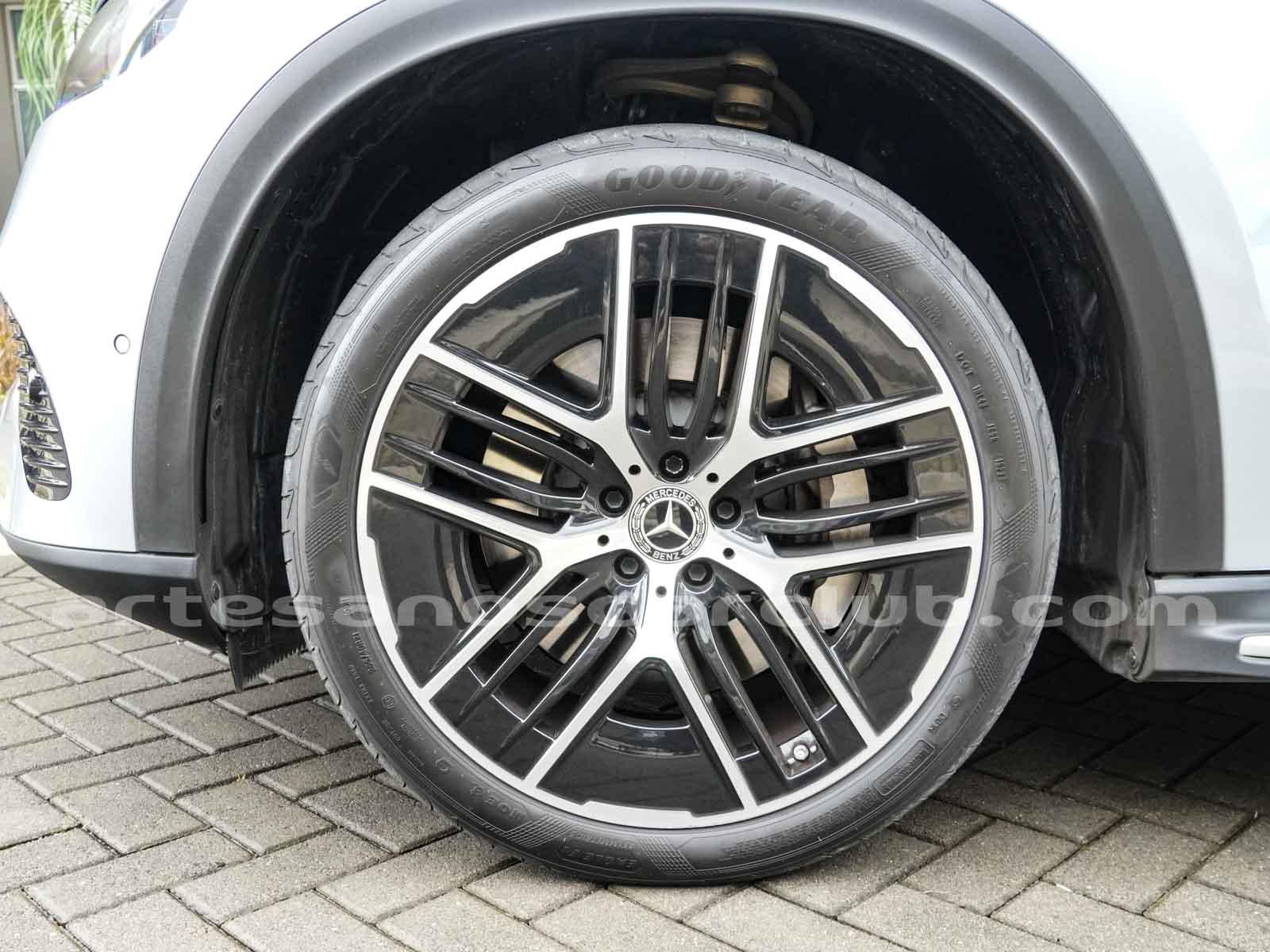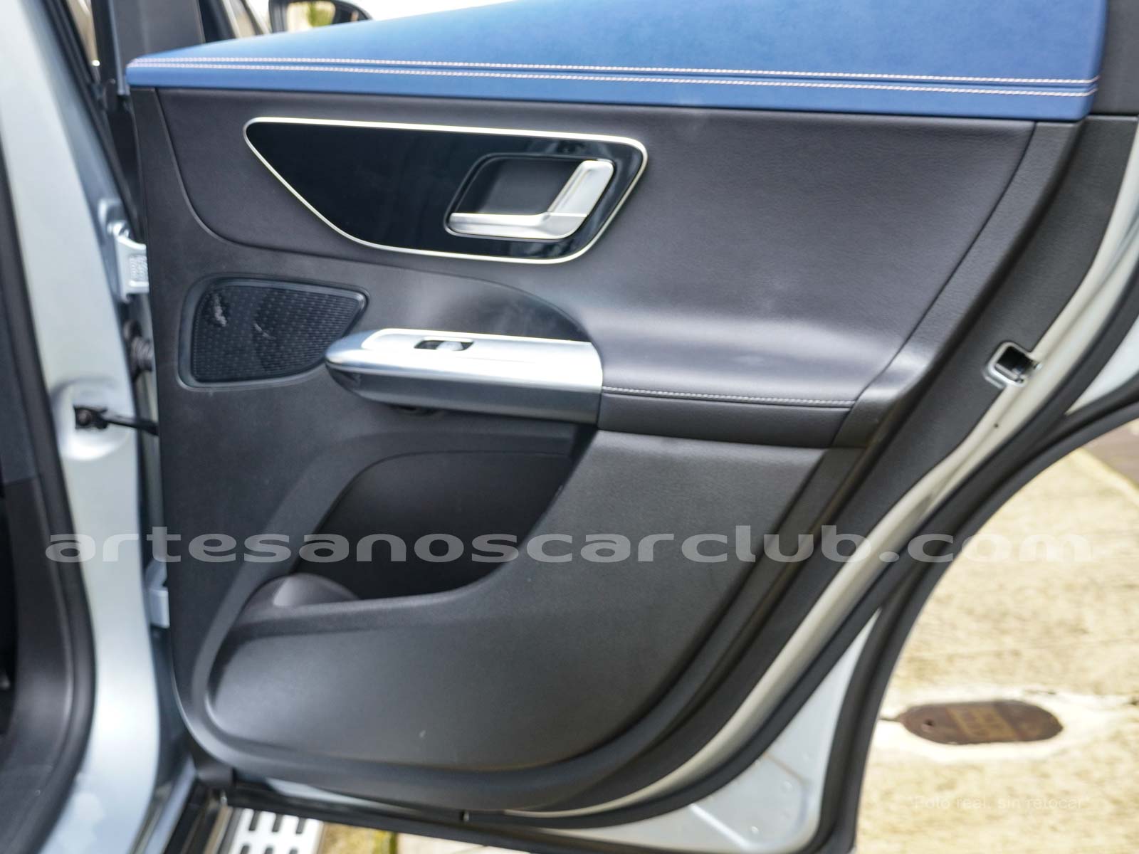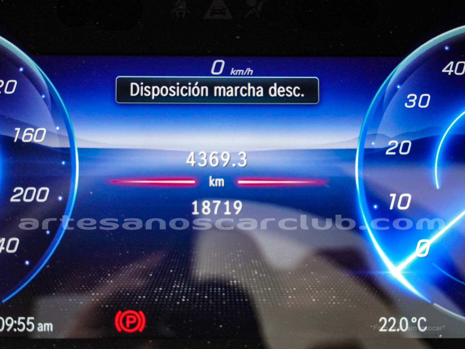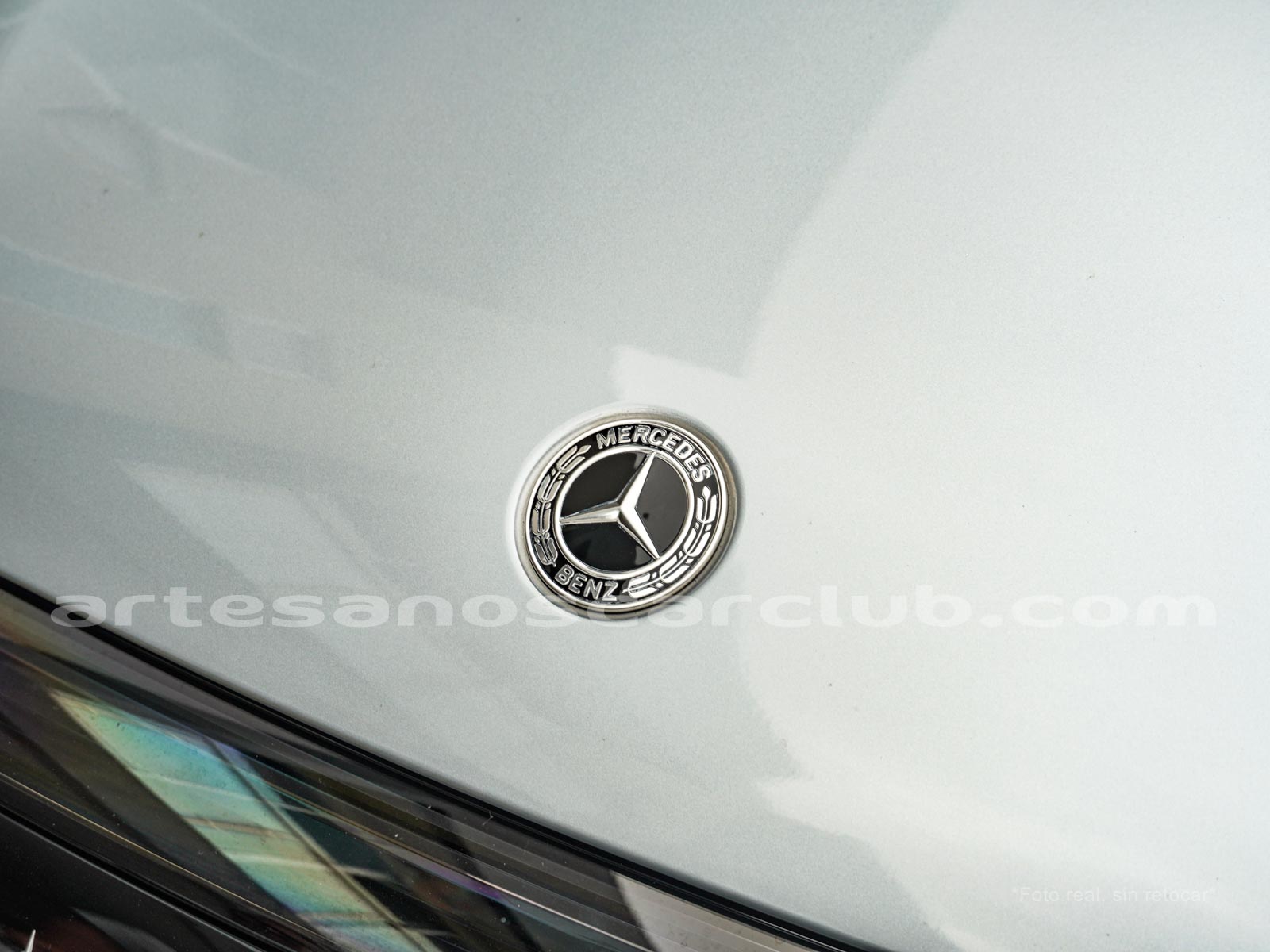 Paquete AMG exterior (Parrilla radiador con Mercedes-Benz Pattern (5U4), Parachoques delantero específico AMG pintado en el color de la carrocería con A-Wing en negro de alto brillo y embellecedor cromado, splitter frontal en cromo brillante, flics y aletas en las tomas de aire delanteras en negro de alto brillo con embellecedor en cromo, Faldones laterales pintados en negro de alto brillo con inserto cromado, faldón trasero específico AMG pintado en el color de la carrocería con inserto en efecto difusor en negro de alto brillo y doble listón embellecedor cromado, Flics en las salidas de aire traseras en negro de superficie estructurada, aros AMG aerodinámicos en color negro y torneados en aluminio brillante).