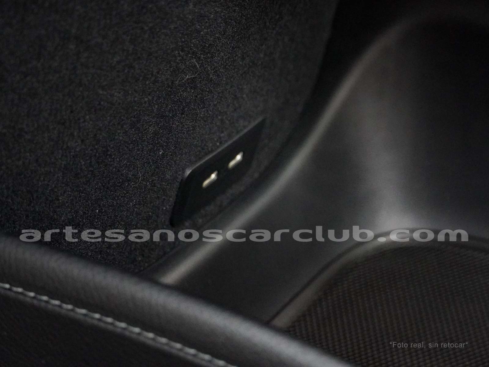 Tapicería en piel Artico microperforada negra NEOTEX asientos confort con área superior de dash en piel negro cod: 204, dash en área baja en negro con costuras dobles de alto contraste blancas.