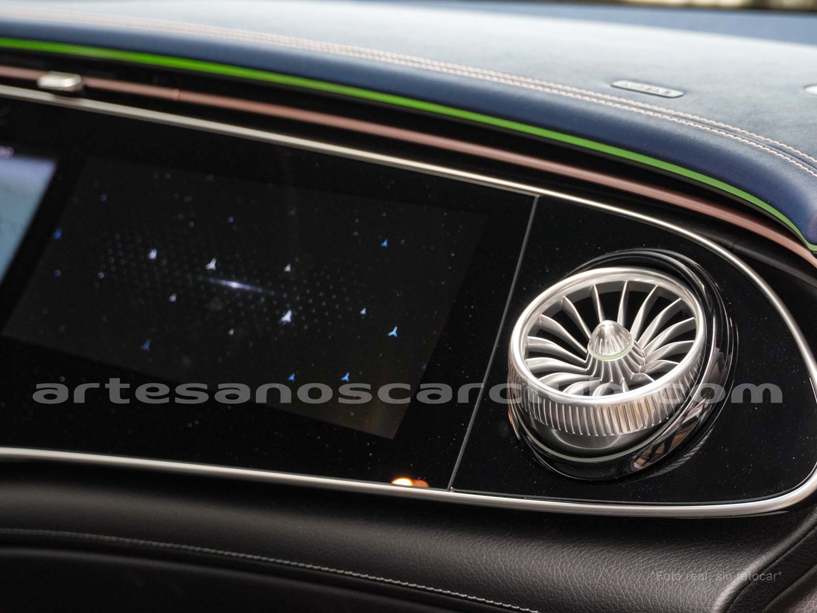 Difusores interiores de aire delanteros tipo turbina (exteriores) con anillos decorativos de aluminio iluminados.