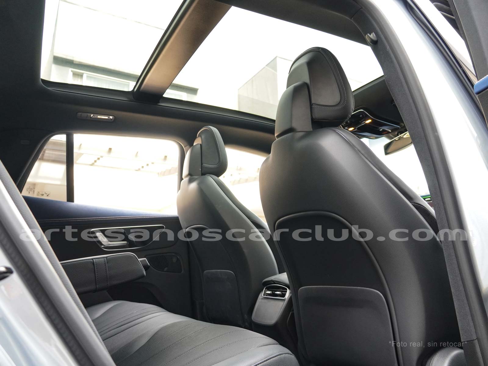 Techo en cristal de 2 módulos, elevable y deslizable con cortina antisolar de cierre eléctrico, con vidrio de seguridad calorífugo, tintado, deflector de aire en la zona delantera, protección anti aprisionamiento, cierre automático en caso de lluvia, función de cierre «PRE-SAFE® en caso de inminente colisión y sistema de apertura/cierre de cristal o cortina antisolar por exceso de calor o lluvia.