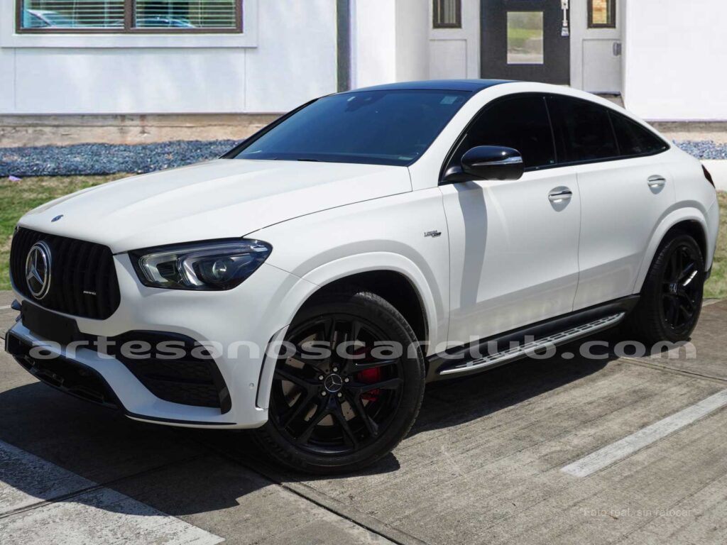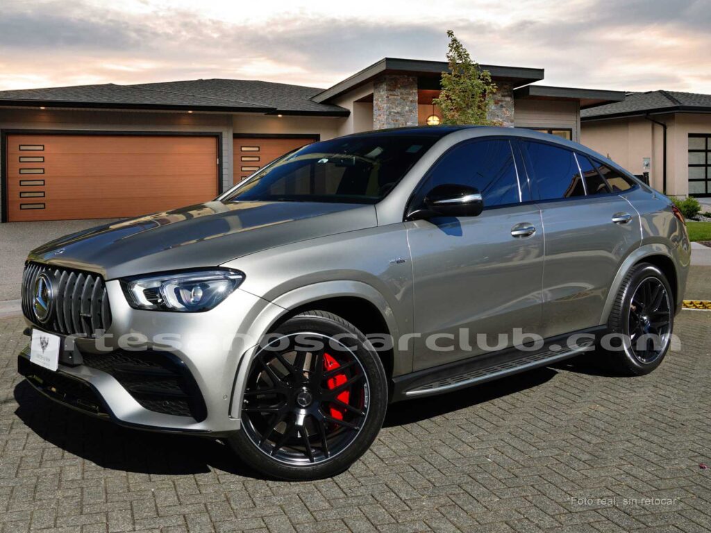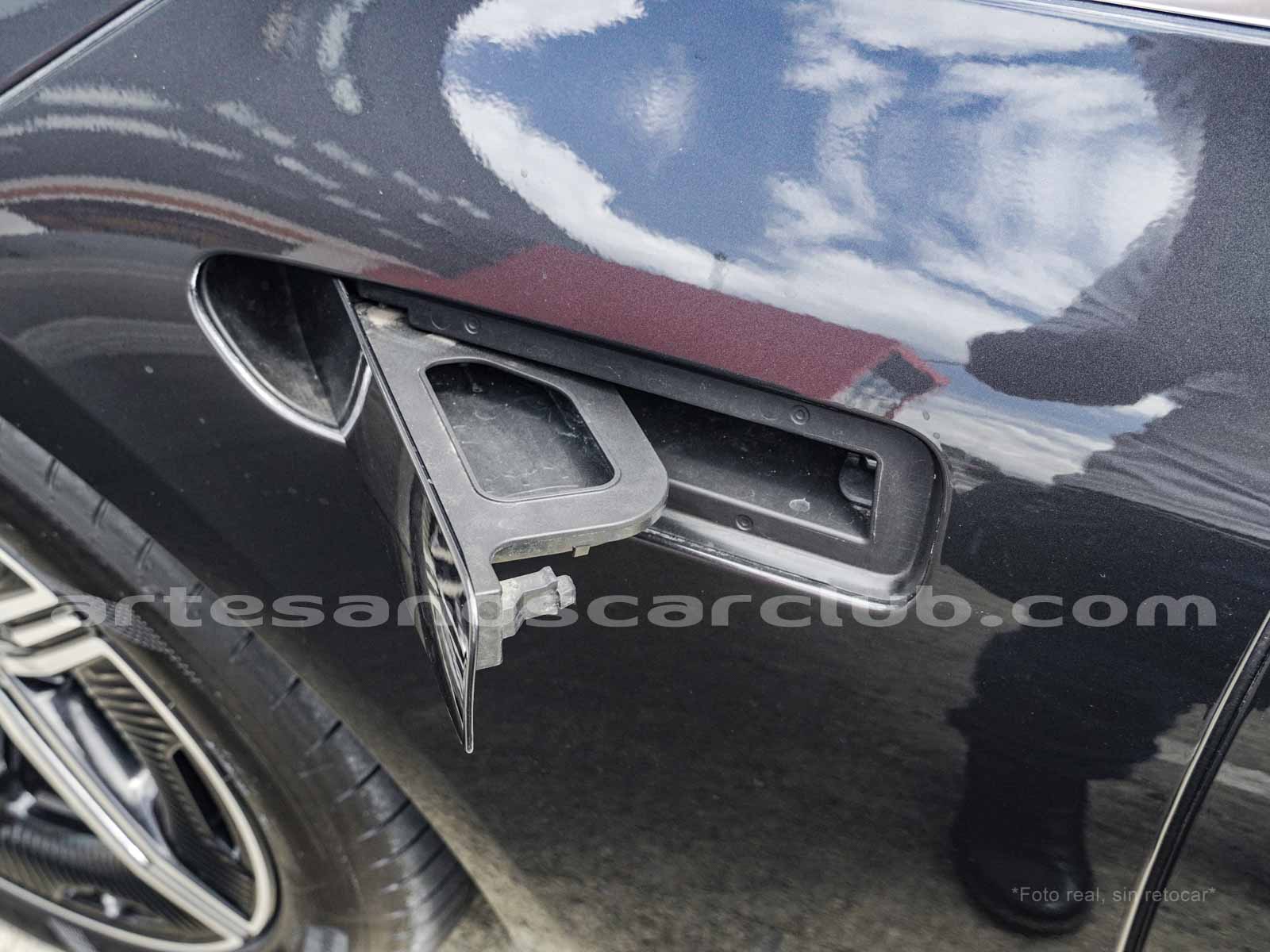 Paquete AMG exterior (Parrilla radiador con Mercedes-Benz Pattern (5U4), Parachoques delantero específico AMG pintado en el color de la carrocería con A-Wing en negro de alto brillo y embellecedor cromado, splitter frontal en cromo brillante, flics y aletas en las tomas de aire delanteras en negro de alto brillo con embellecedor en cromo, Faldones laterales pintados en negro de alto brillo con inserto cromado, Faldón trasero específico AMG pintado en el color de la carrocería con inserto en efecto difusor en negro de alto brillo y doble listón embellecedor cromado, Flics en las salidas de aire traseras en negro de superficie estructurada, aros AMG aerodinámicos en color negro y torneados en aluminio brillante).