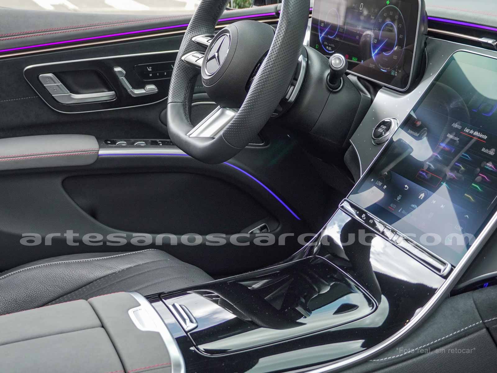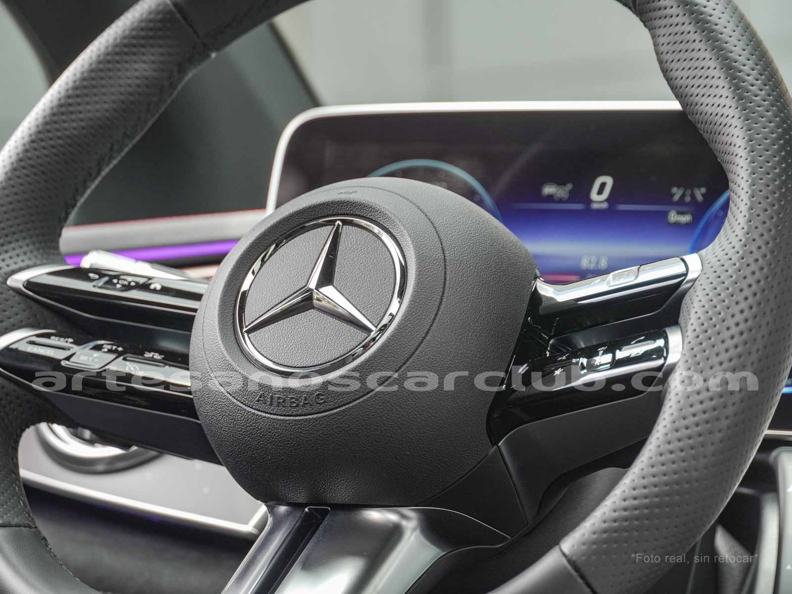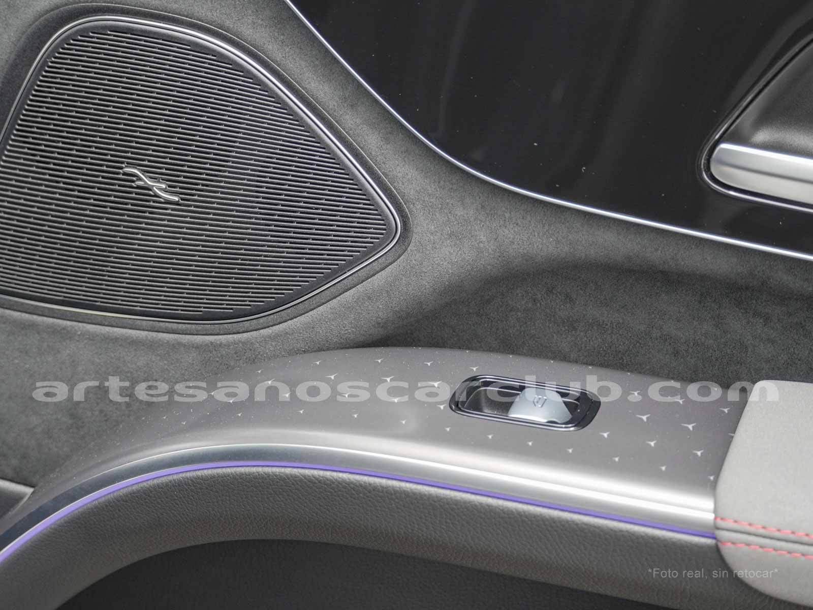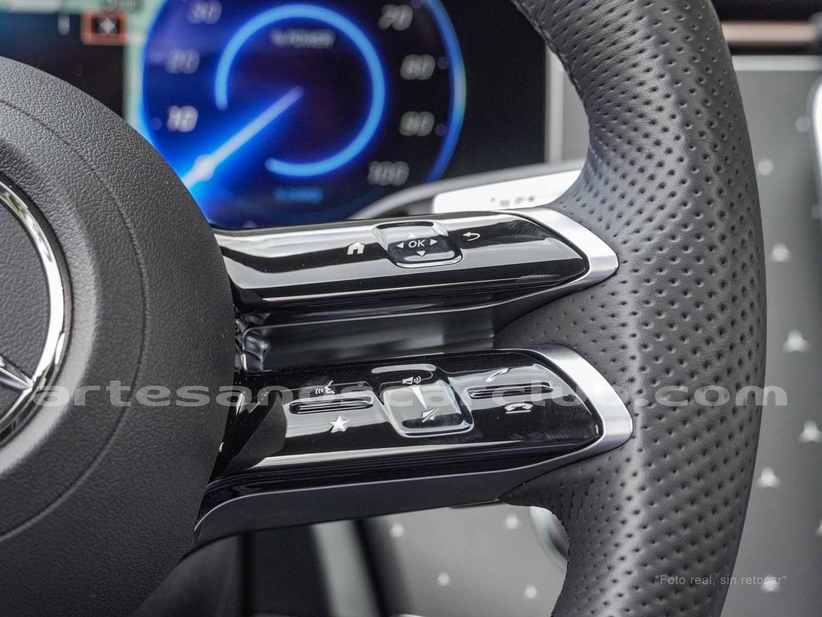 Paquete de iluminación activa ambiental para las funciones del vehículo (Asistente de voz MBUX, Climatización automática, Escenario de bienvenida).Paquete AMG Line interior (levas en volante en aluminio, Interior del techo en textil negro, Sillas deportivas con apoyo lateral mejorado, kit iluminación ambiental.