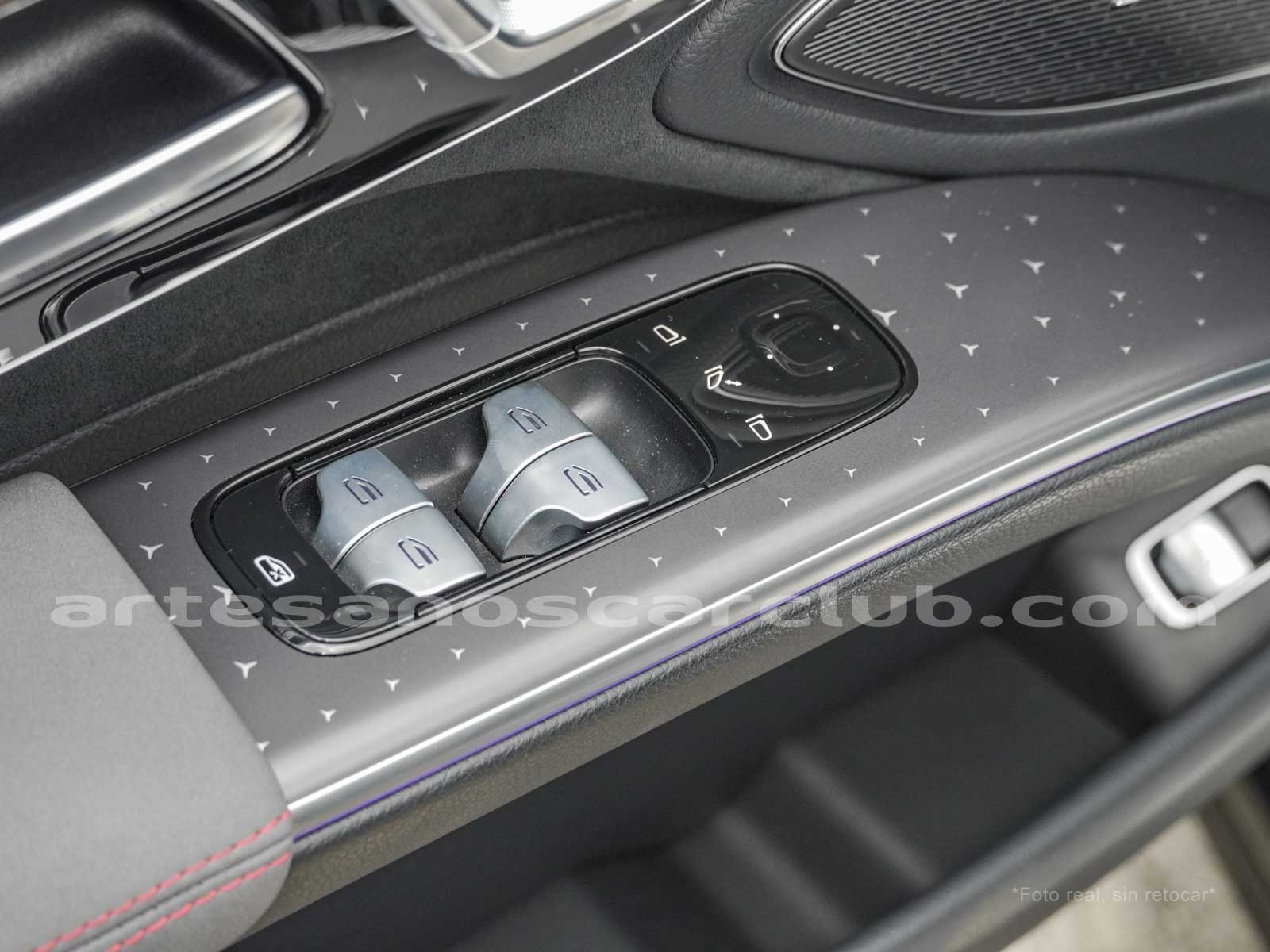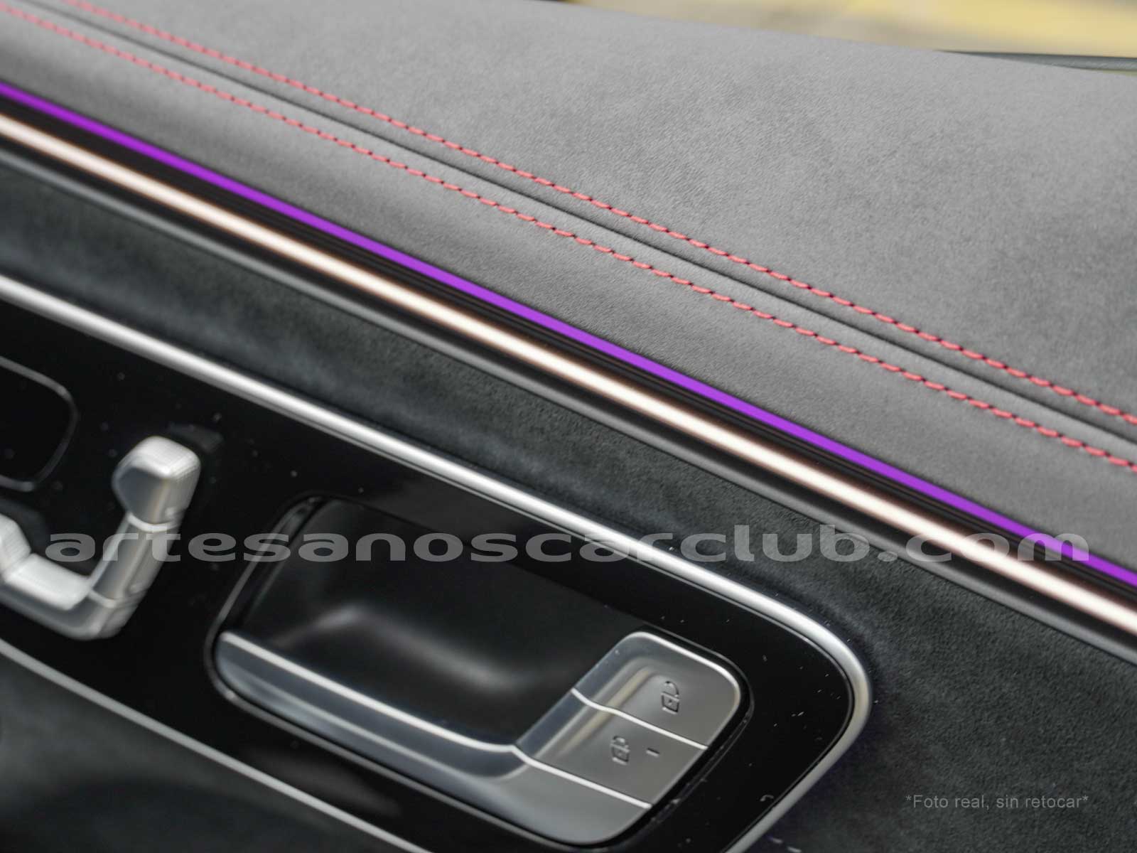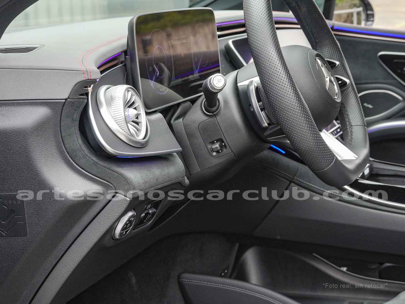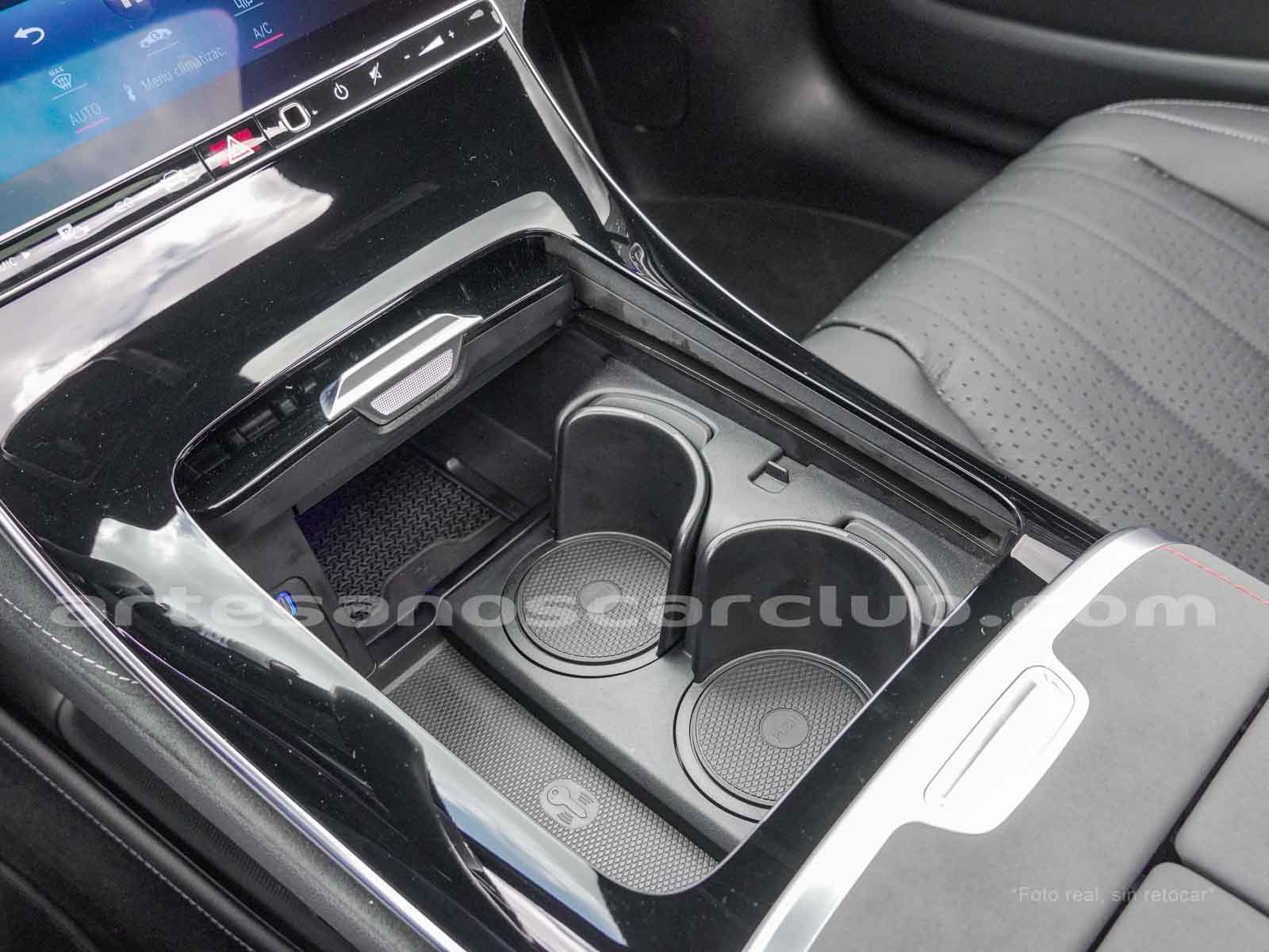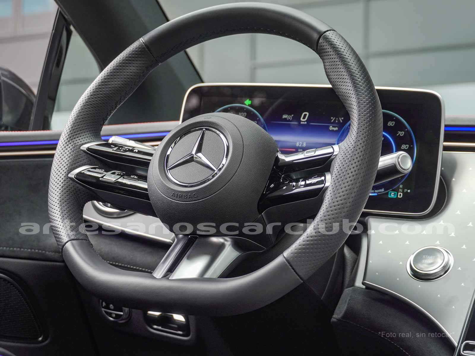 Paquete de iluminación activa ambiental para las funciones del vehículo (Asistente de voz MBUX, Climatización automática, Escenario de bienvenida).Paquete AMG Line interior (levas en volante en aluminio, Interior del techo en textil negro, Sillas deportivas con apoyo lateral mejorado, kit iluminación ambiental.