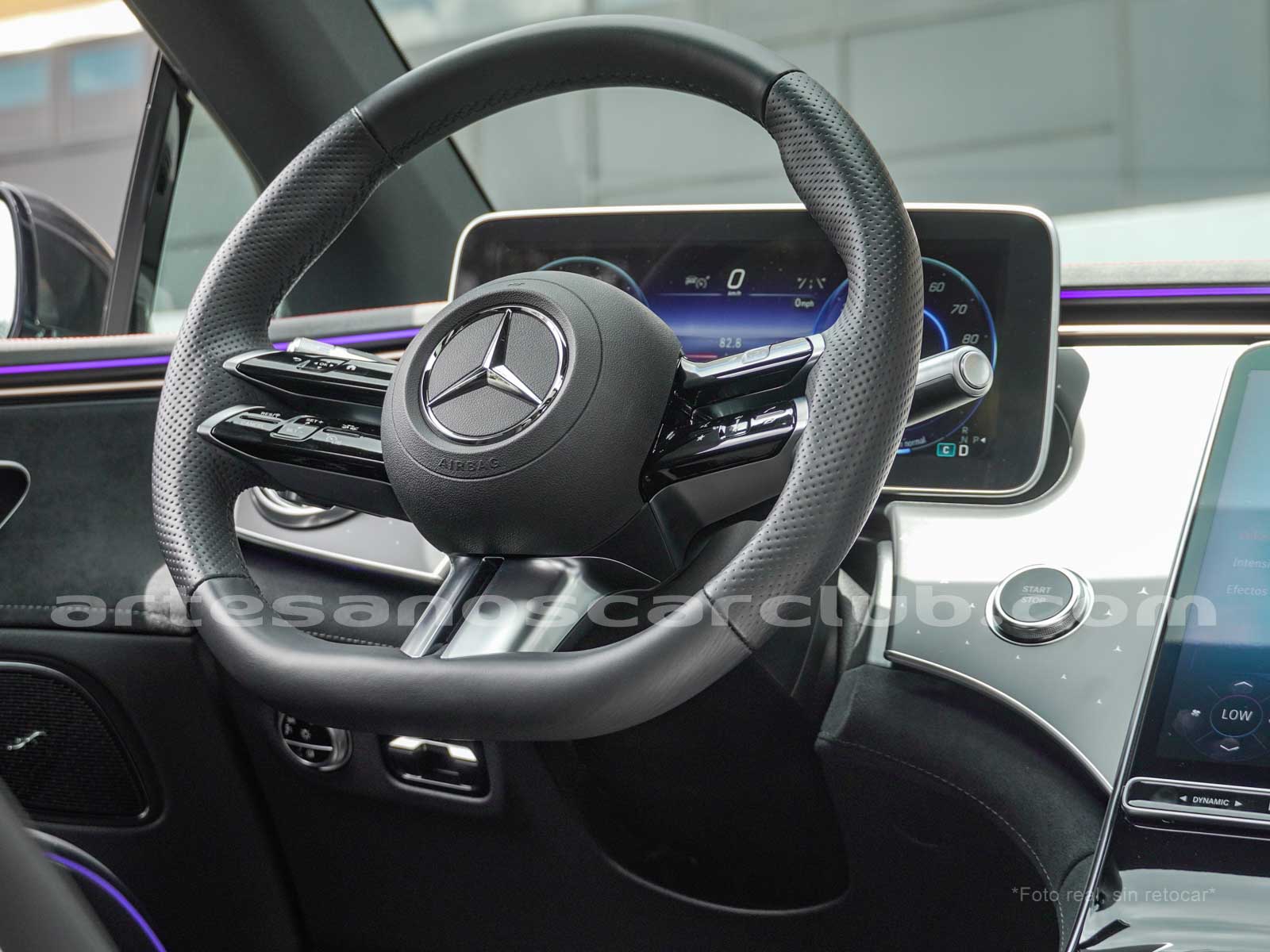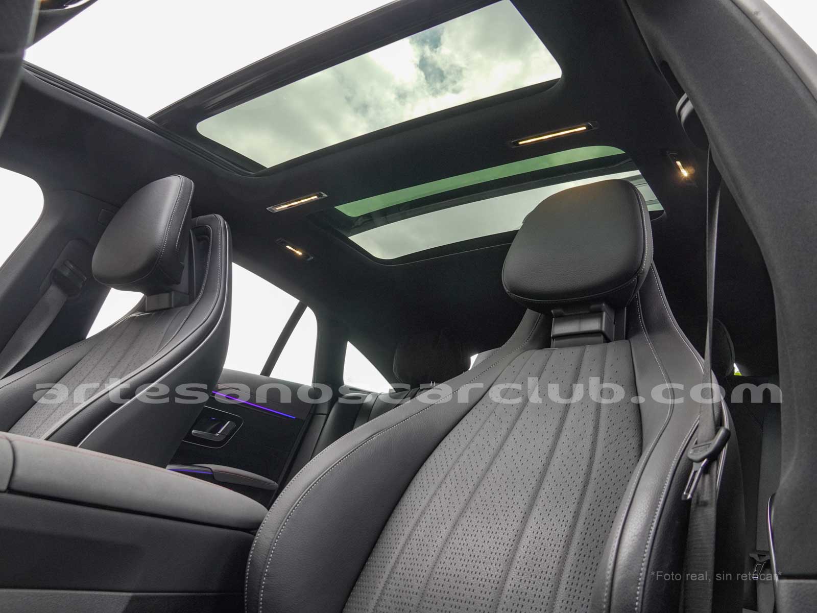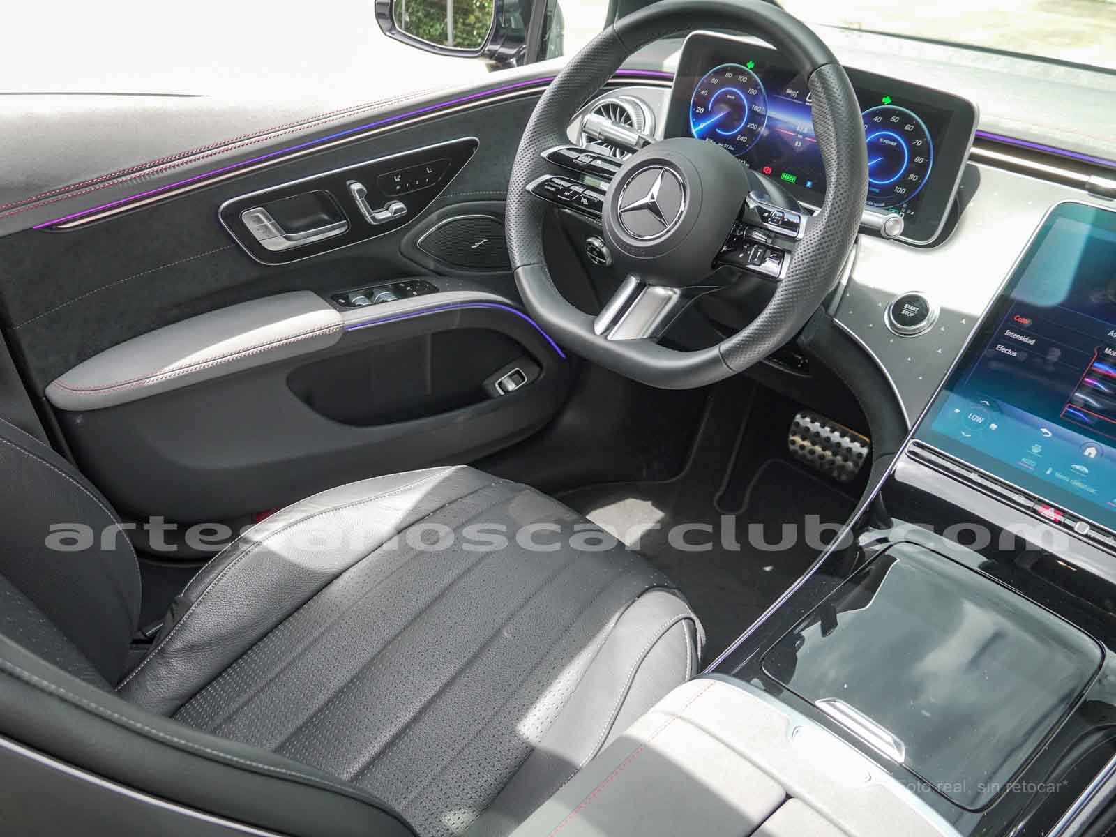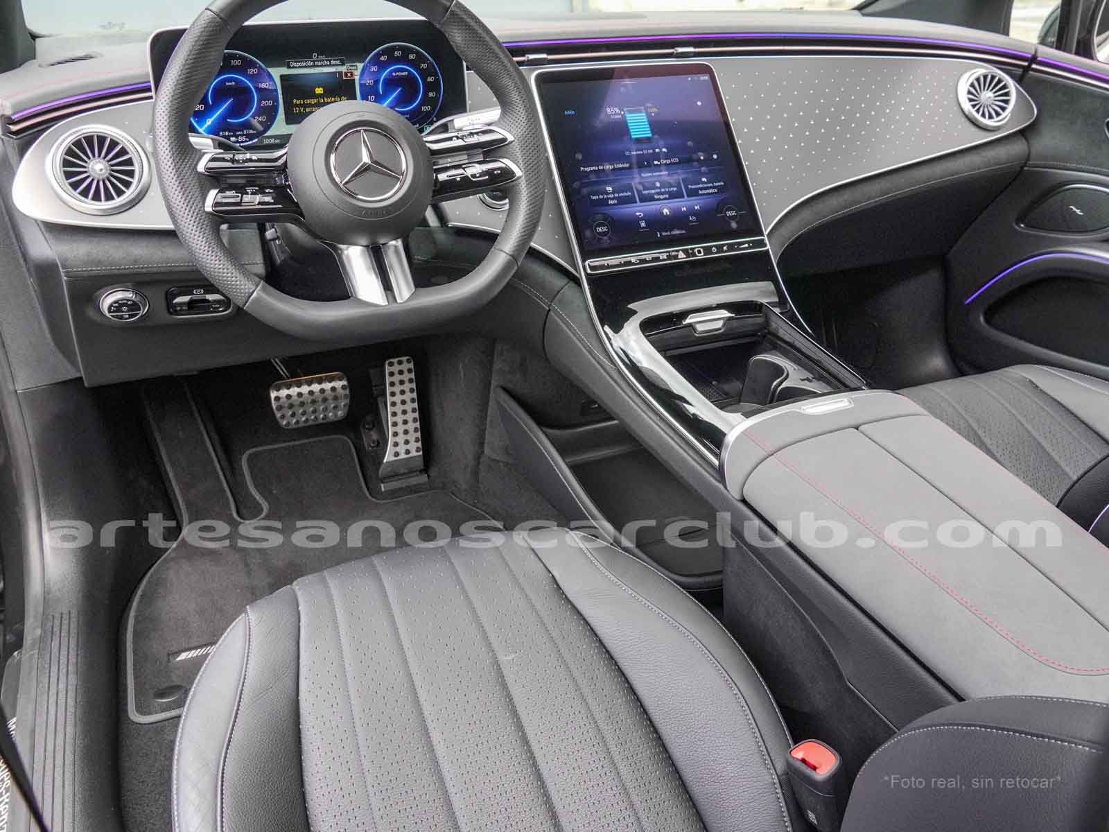 Paquete de iluminación activa ambiental para las funciones del vehículo (Asistente de voz MBUX, Climatización automática, Escenario de bienvenida).Paquete AMG Line interior (levas en volante en aluminio, Interior del techo en textil negro, Sillas deportivas con apoyo lateral mejorado, kit iluminación ambiental.