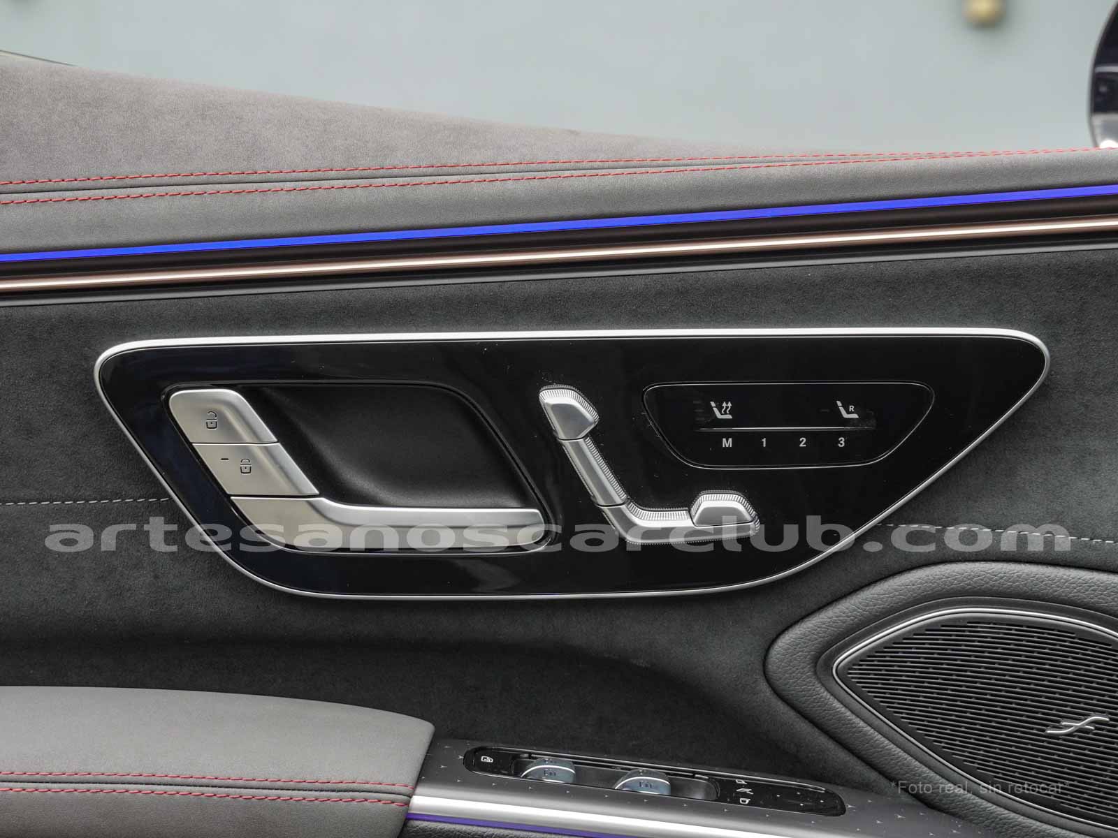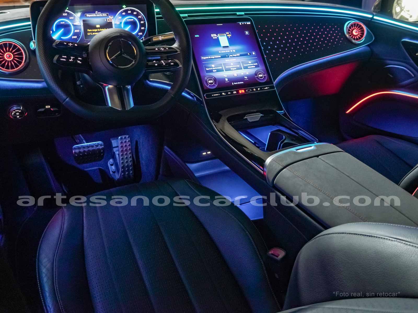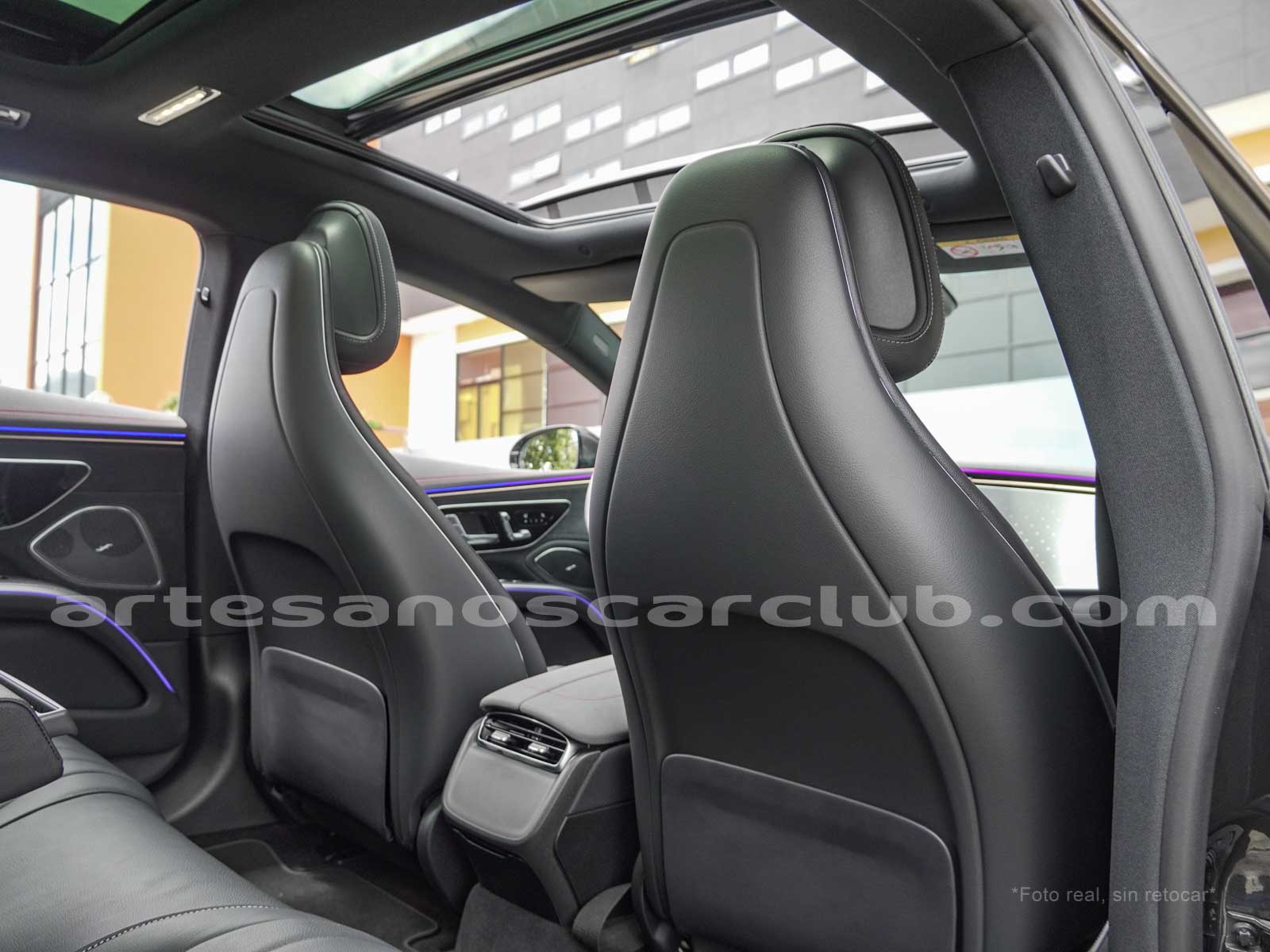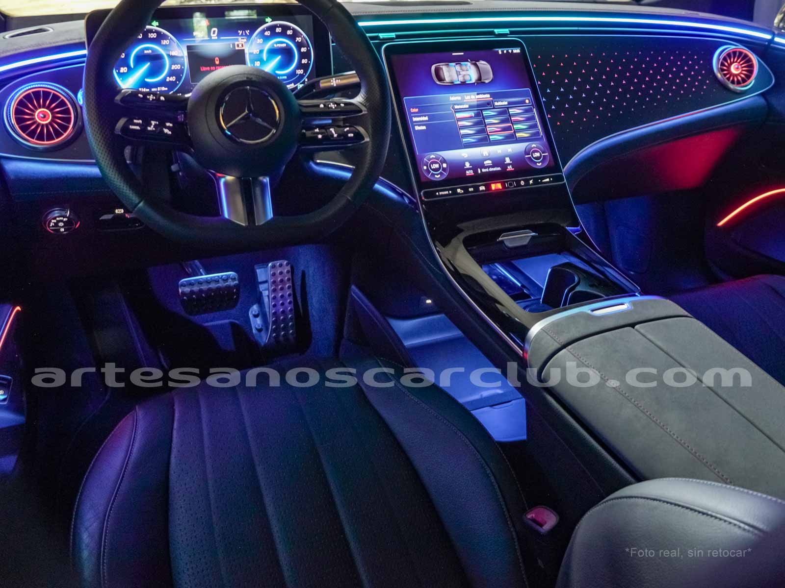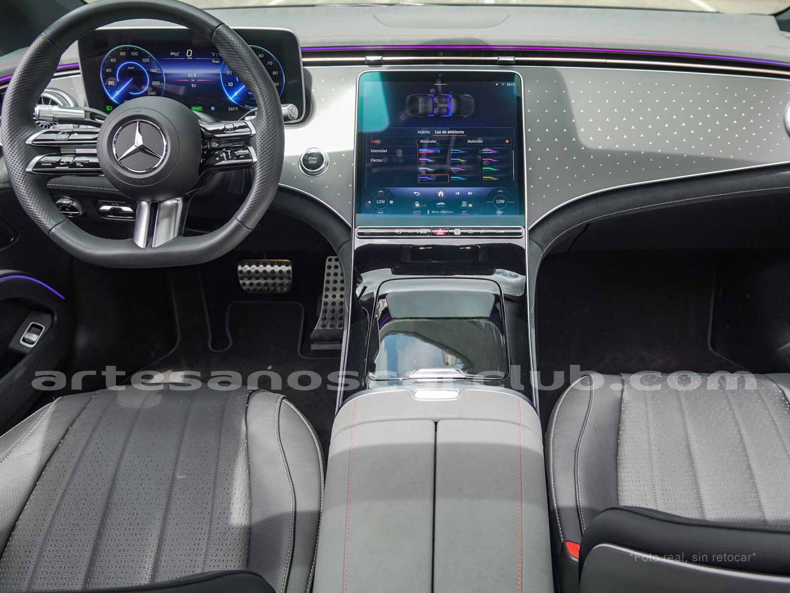 Paquete de iluminación activa ambiental para las funciones del vehículo (Asistente de voz MBUX, Climatización automática, Escenario de bienvenida).Paquete AMG Line interior (levas en volante en aluminio, Interior del techo en textil negro, Sillas deportivas con apoyo lateral mejorado, kit iluminación ambiental.