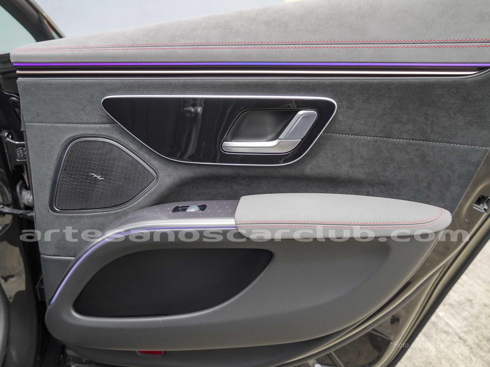 Manillas exteriores de puertas en color de carrocería con aplicación decorativa en cromo inscripción de la marca e iluminación.