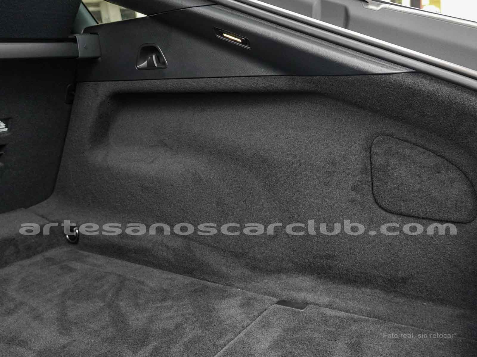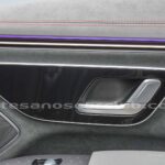 Tapicería en piel negra/gris «Space» con área superior de dash en piel negro cod: 204, dash en área baja en negro con costuras dobles de alto contraste blancas.