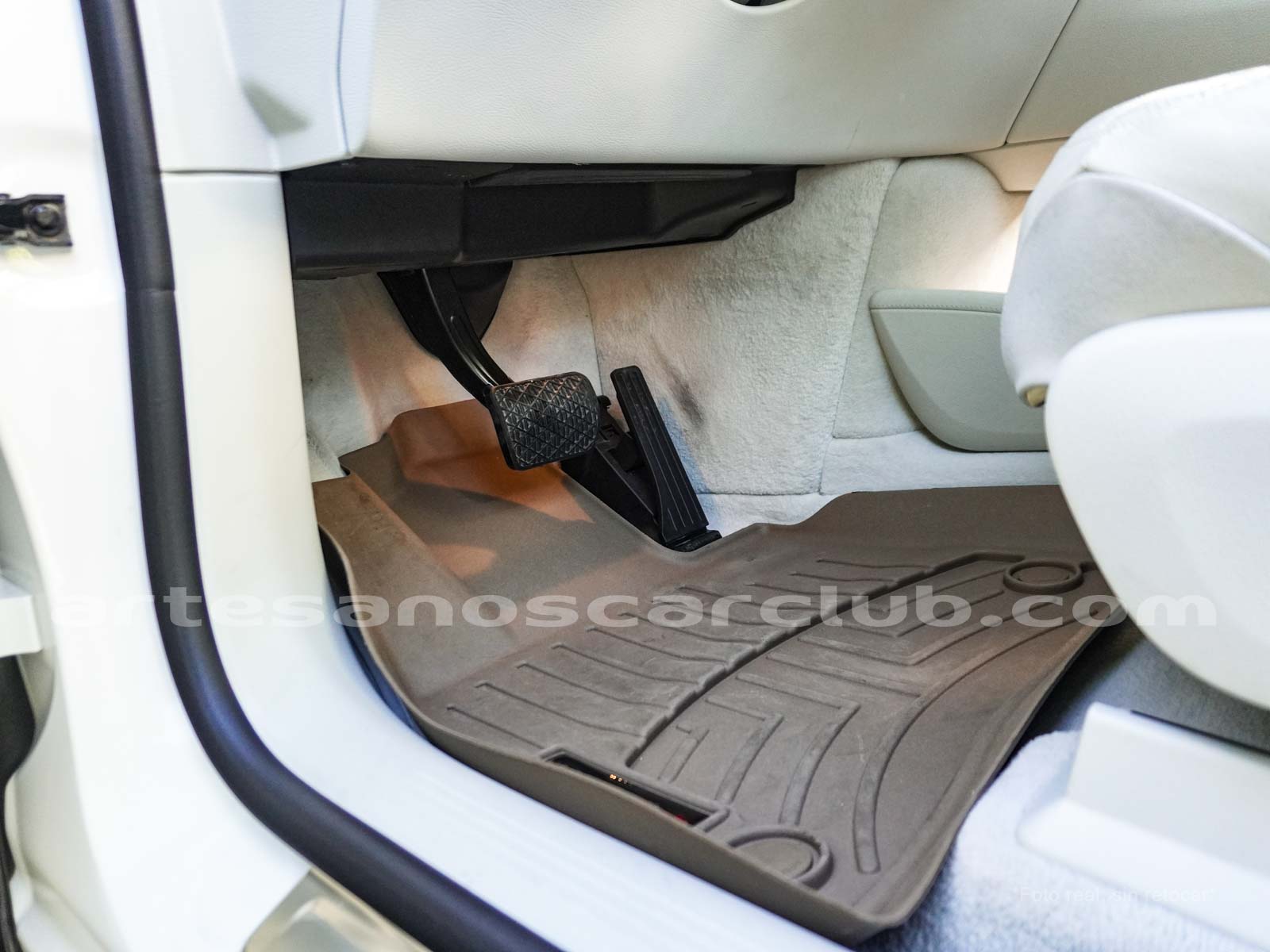 Tapicería en piel gris «Neva» con marrón «Balao» microperforada con asientos confort con área superior de dash en piel marrón cod: -, dash en área baja en blanco con costuras dobles de alto contraste blancas.