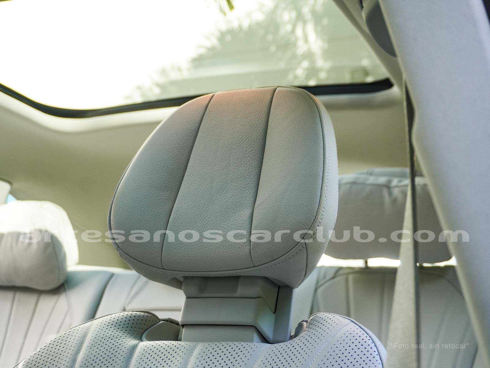 Techo en cristal de 2 módulos, elevable y deslizable con cortina antisolar de cierre eléctrico, con vidrio de seguridad calorífugo, tintado, deflector de aire en la zona delantera, protección anti aprisionamiento, cierre automático en caso de lluvia, función de cierre «PRE-SAFE® en caso de inminente colisión y sistema de apertura/cierre de cristal o cortina antisolar por exceso de calor o lluvia.