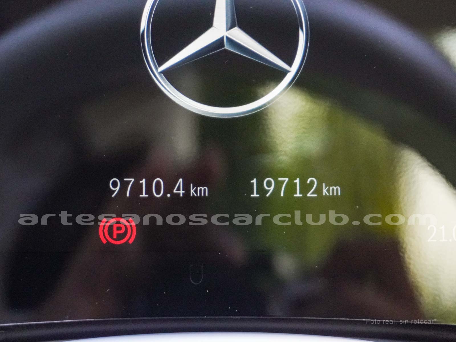 Paquete AMG exterior (Parrilla radiador con Mercedes-Benz Pattern (5U4), Parachoques delantero específico AMG pintado en el color de la carrocería con A-Wing en negro de alto brillo y embellecedor cromado, splitter frontal en cromo brillante, flics y aletas en las tomas de aire delanteras en negro de alto brillo con embellecedor en cromo, Faldones laterales pintados en negro de alto brillo con inserto cromado, faldón trasero específico AMG pintado en el color de la carrocería con inserto en efecto difusor en negro de alto brillo y doble listón embellecedor cromado, Flics en las salidas de aire traseras en negro de superficie estructurada, aros AMG aerodinámicos en color negro y torneados en aluminio brillante).