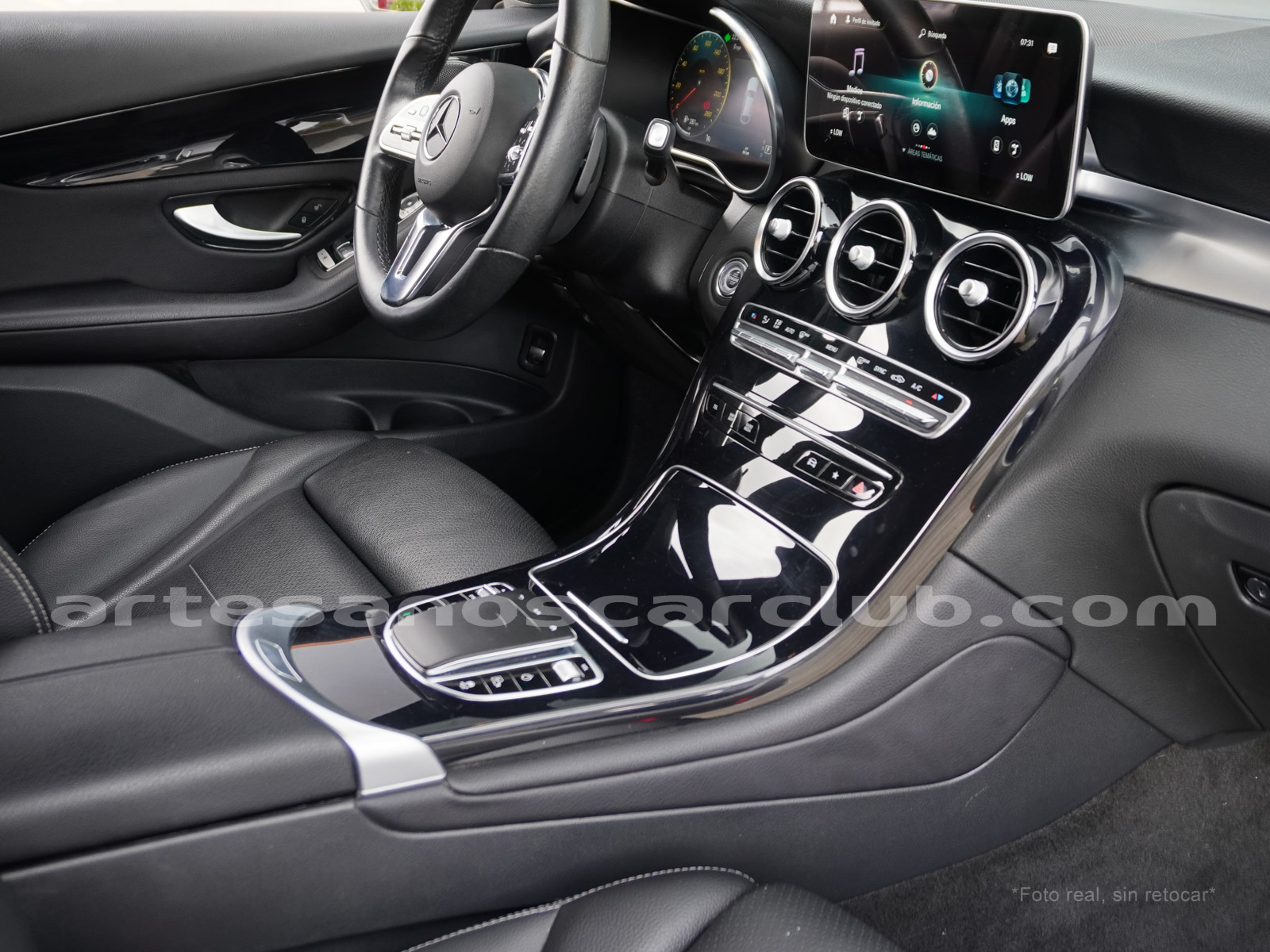 • Volante de 4 radios en piel negra con botonería de diseño en acabado negro.