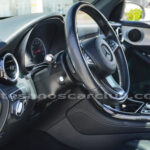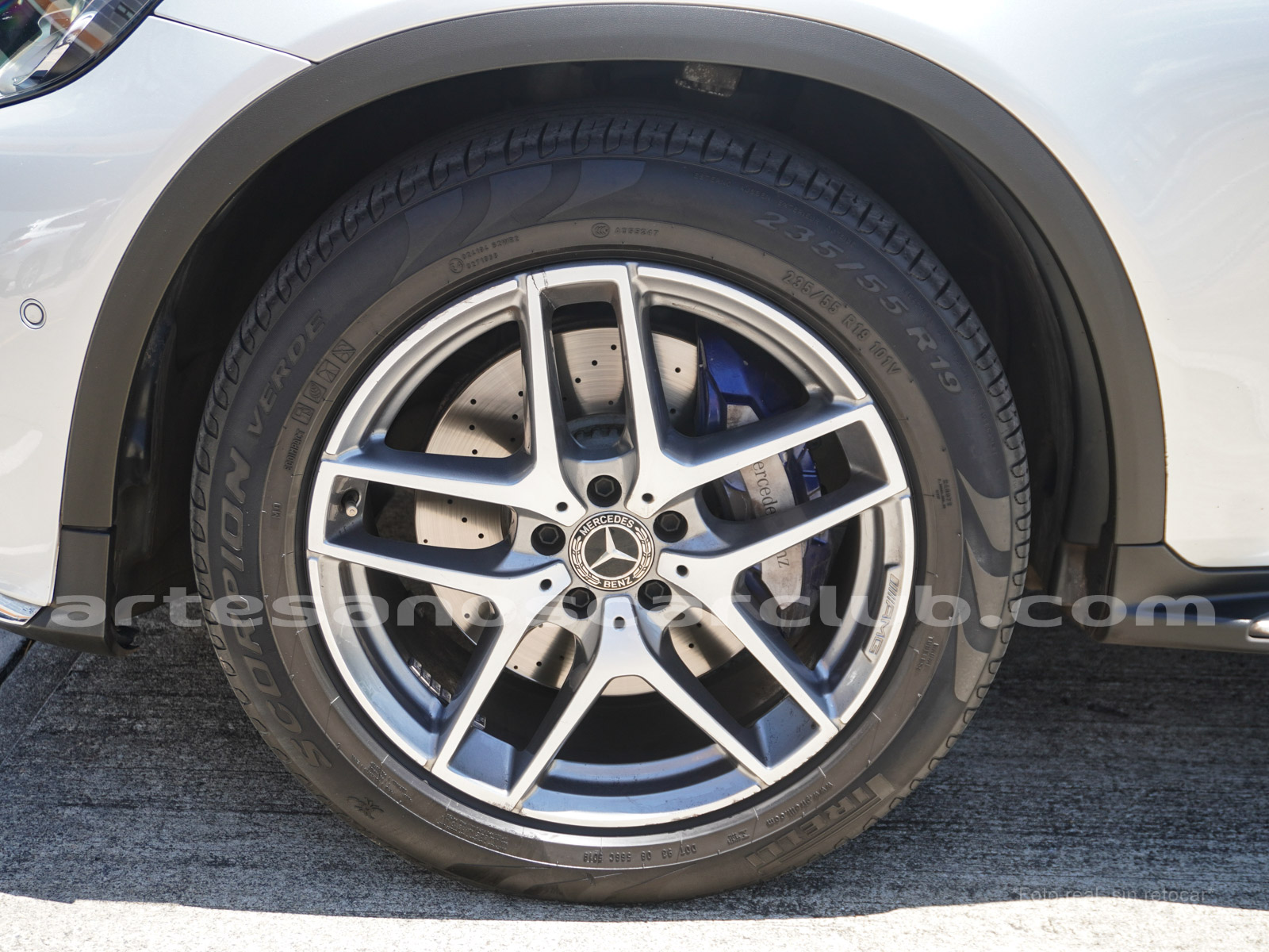 Frenos con Mordazas color plata con inscripción «Mercedes Benz».