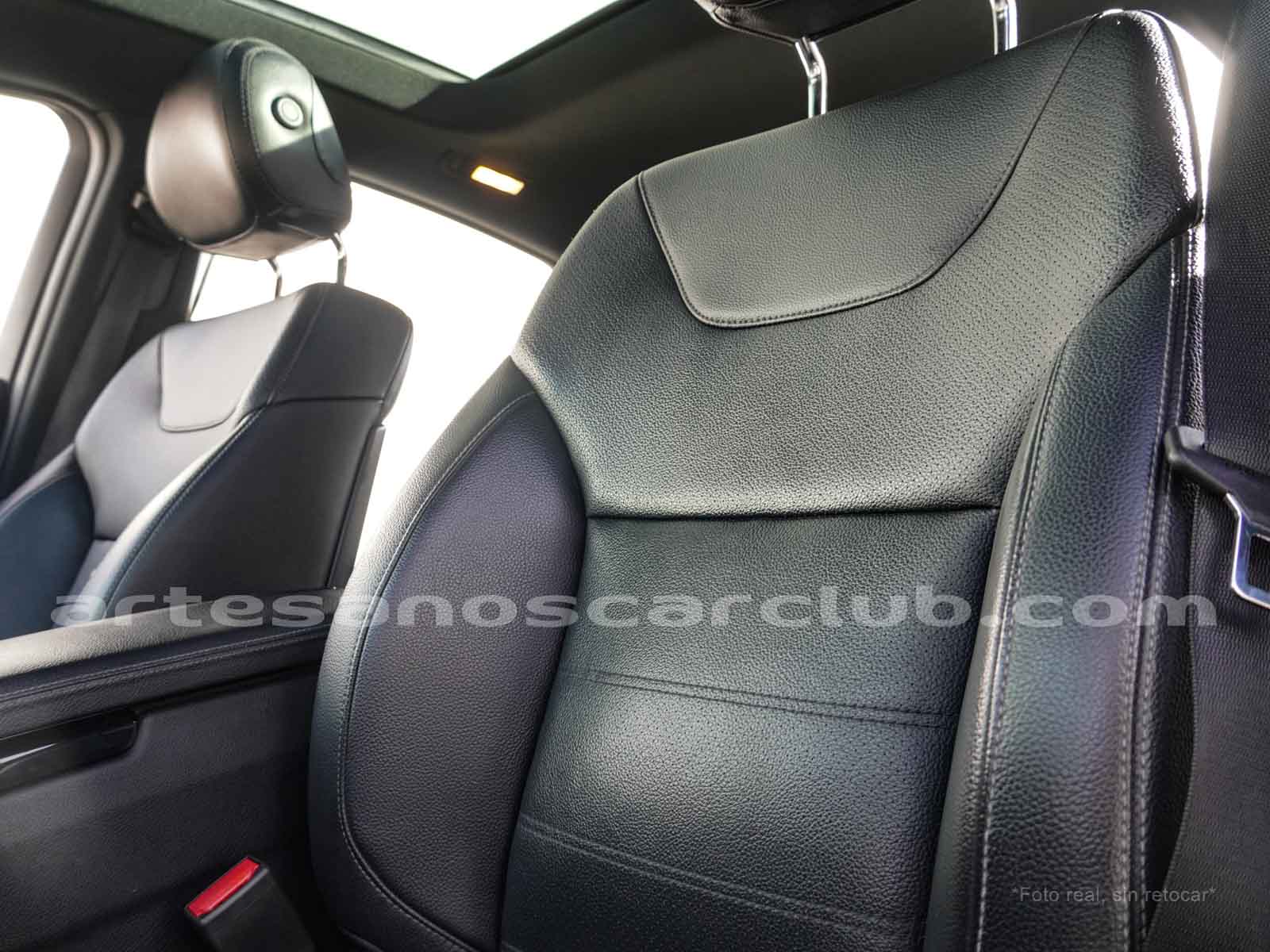 • Tapicería en piel artico negra «Black» con costuras de alto contraste blancas ref: 121 con dash en color negro.