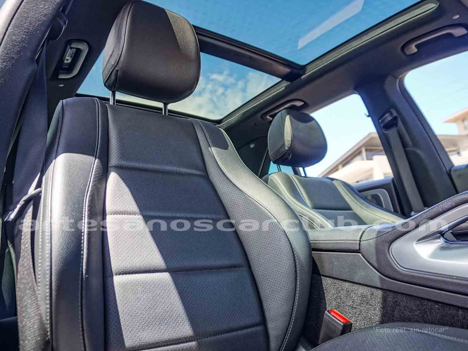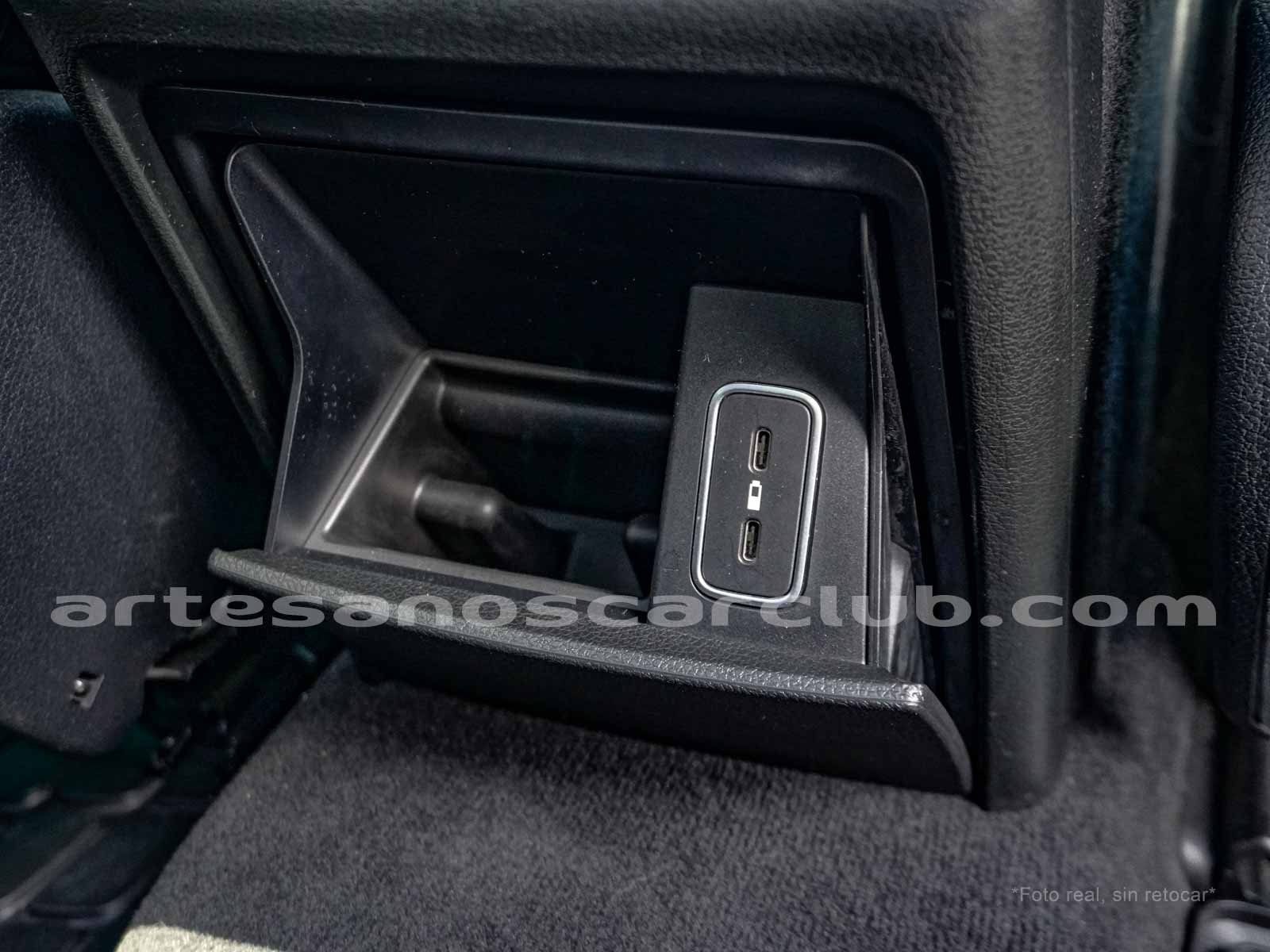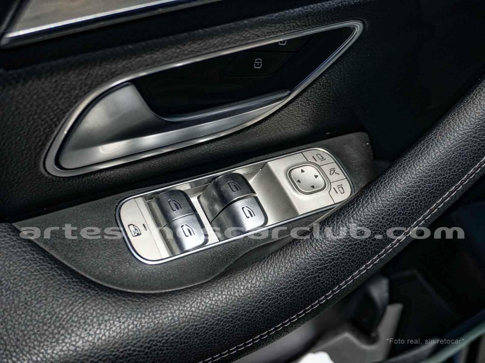 Kit estético exterior AMG (parrilla frontal con acabados tipo diamante cromado, bumper delantero con detalles cromados, 4 aros de 21″ AMG, alerón trasero en color de la carrocería, bumper trasero con decorativo cromado en área baja, manijas de puertas con detalles cromados).