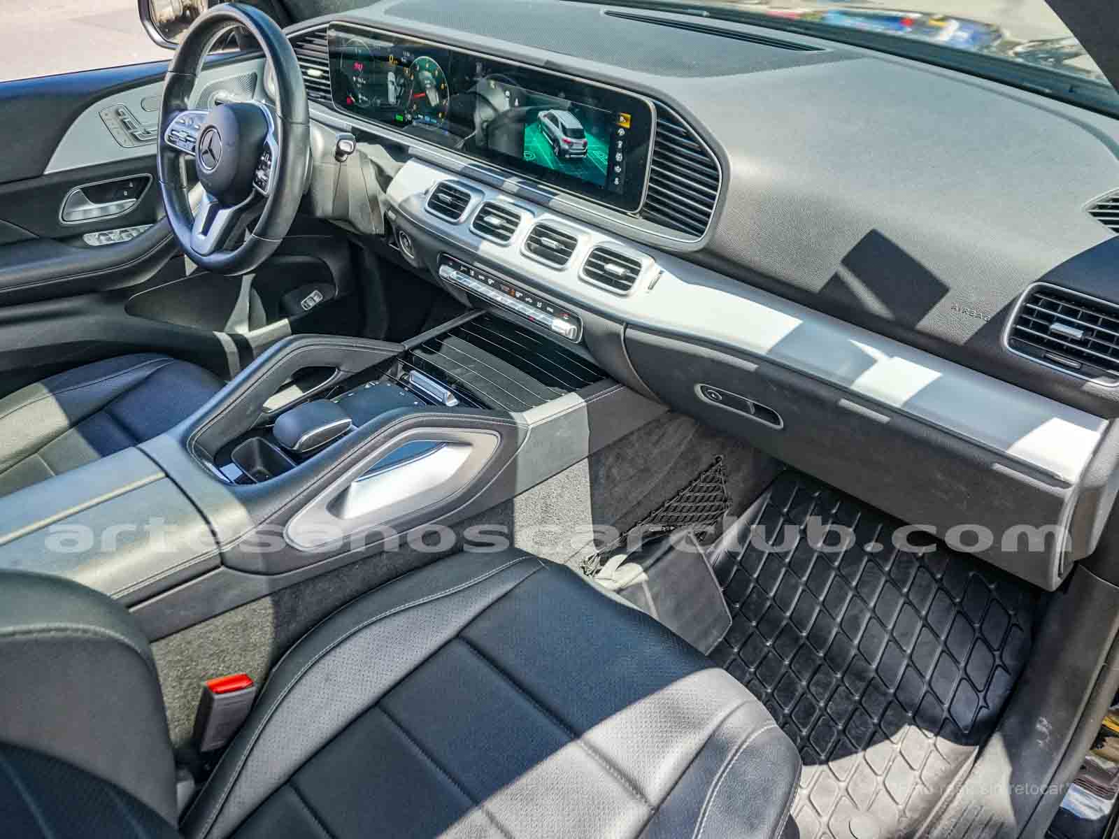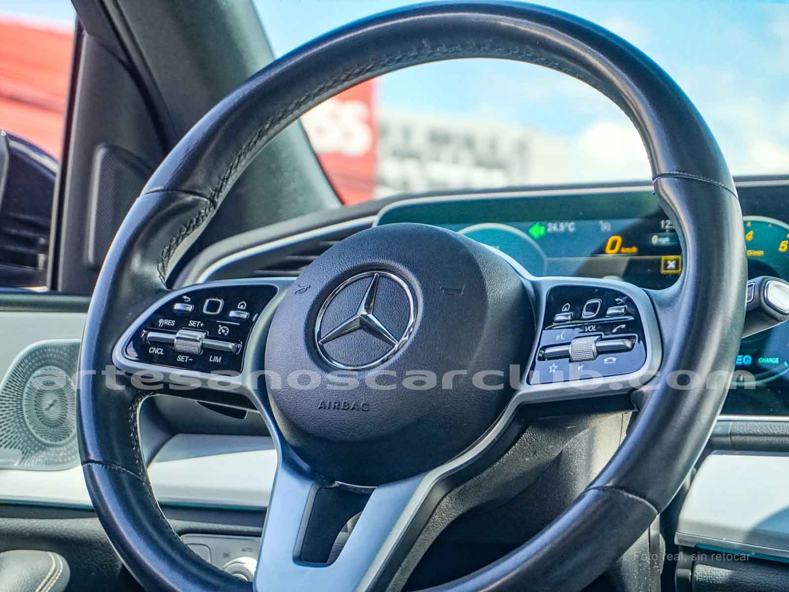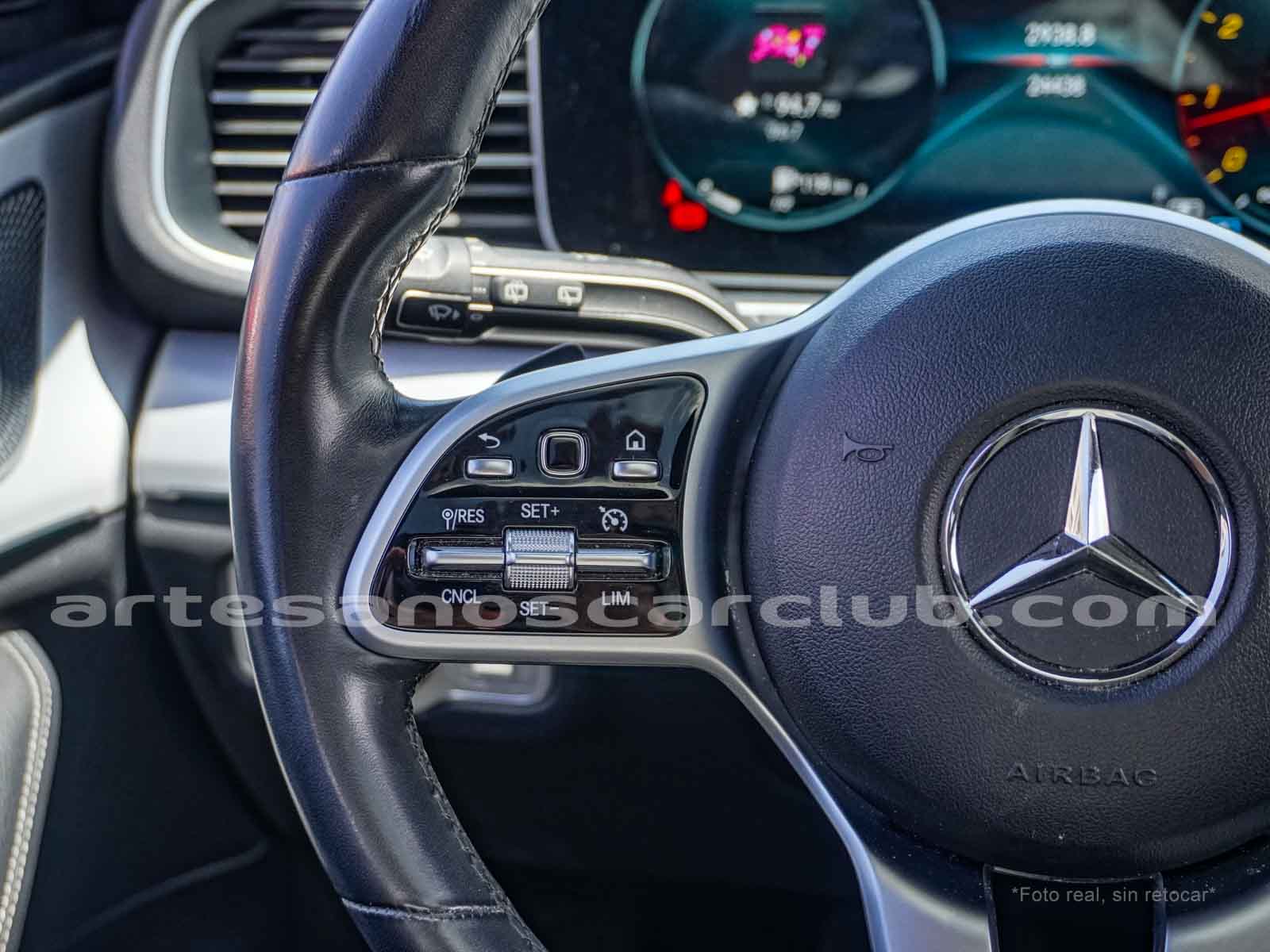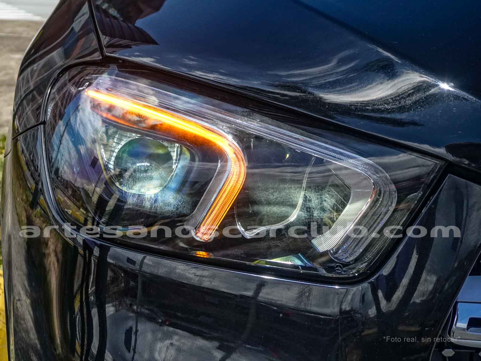 Kit estético exterior AMG (parrilla frontal con acabados tipo diamante cromado, bumper delantero con detalles cromados, 4 aros de 21″ AMG, alerón trasero en color de la carrocería, bumper trasero con decorativo cromado en área baja, manijas de puertas con detalles cromados).