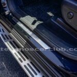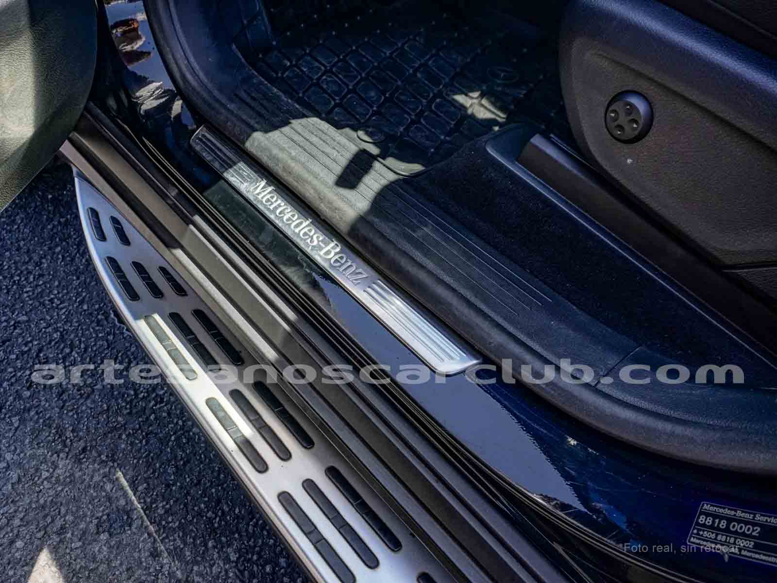 Molduras de ingreso a cabina en acero con iluminación e inscripción Mercedes Benz.