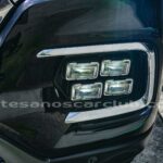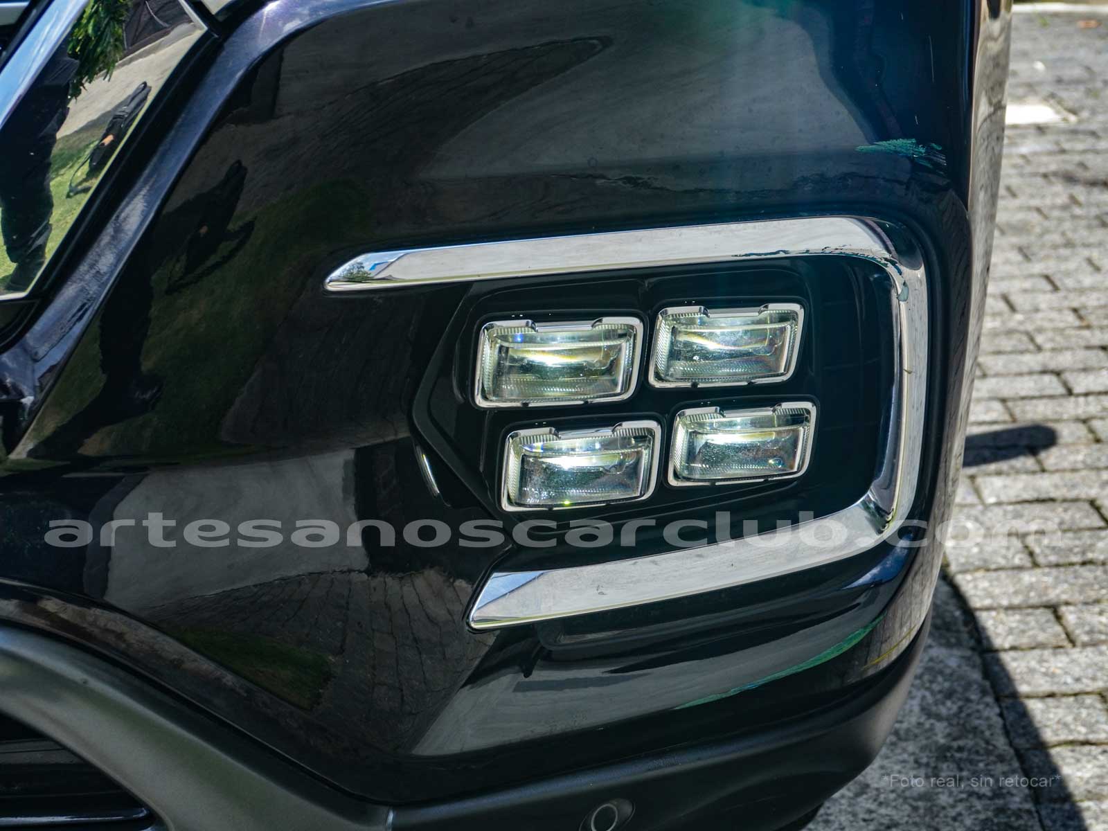 - Parrilla frontal en cromo con múltiples líneas horizontales.