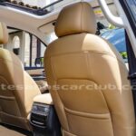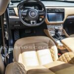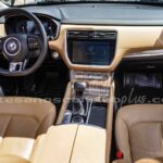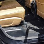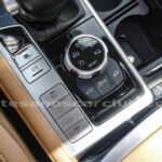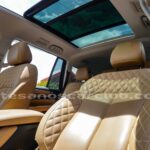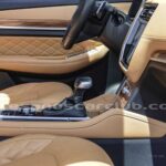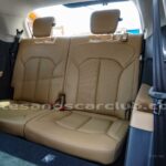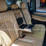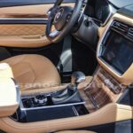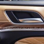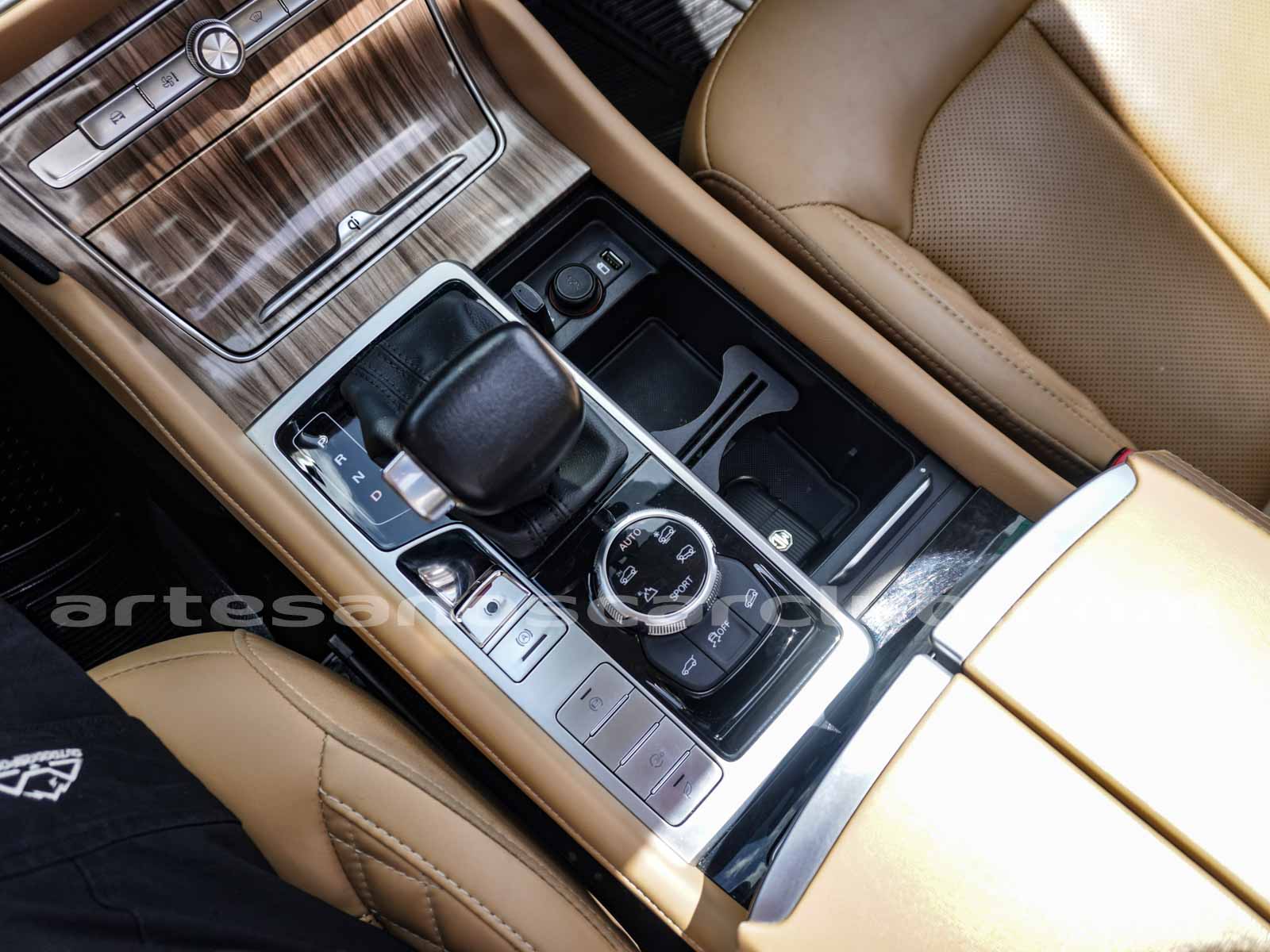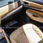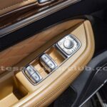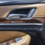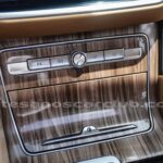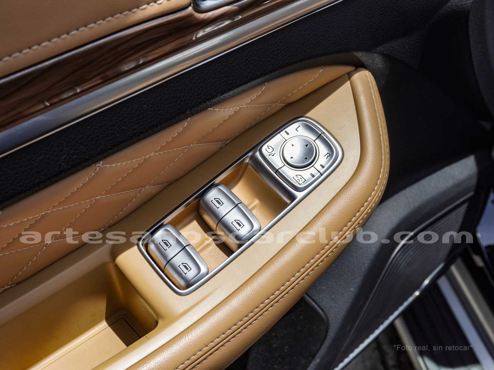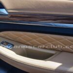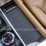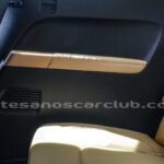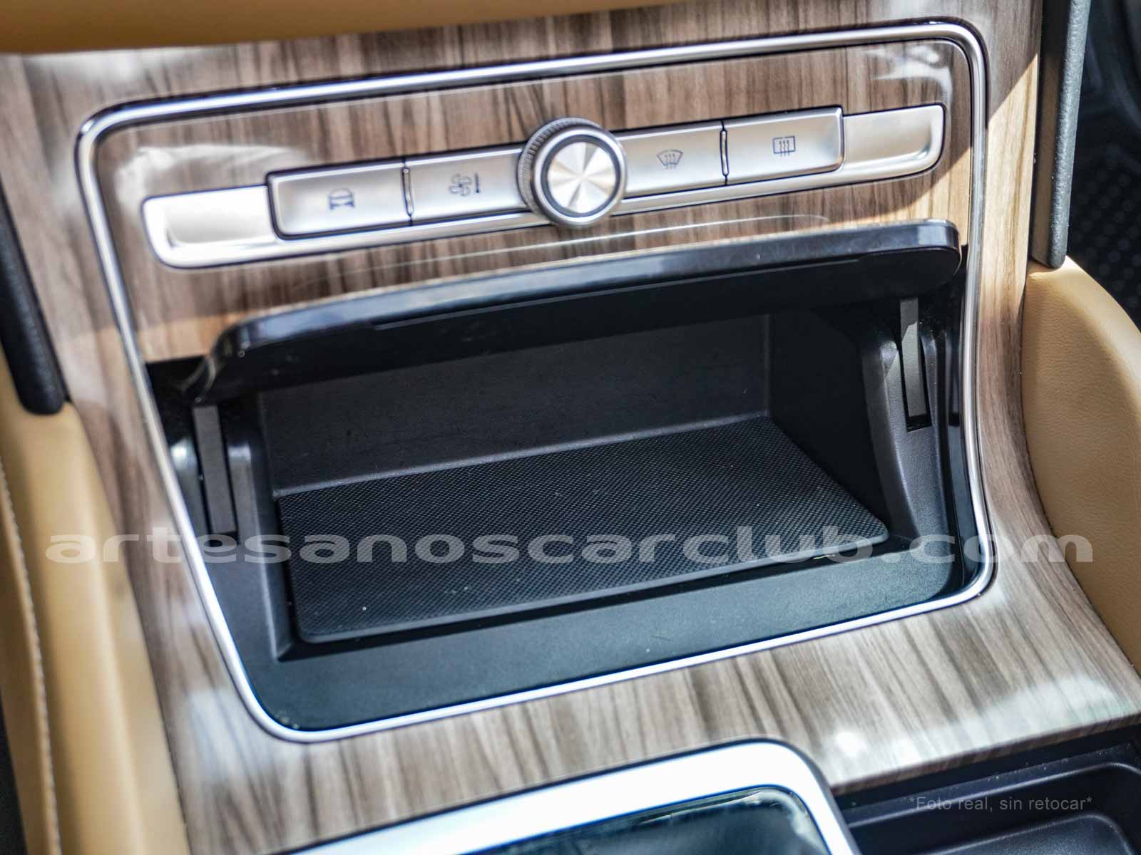 - Apoyabrazos de 2da fila de asientos en piel beige con madera y decoraciones en aluminio satinado.