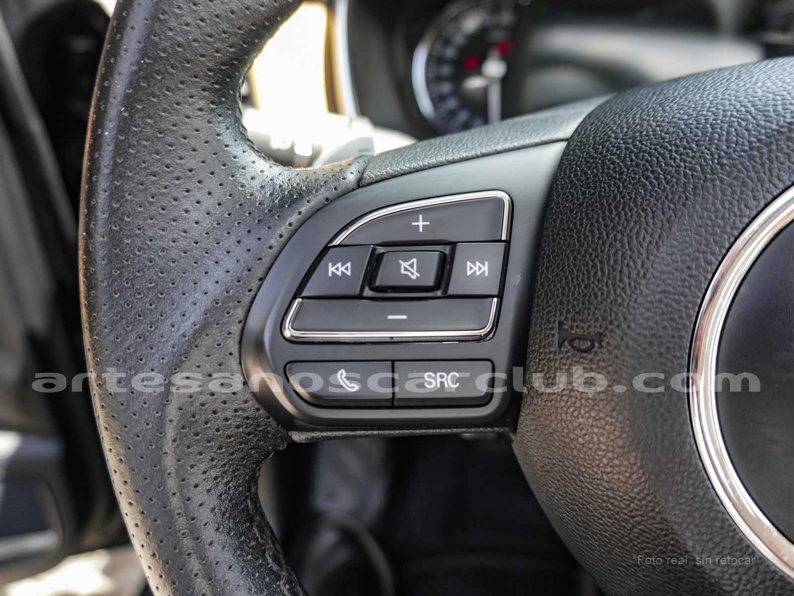 - Volante forrado en piel negra de 3 radios con botonería en negro.