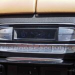 - Consola central con acabados en piel beige con costuras de contraste en color blanco, simil madera, piano, y acabados en aluminio.
