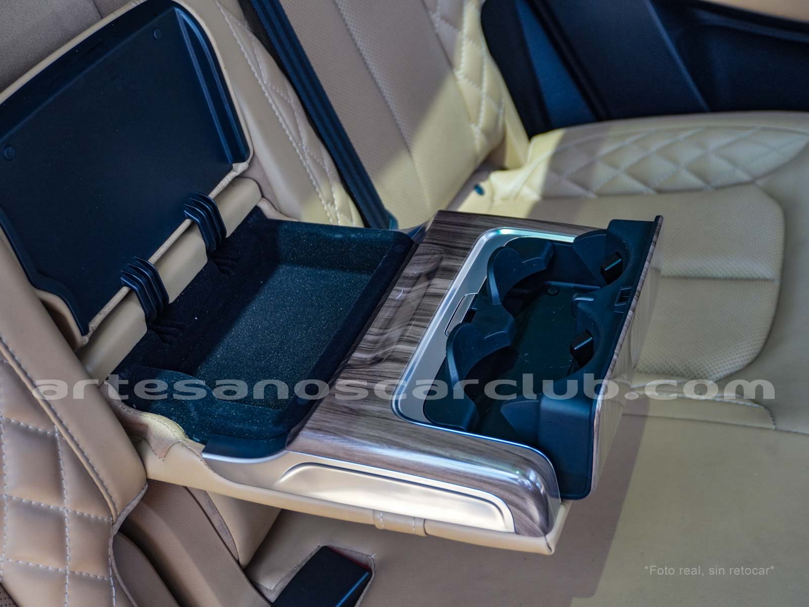 - Apoyabrazos de 3era fila de asientos en símil piel beige.