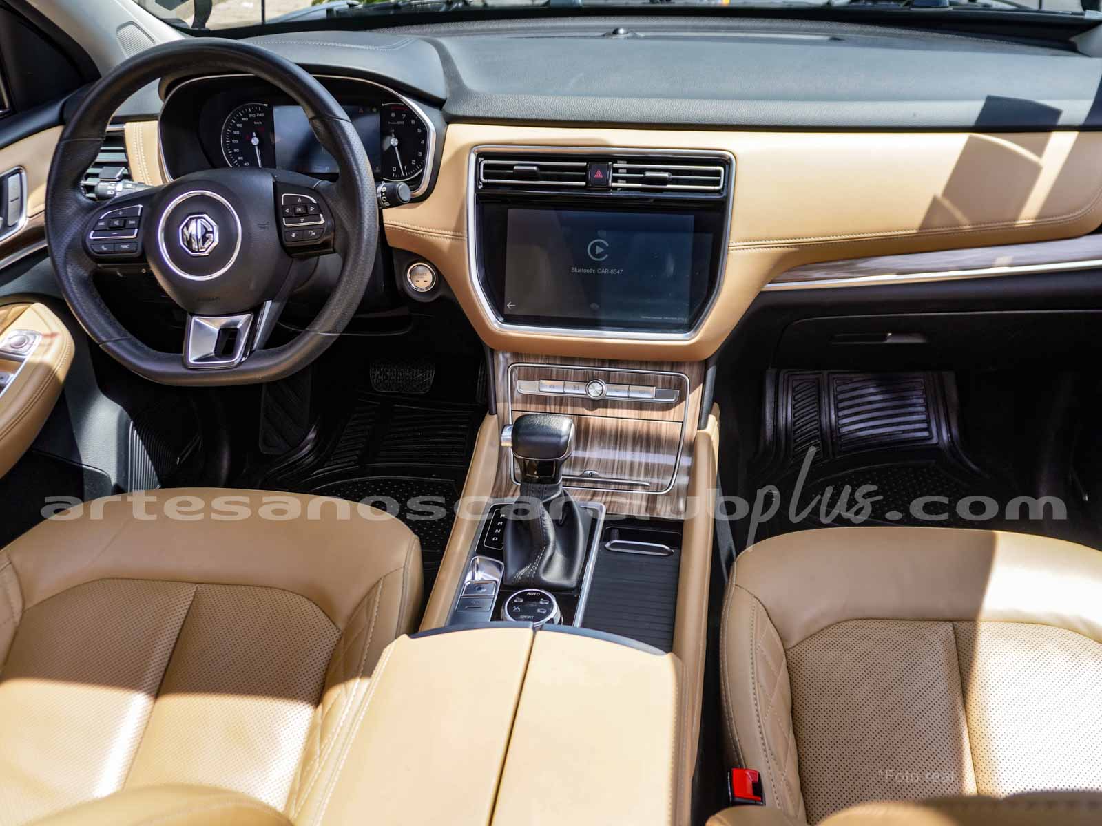 - Dash con moldura frontal en simil piel color beige con costuras dobles en color balnco.