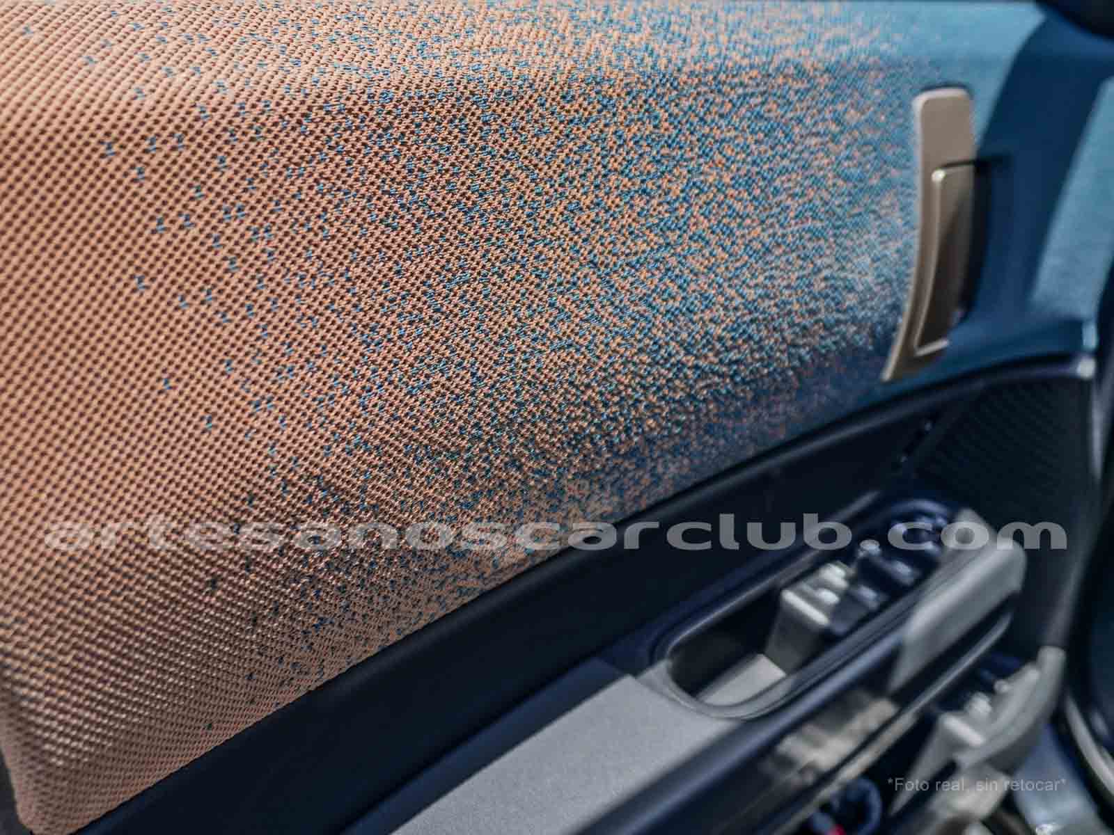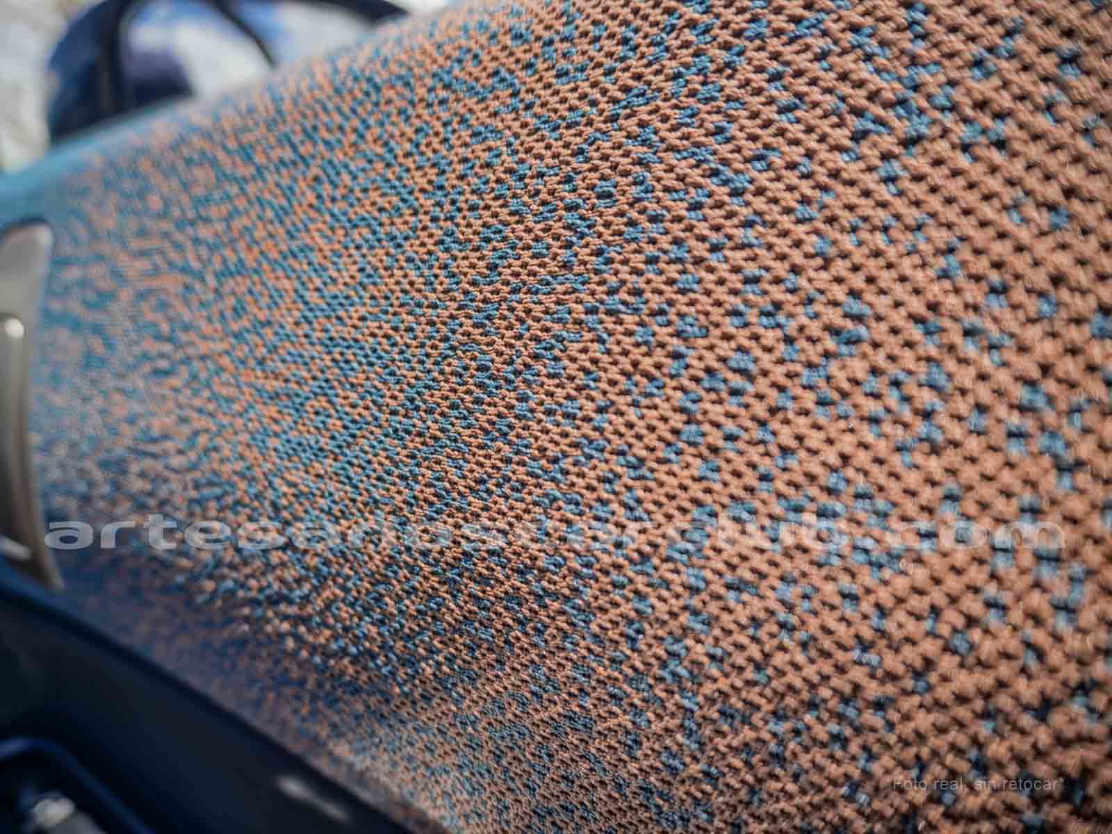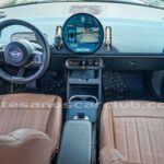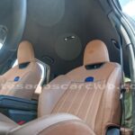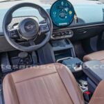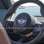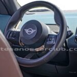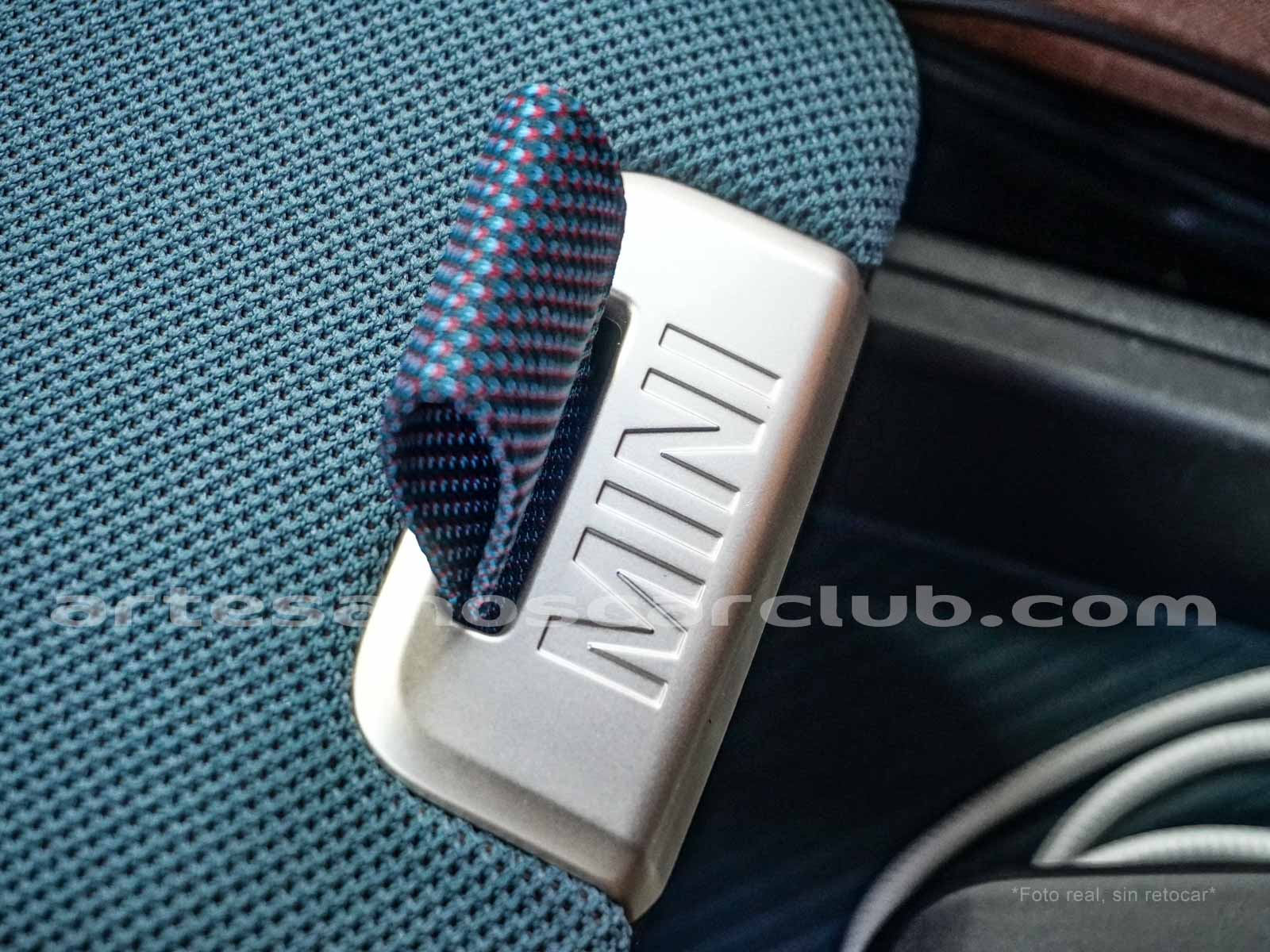 • Sillas deportivas en piel microperforada marrón “Vescin Vintage”  con costuras dobles del mismo color e inscripción Mini en respaldo.