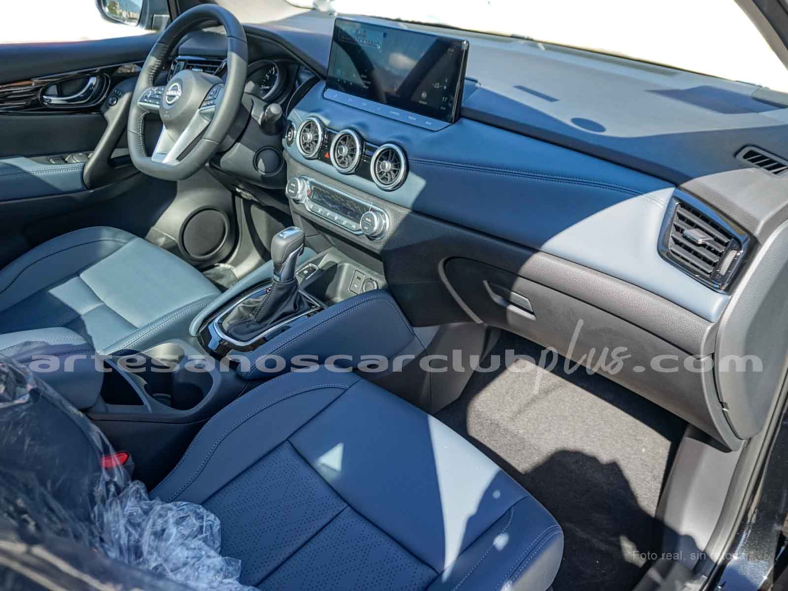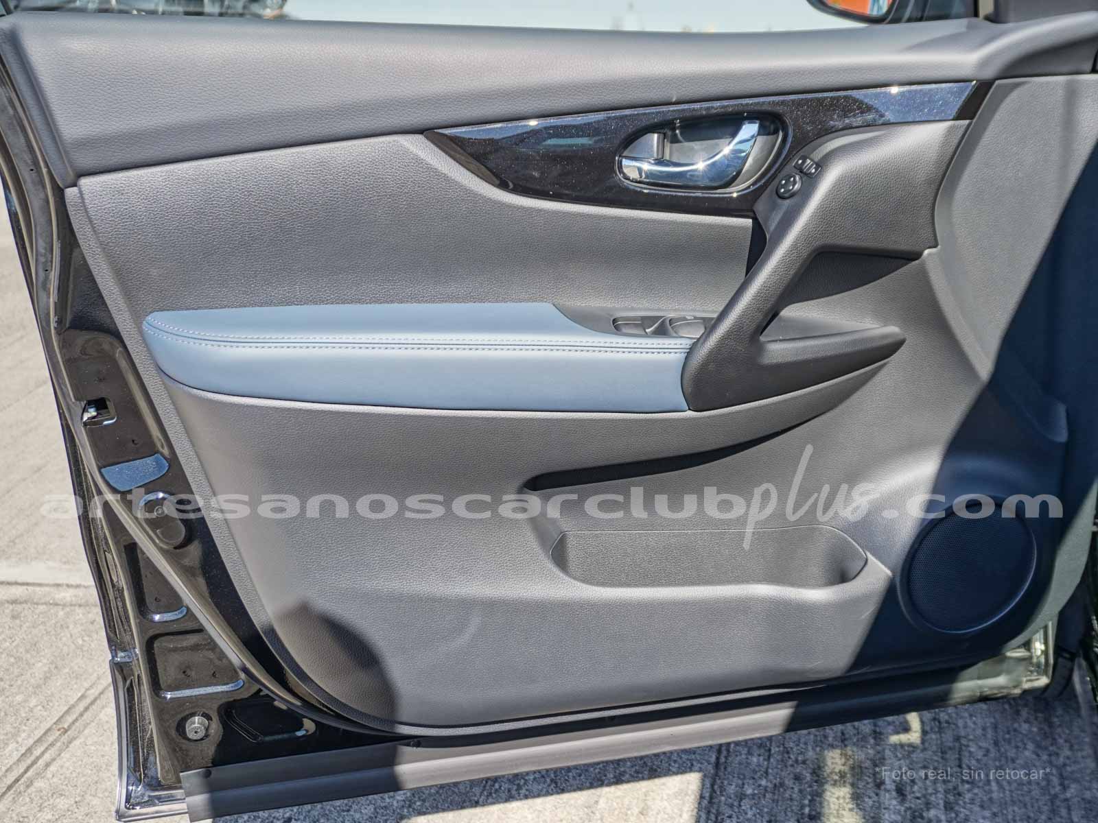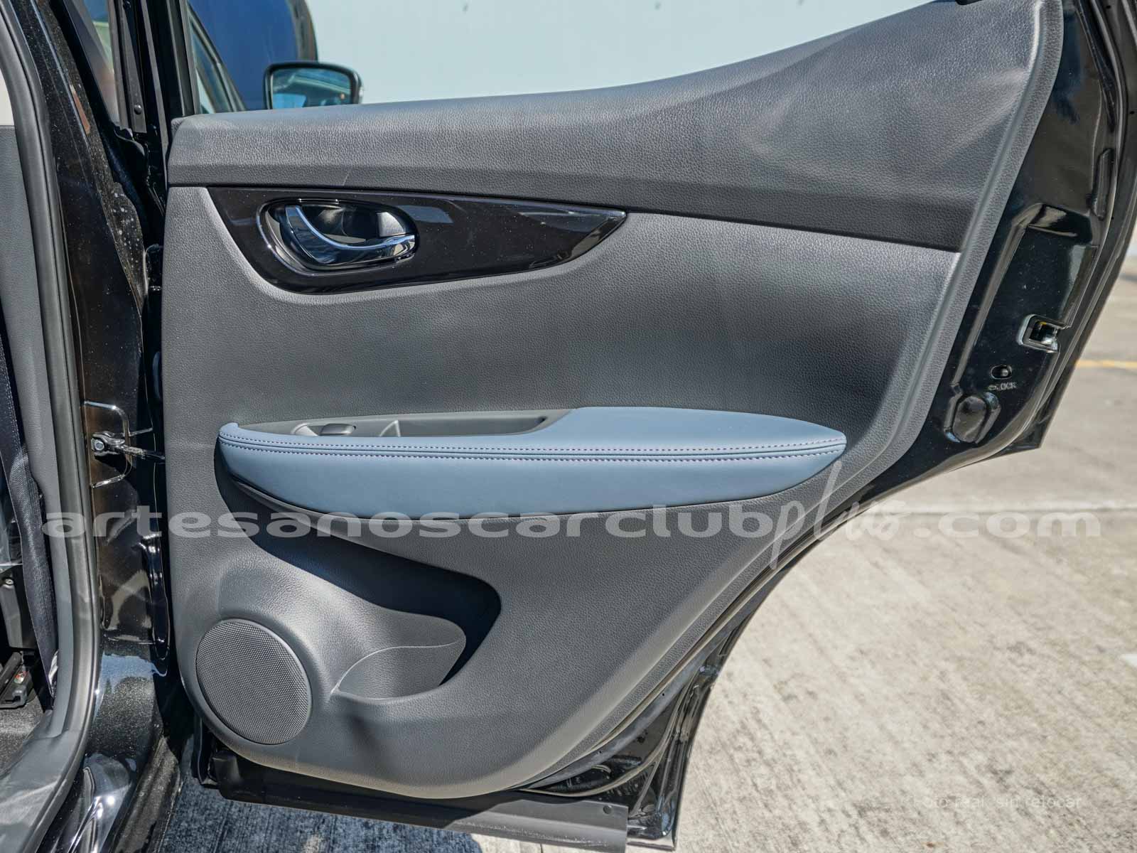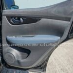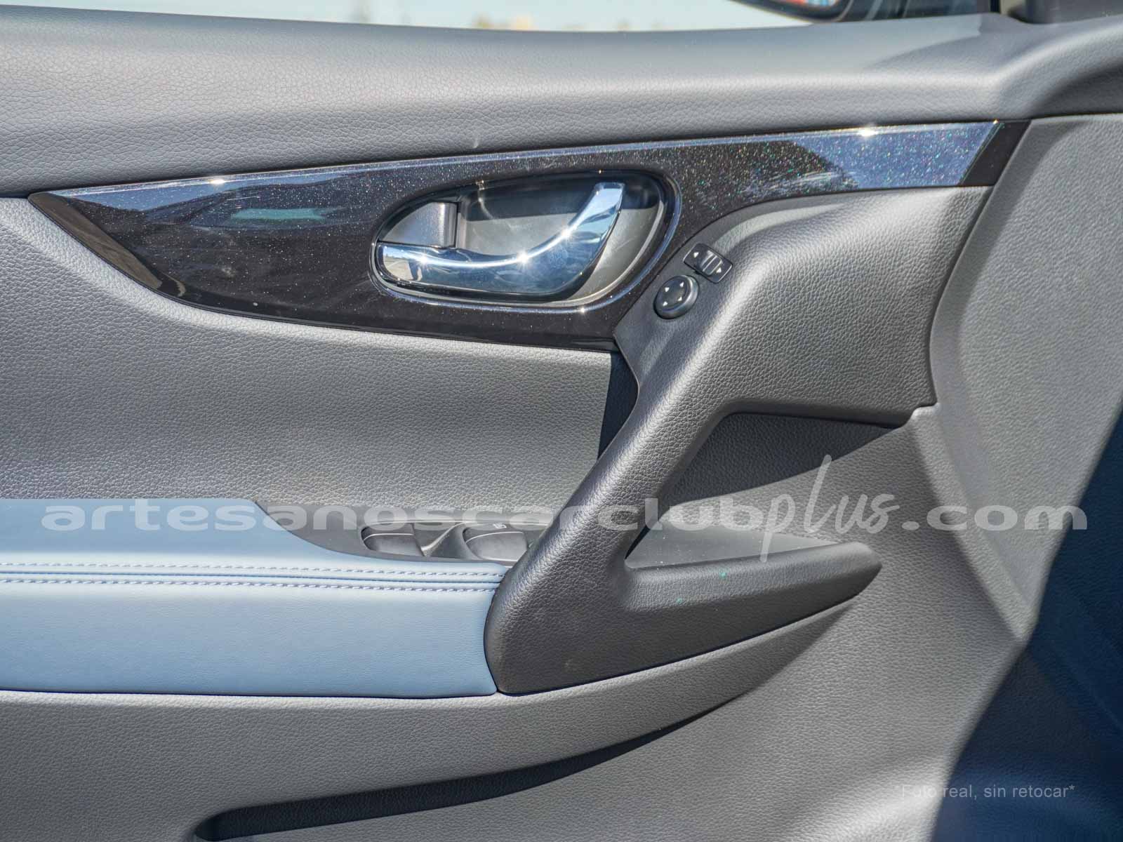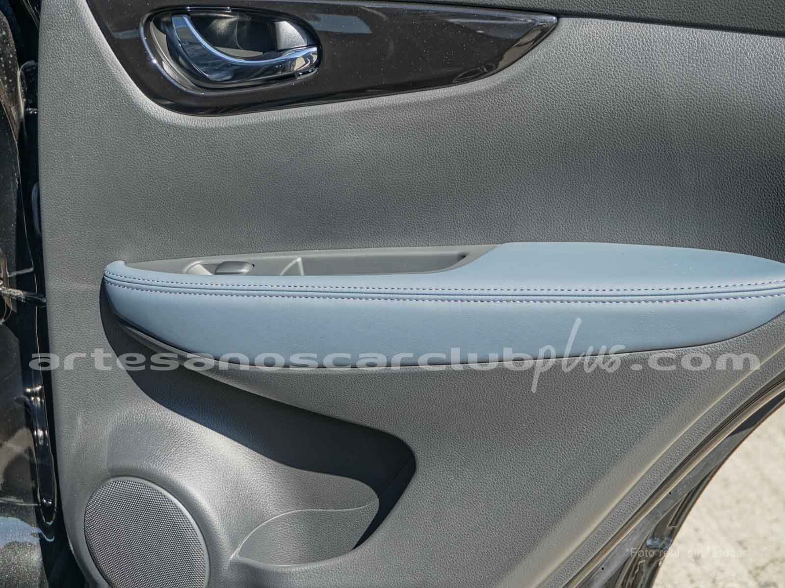 Interior de puertas con moldura en plástico negro brillante, eco cuero azulado con costuras dobles.