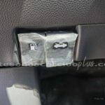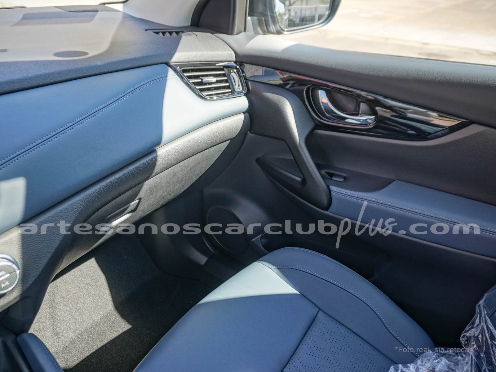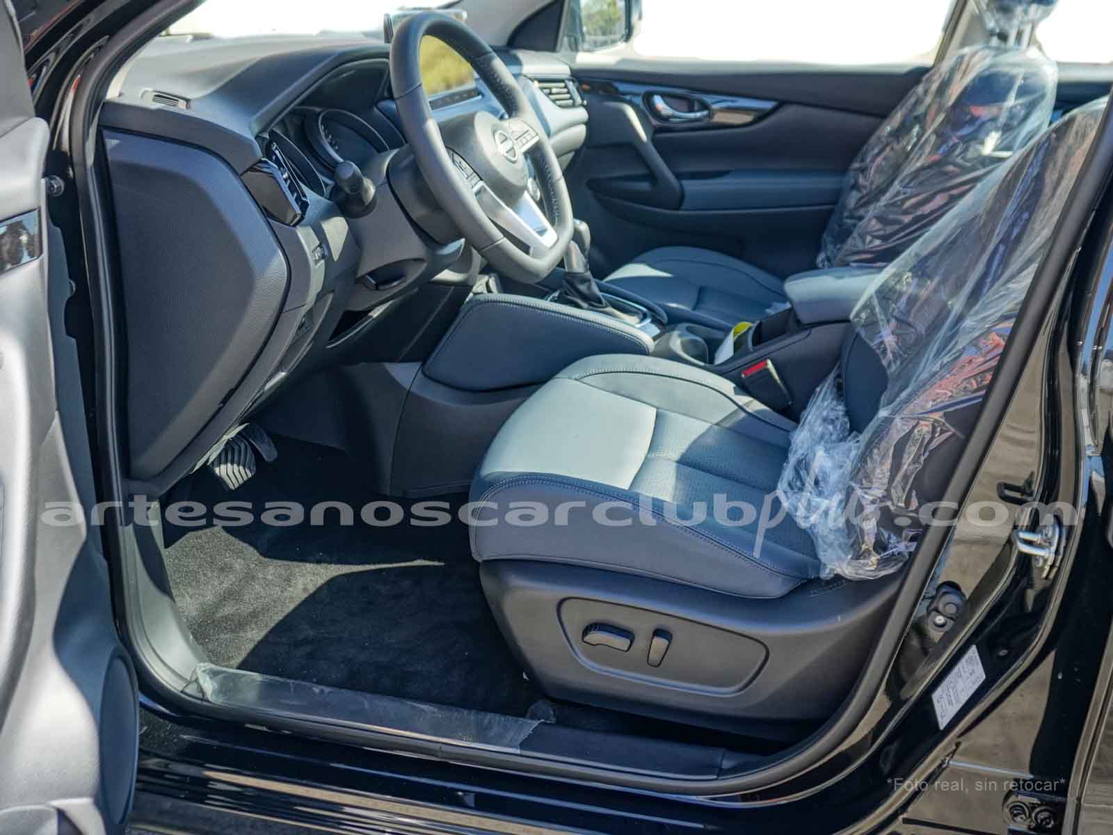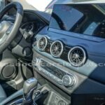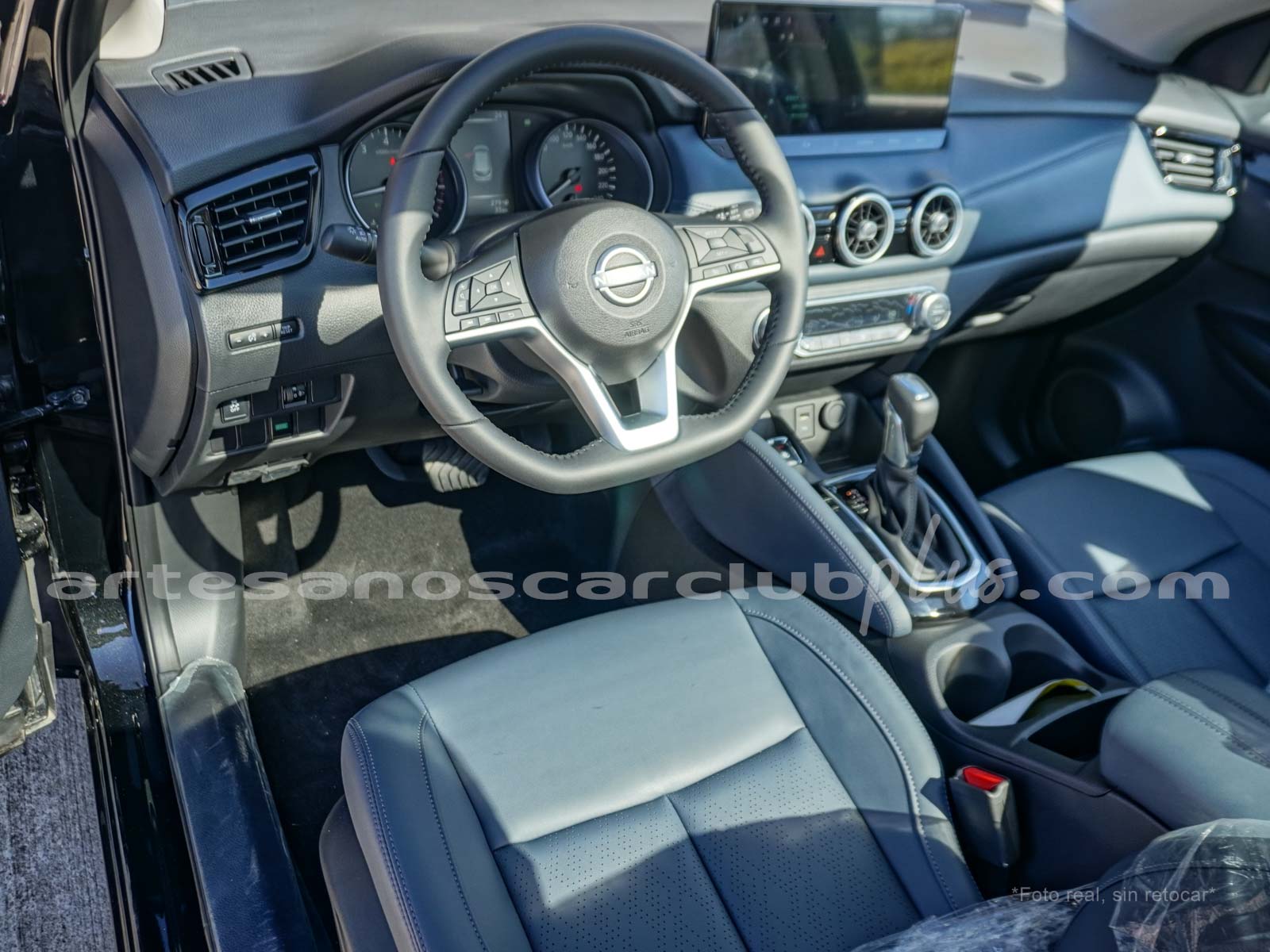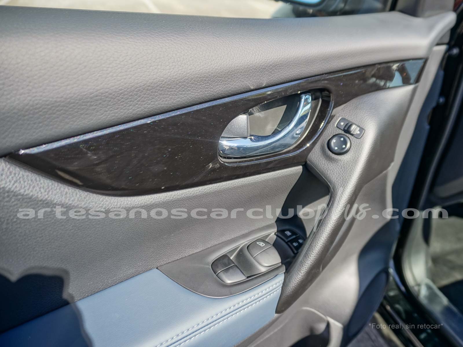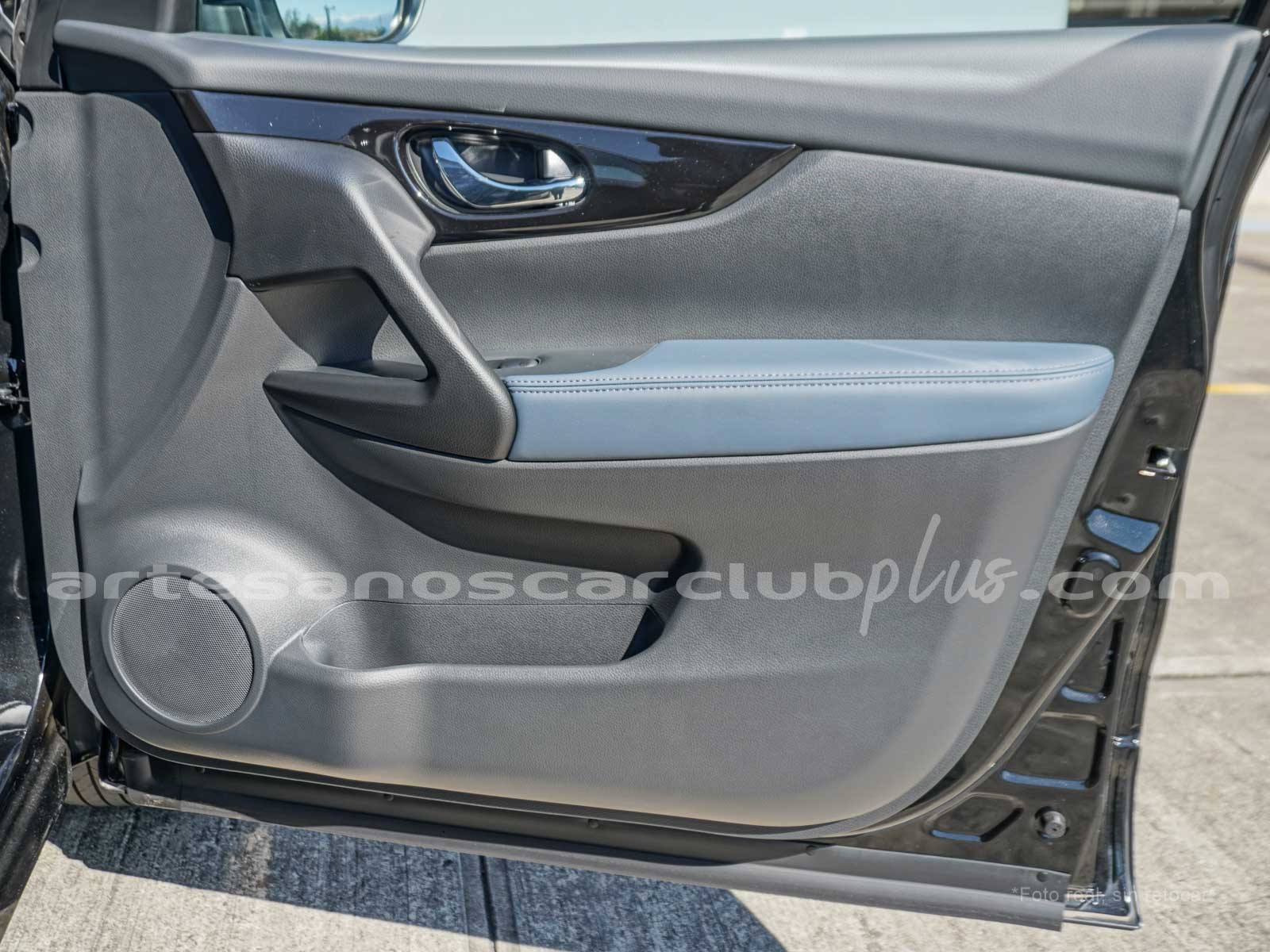 Interior de puertas con moldura en plástico negro brillante, eco cuero azulado con costuras dobles.