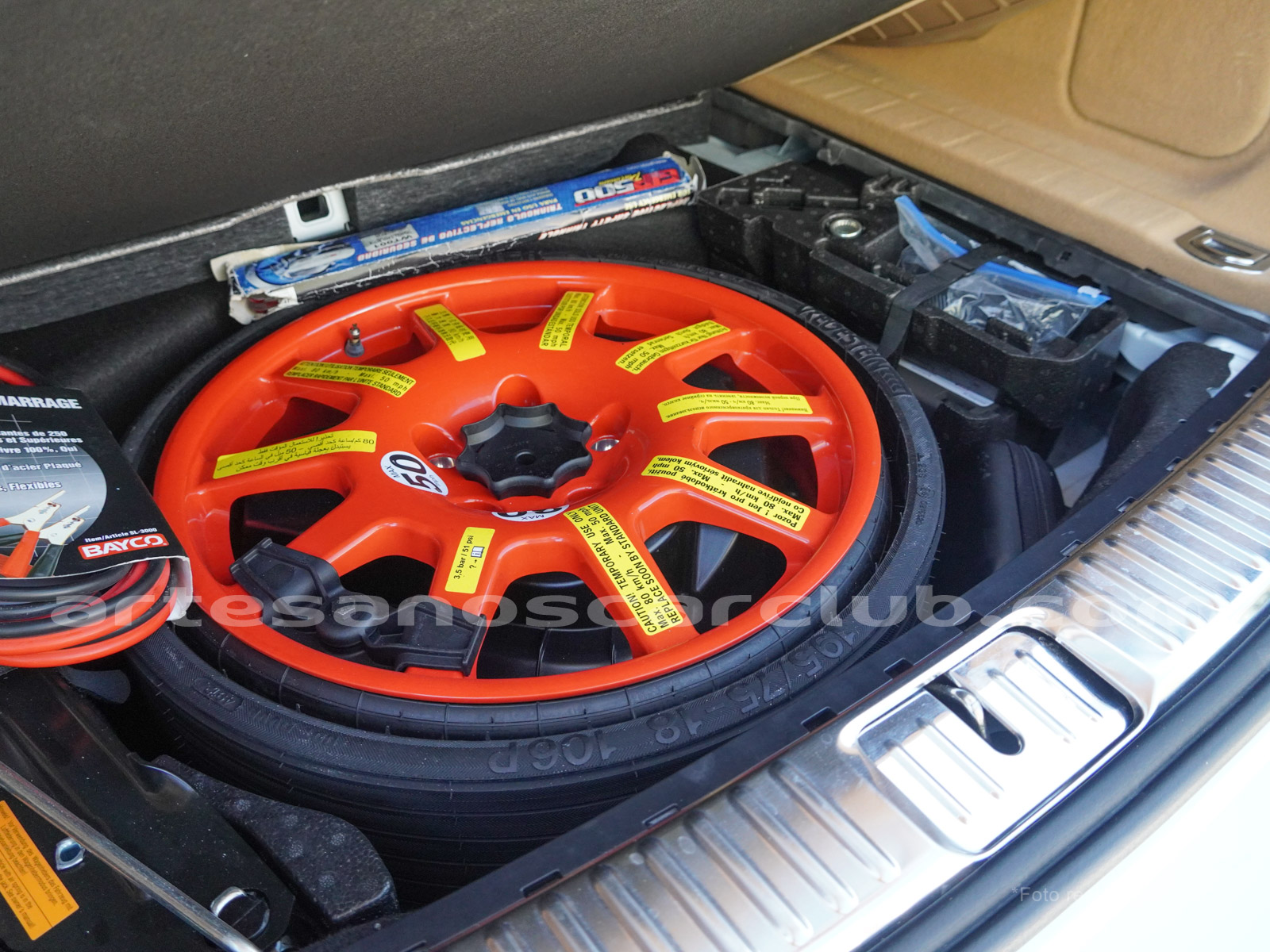 • Rueda de repuesto de uso temporal naranja.