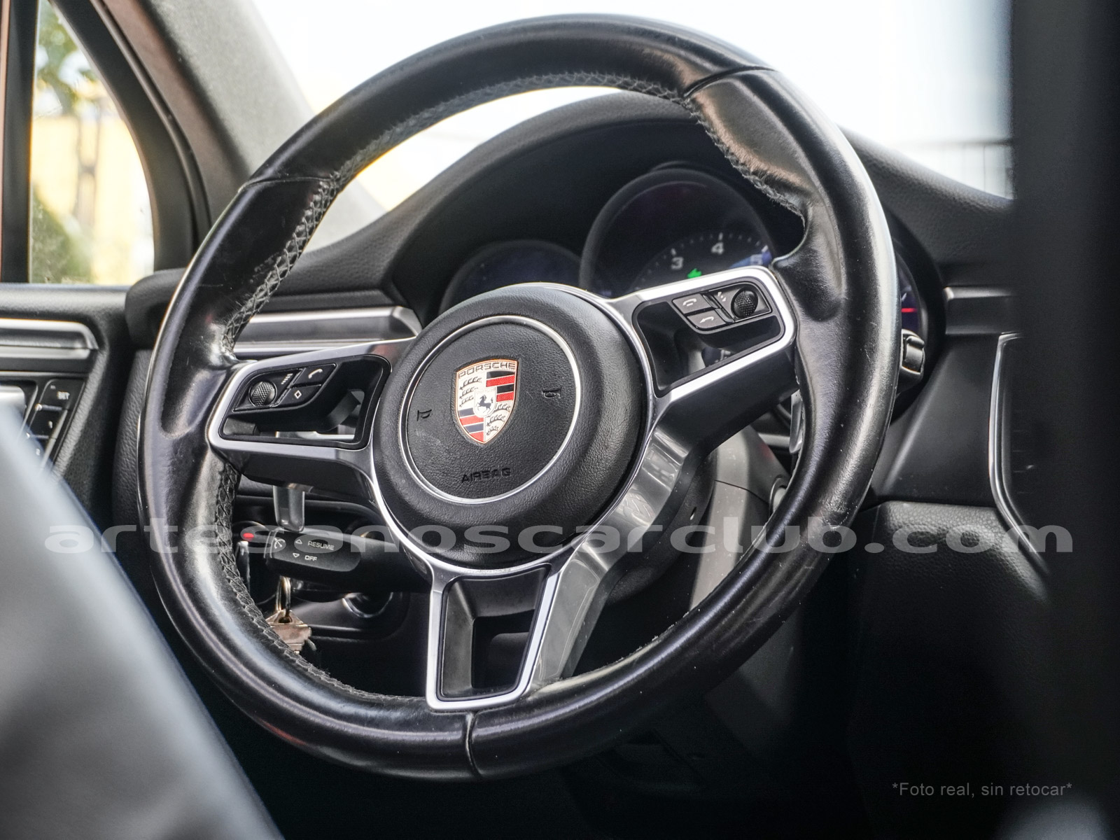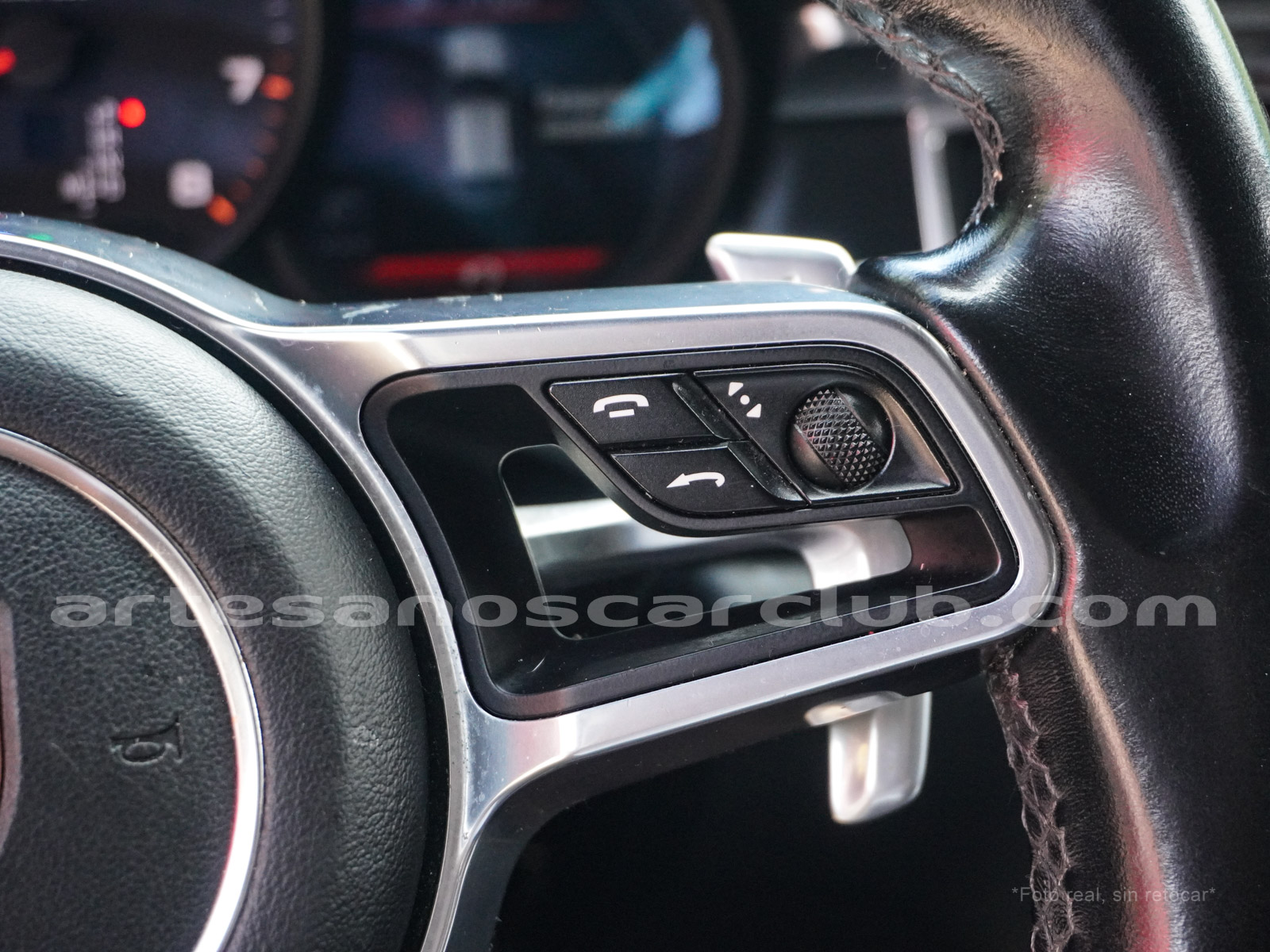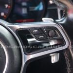 Volante de 4 radios con acabado de piel y aluminio satinado, multifunción y con levas PDK en aluminio.