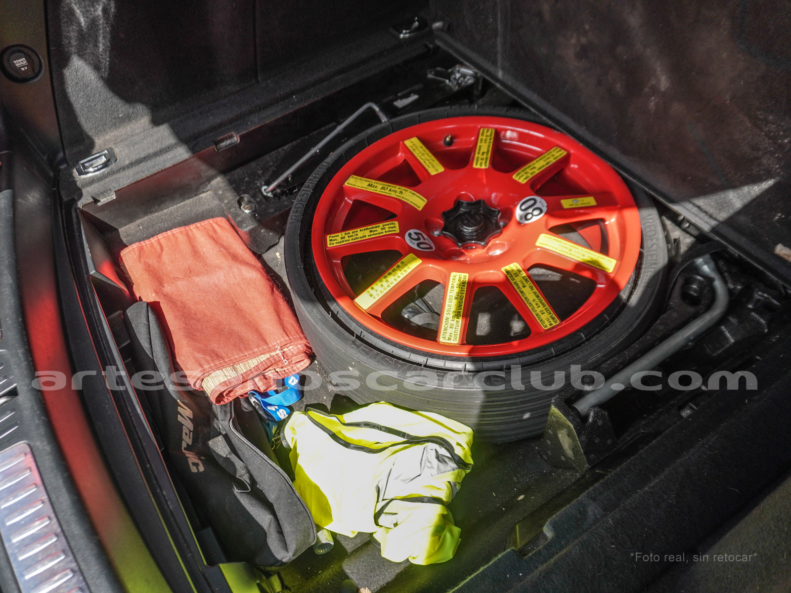 Rueda de repuesto de uso temporal con kit de reparación anti pinchazos (compresor incluido).