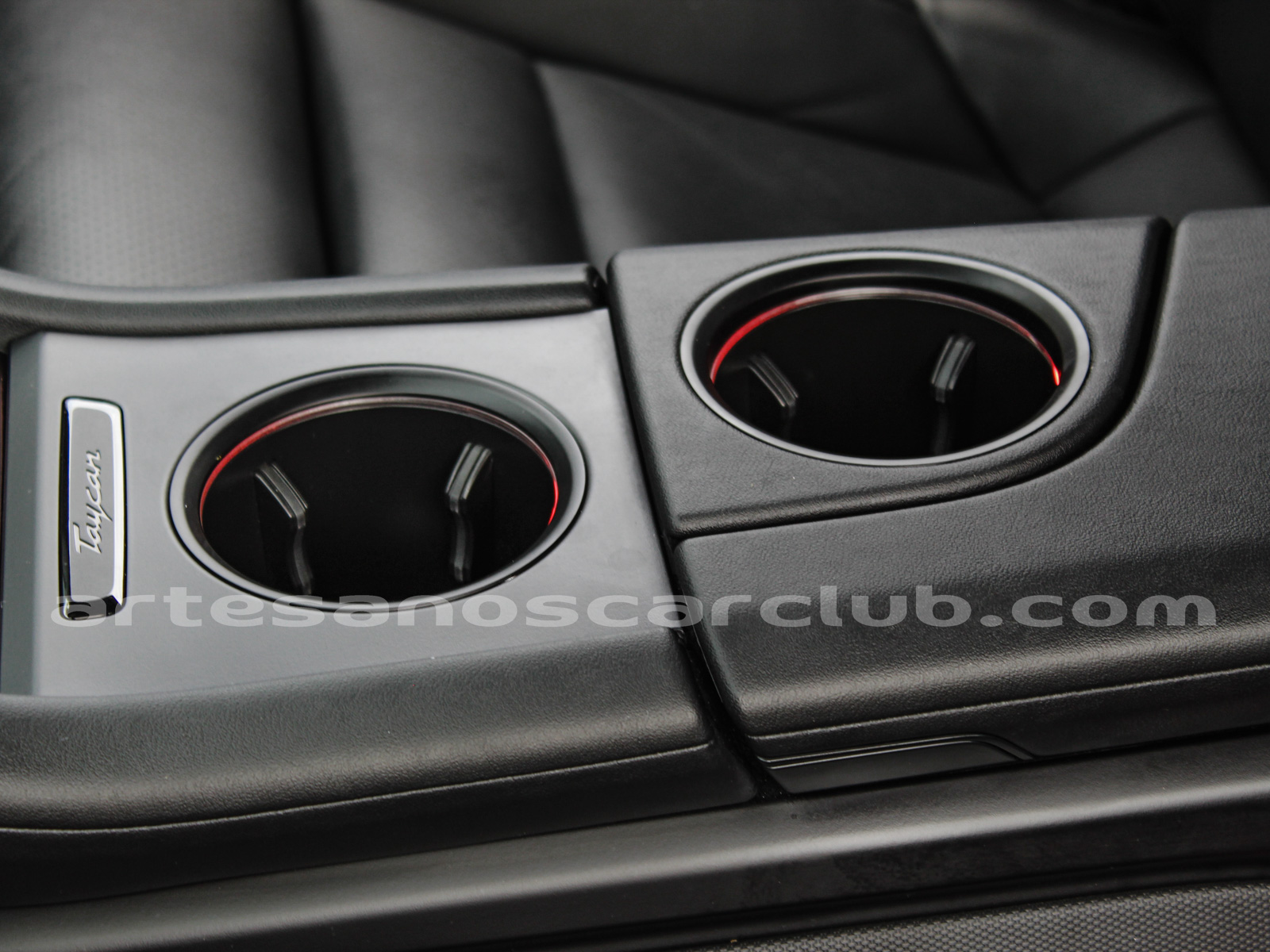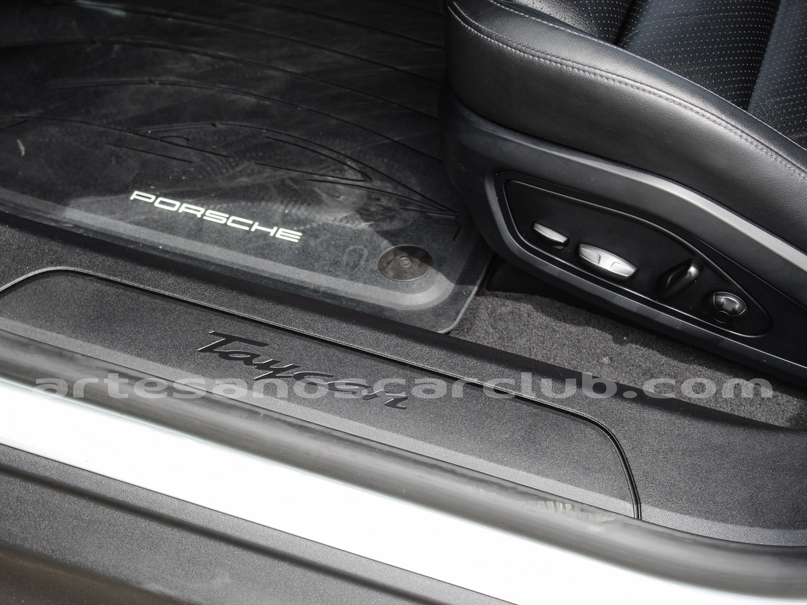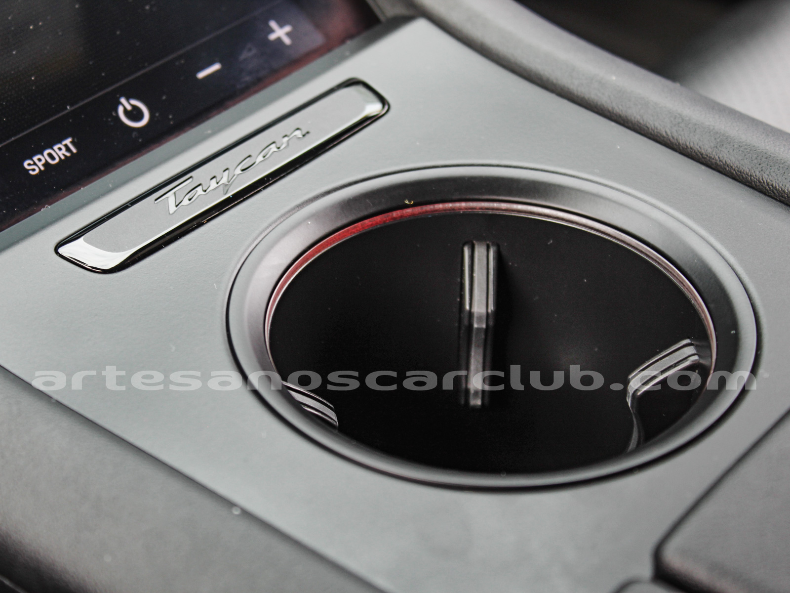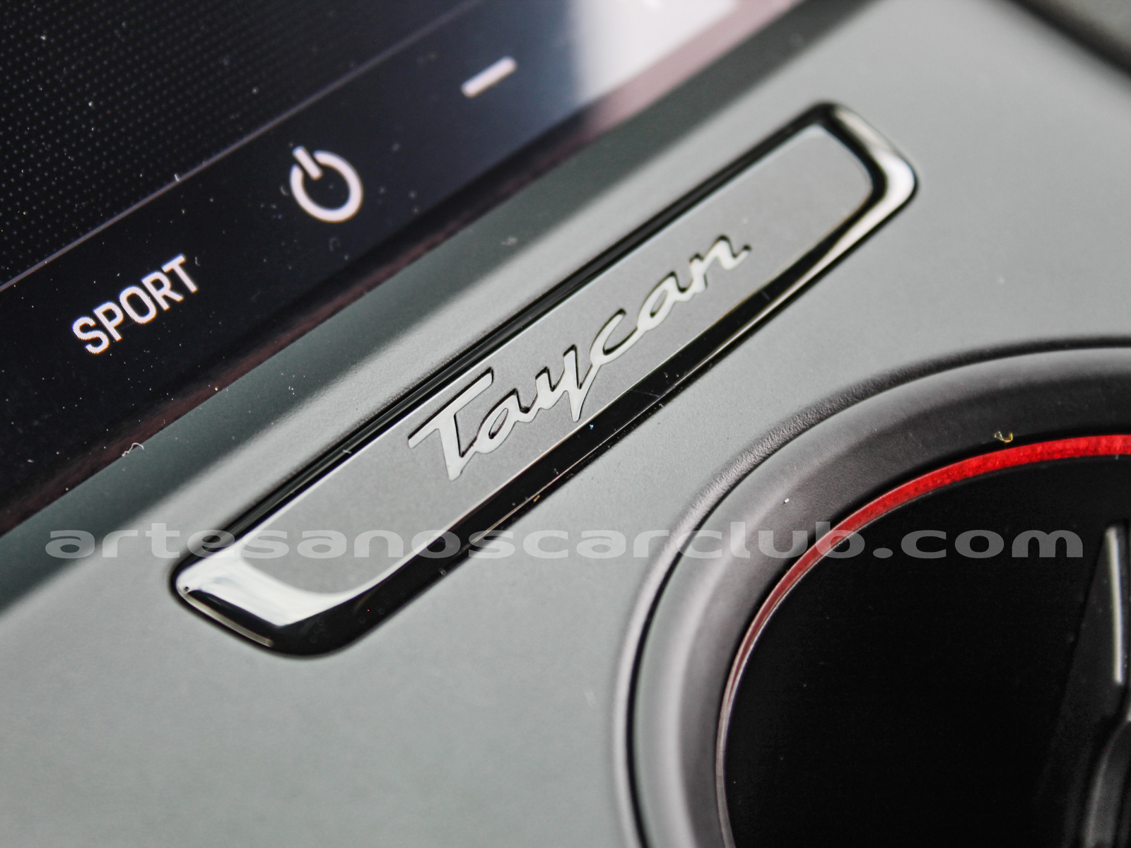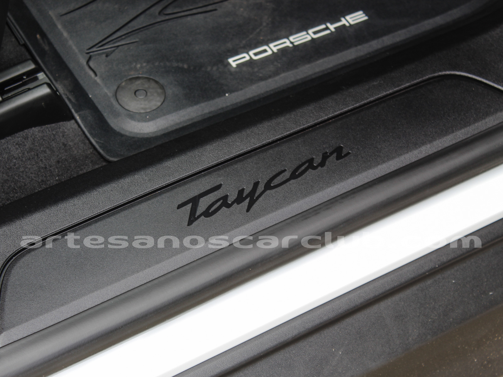 • Moldura de ingreso a cabina en plástico negro con inscripción «Taycan».